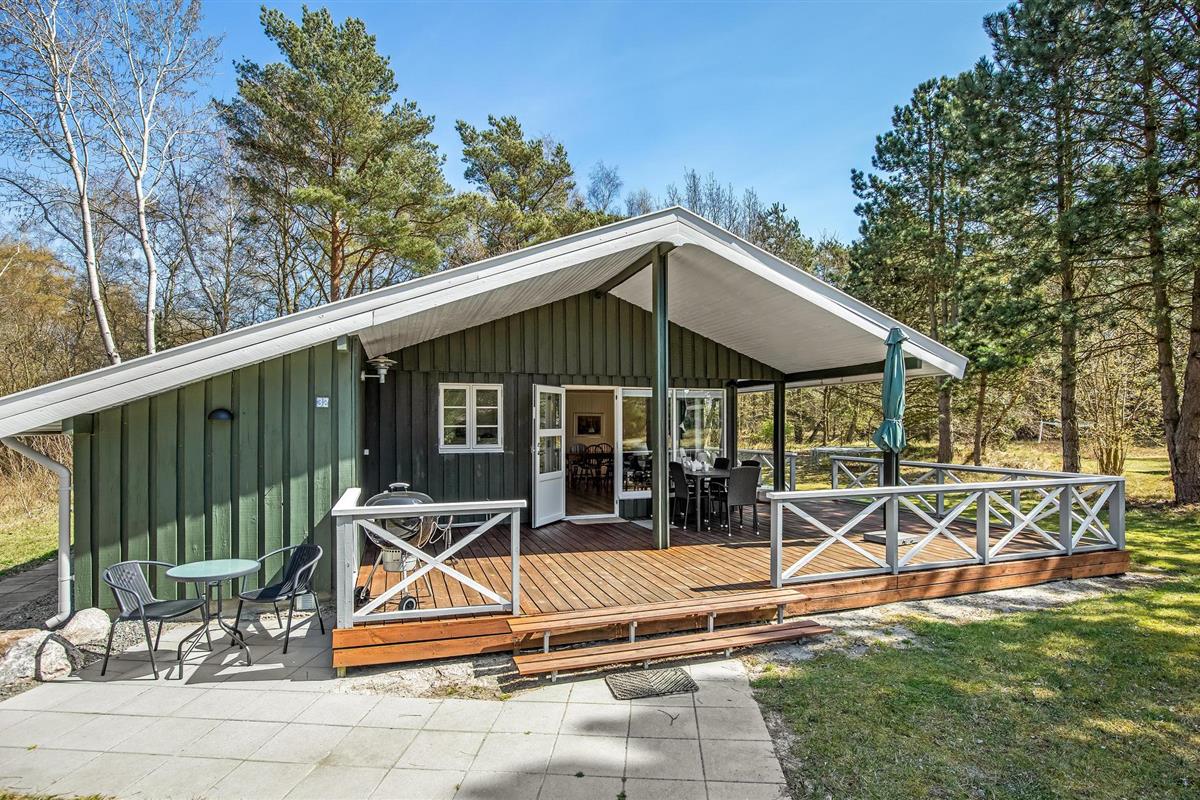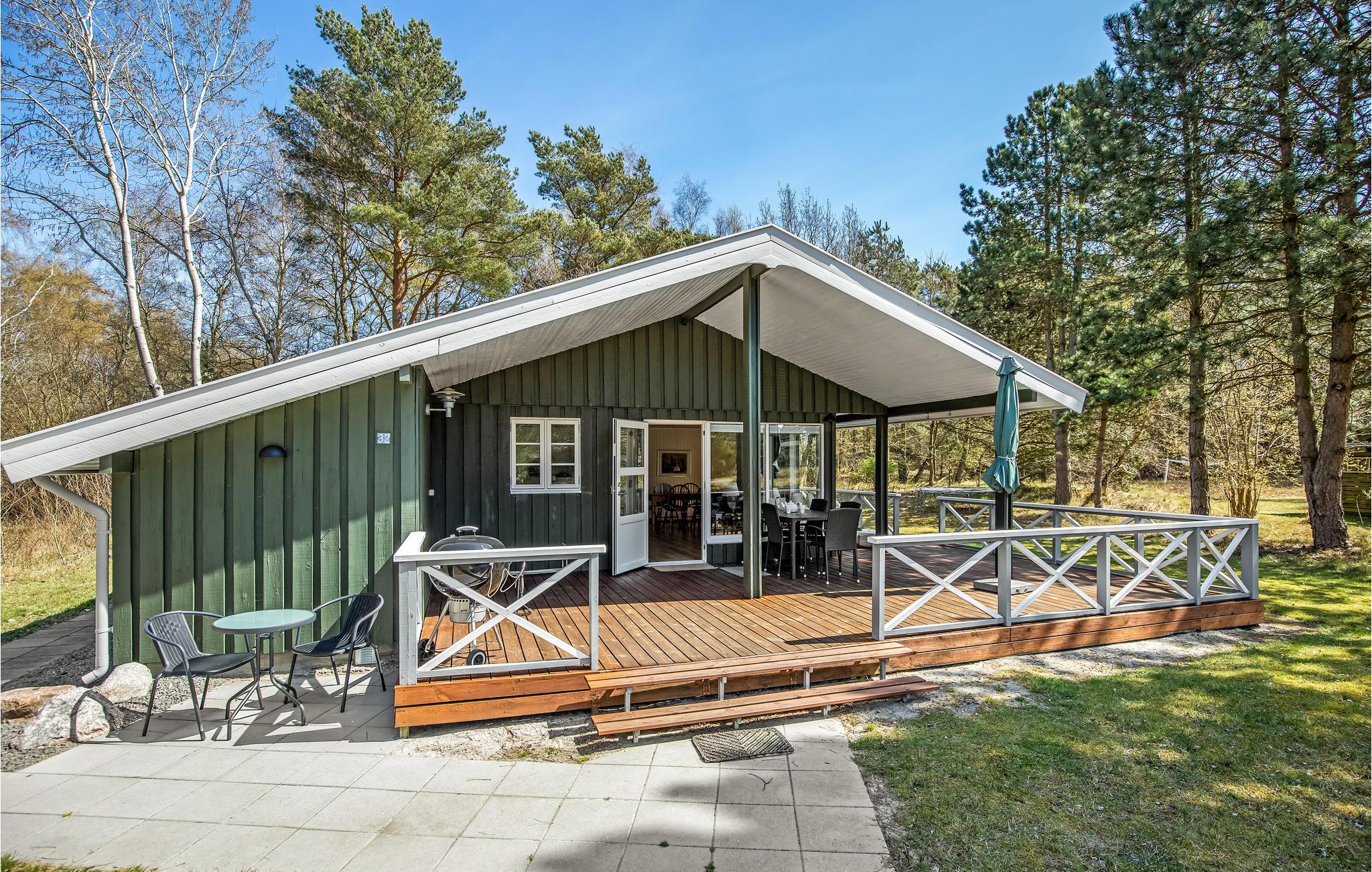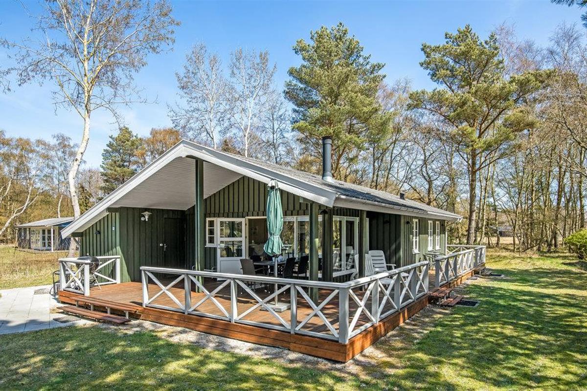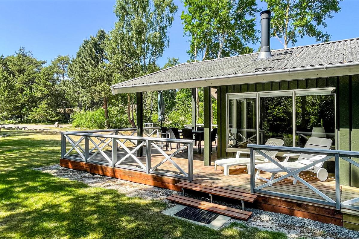 Idyllisch houten vakantiehuis op 600 m van zandstrand, rustig gelegen aan natuur, met houtkachel en overdekt terras.