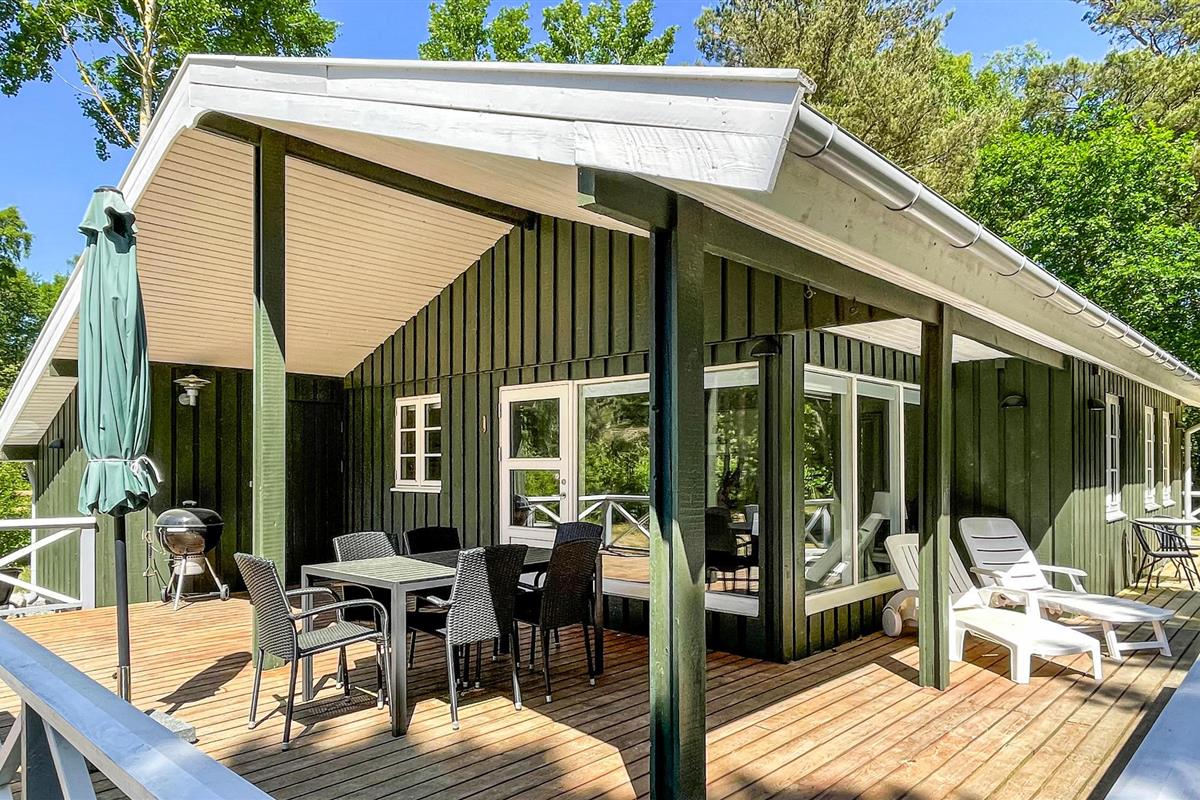 Dit is waar u waarschijnlijk een groot deel van uw vakantie zult doorbrengen - het gedeeltelijk overdekte houten terras met tuinmeubelen en barbecue nodigt u uit om te blijven hangen en te genieten van gezellige barbecue-avonden. Hier vindt u altijd een gezellig plekje en kunt u genieten van de zon op de ligstoelen. Voor de kinderen is er meer dan genoeg ruimte om te spelen, ravotten en ontdekken op het ruime terrein.