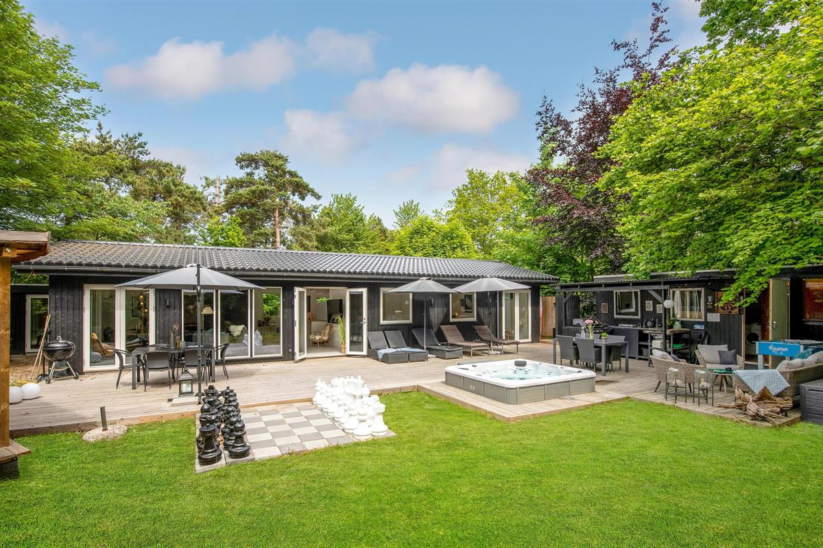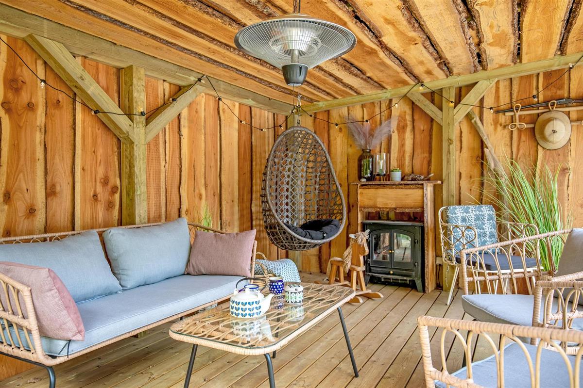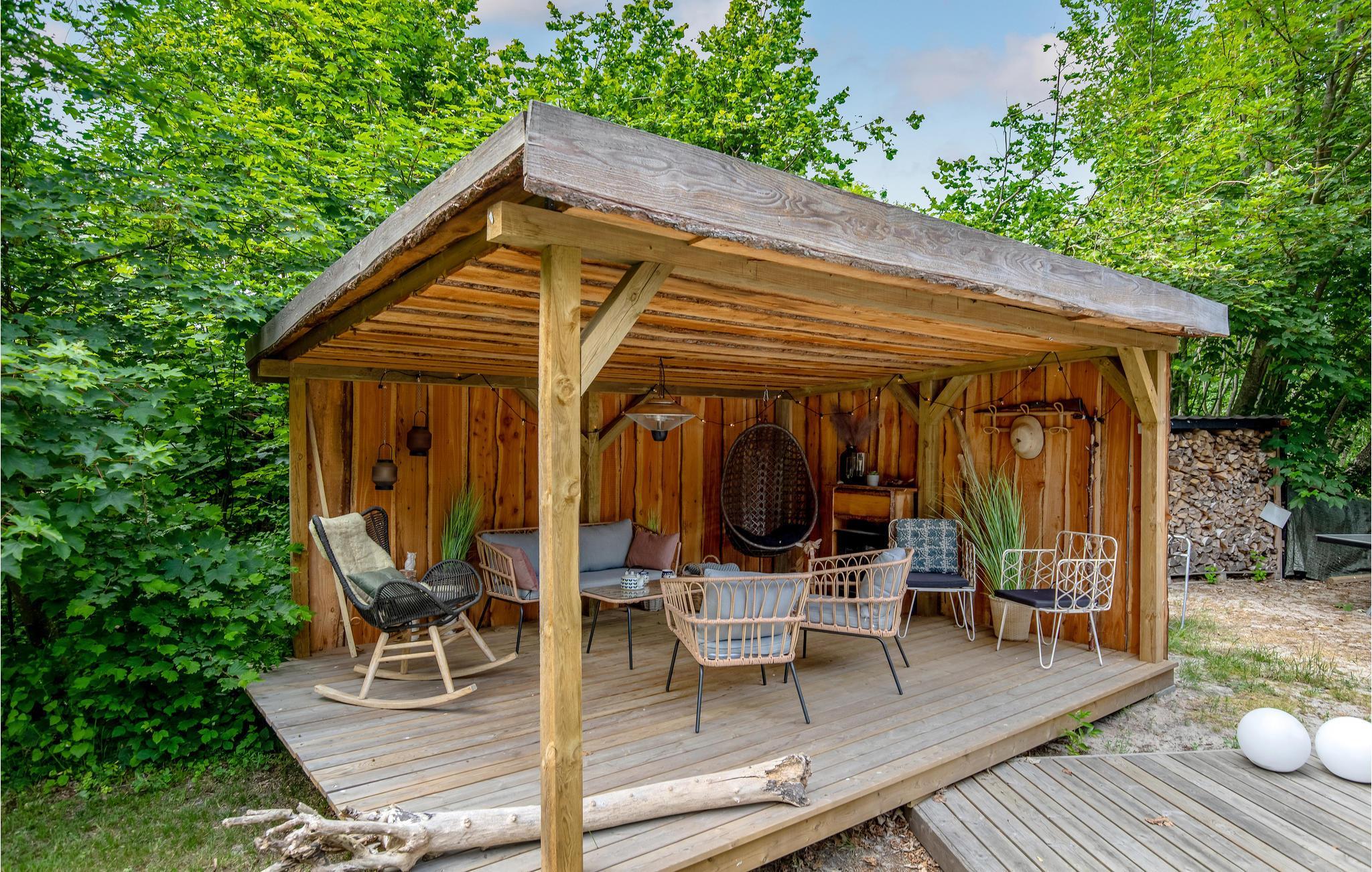 Het huis is omgeven door bomen. Het terras op het zuiden ligt beschut en is uitgerust met loungemeubels en ligstoelen. Je kunt in de schaduw van de boom zitten en genieten van de frisse lucht terwijl je een goed boek leest. Er zijn ook verschillende buitenspellen zoals basketbal, tuinschaak, schommels, tafeltennis, tafelvoetbal en darts - er wacht je een schat aan entertainmentmogelijkheden. Als het donker wordt, kun je genieten van alle gezellige lichtbronnen die rondom zijn geplaatst. De sfeer is hier bijna zuidelijk en je hoort het geluid van de zee tussen de bomen. Op het terras vind je de mooie en goed uitgeruste buitenkeuken, die zowel water als afvoer heeft. Een houtskool- en gasbarbecue en een pizzaoven zijn hier ook aanwezig, zodat je buiten maaltijden kunt bereiden. Ontspan in de hangmatten en op het volledig overdekte, gezellige terras. s Avonds kun je de terrasverwarmer aanzetten of stokbrood of marshmallows bakken op de kampvuurplaats in het huis. Er is een schuilhut in de tuin. Het huis heeft een buitenbubbelbad (van april tot oktober) voor heerlijke momenten van vakantie-wellness en een buitendouche met warm water om het zand af te spoelen na een uitstapje naar het strand.