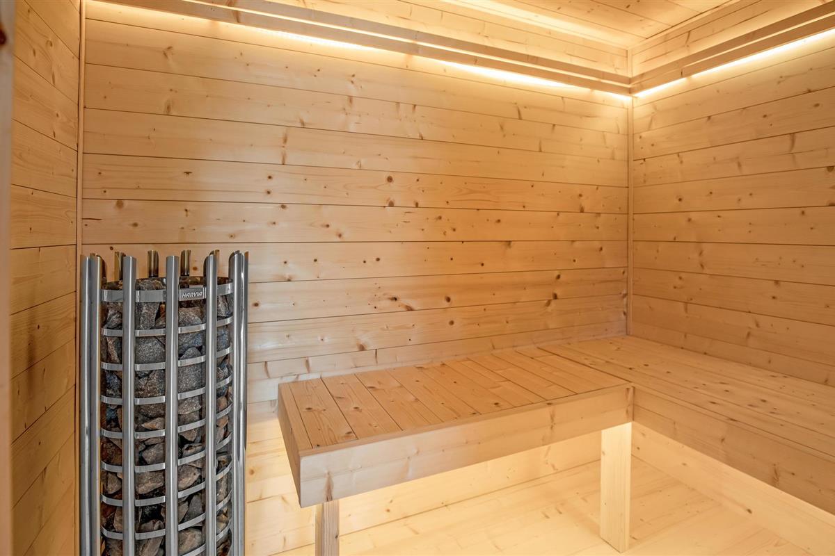 Het middelpunt van het huisleven is de grote woonkamer met eethoek, tv, houtkachel en warmtepomp (die ook kan koelen). Koken is een plezier in de open keuken met wijnkoelkast. Het huis heeft vier gezellige slaapkamers voorzien van kledingkasten en kledingroedes. De badkamer heeft comfortabele vloerverwarming. Er is ook een studeerkamer, een gastentoilet met vloerverwarming en een wasmachine in het huis. Een van de vele hoogtepunten van het huis is de speelkamer, waar je kunt spelen aan de pooltafel. In het bijgebouw is er een sauna, wasdroger, kinderstoel, kinderbedje incl. dekbed, kussen en hoes voor junior dekbed, paraplu's, picknickmanden, koeltas en dekens en vele andere benodigdheden voor een geslaagd verblijf.