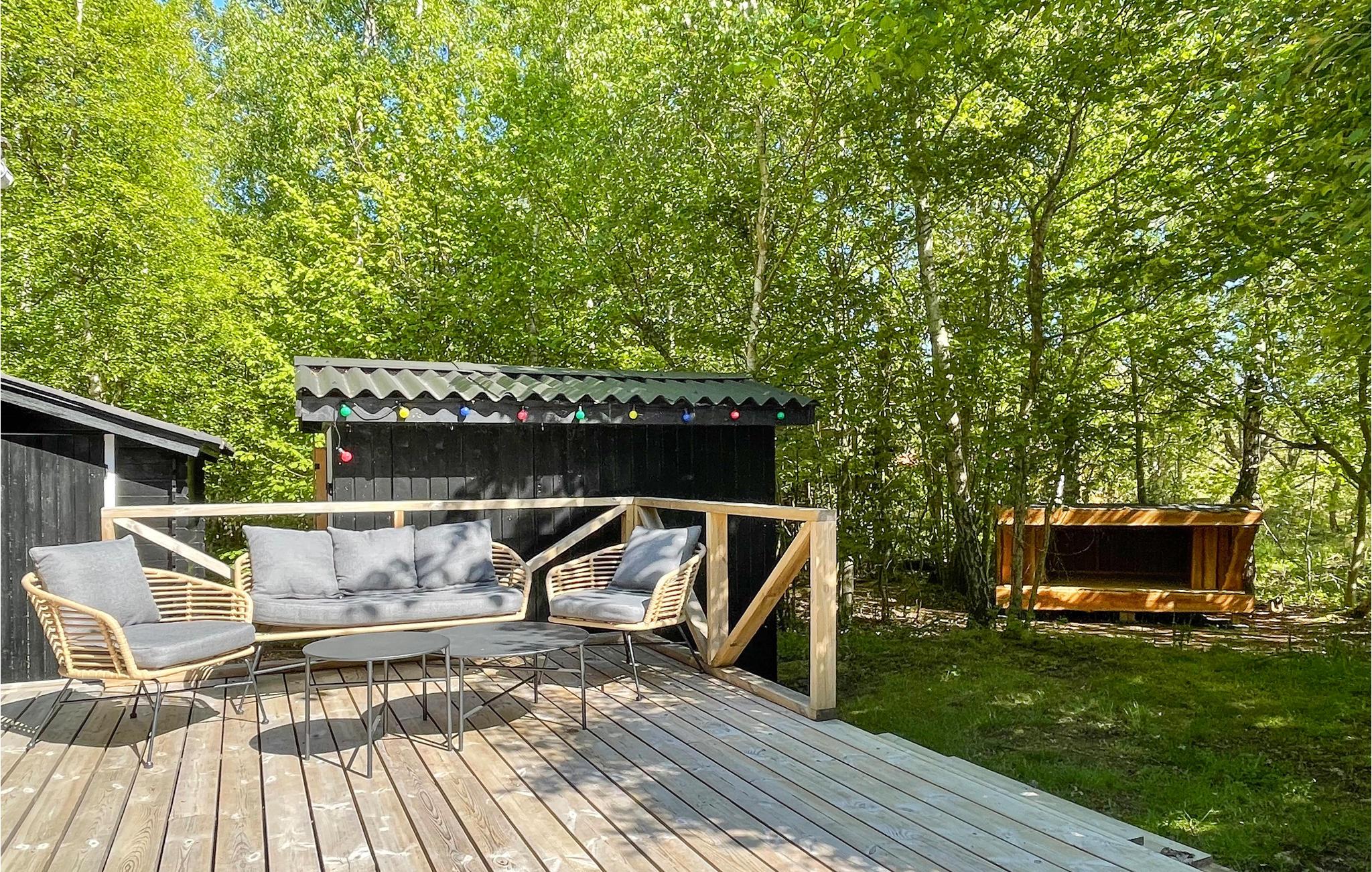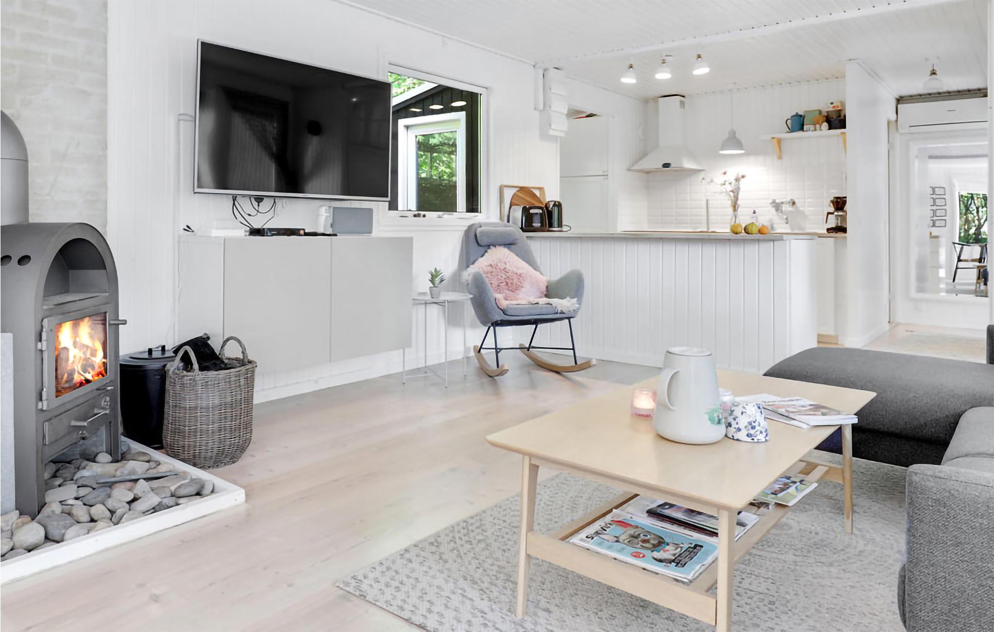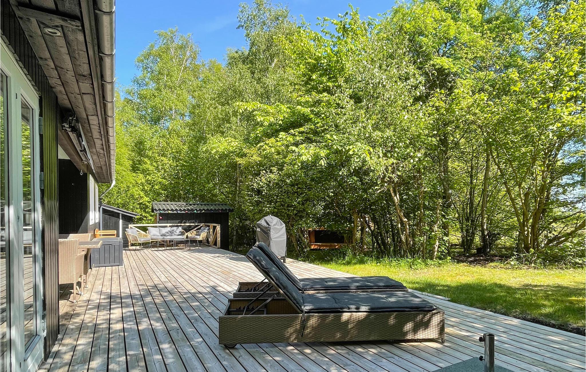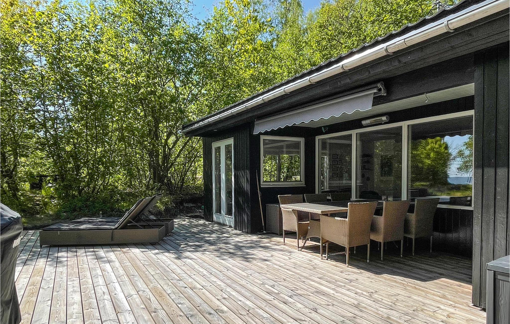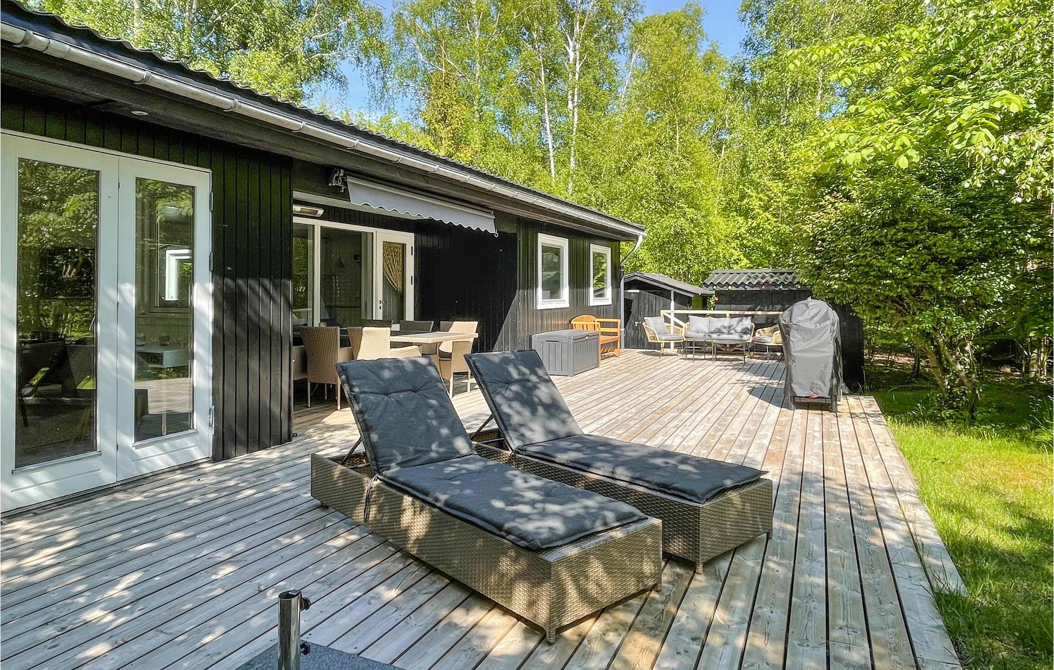 Gezellig vakantiehuis aan het strand in Aakirkeby met terras, houtkachel en speeltuin voor ontspannen vakantiedagen.