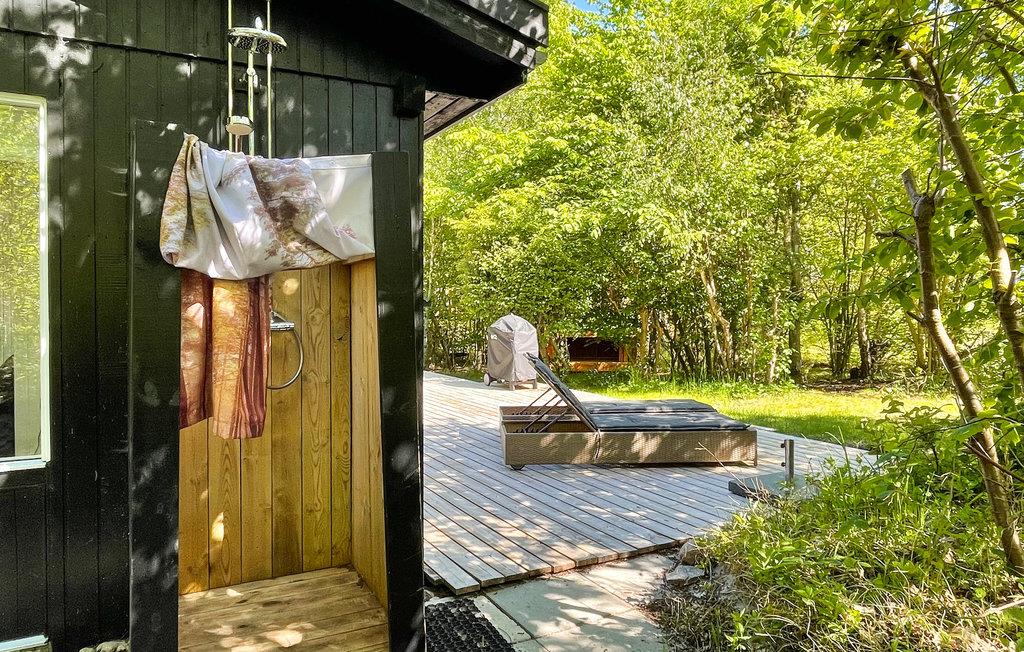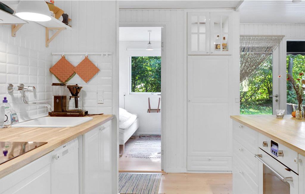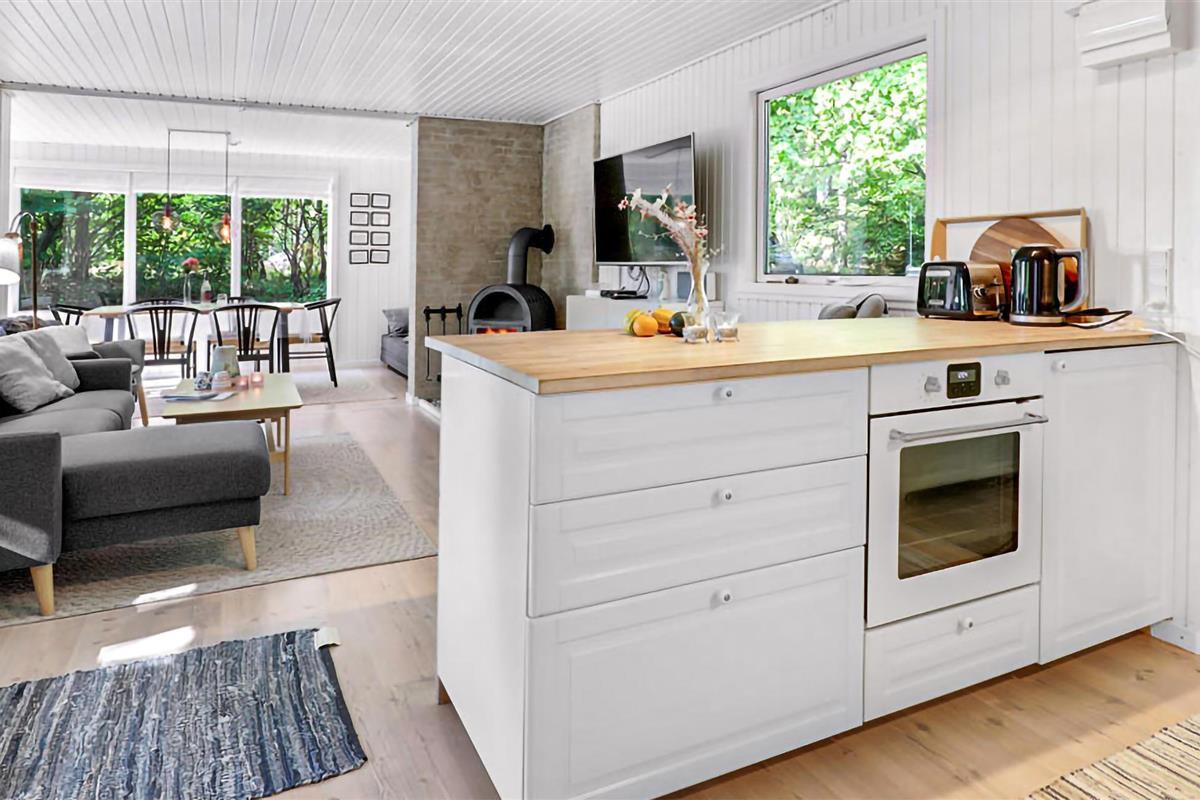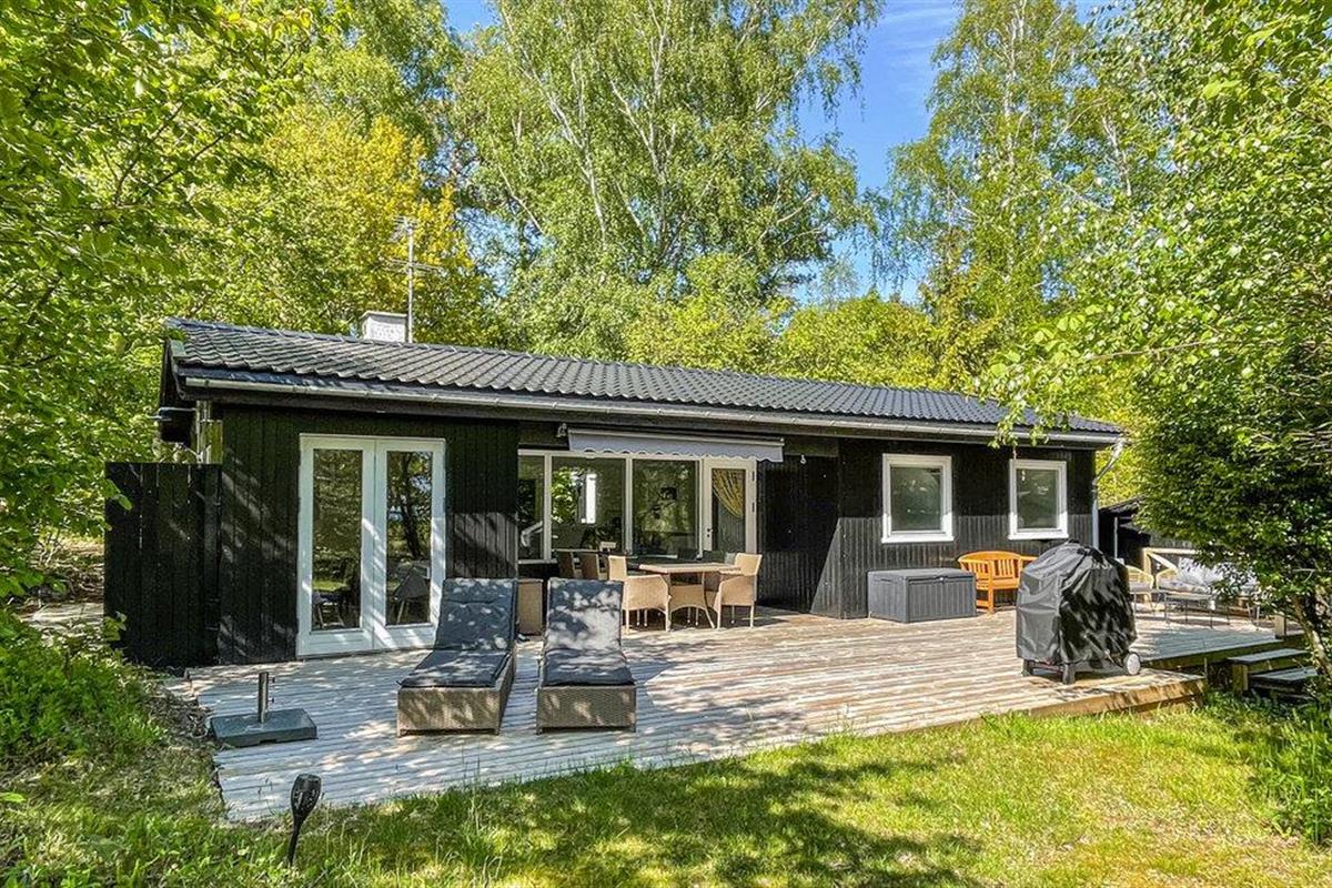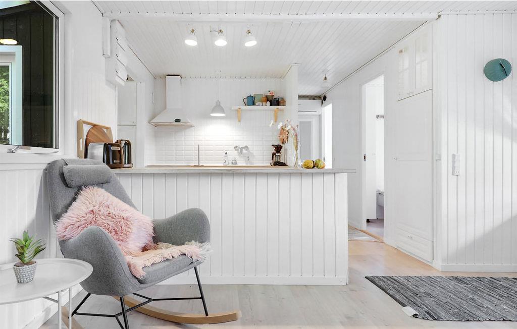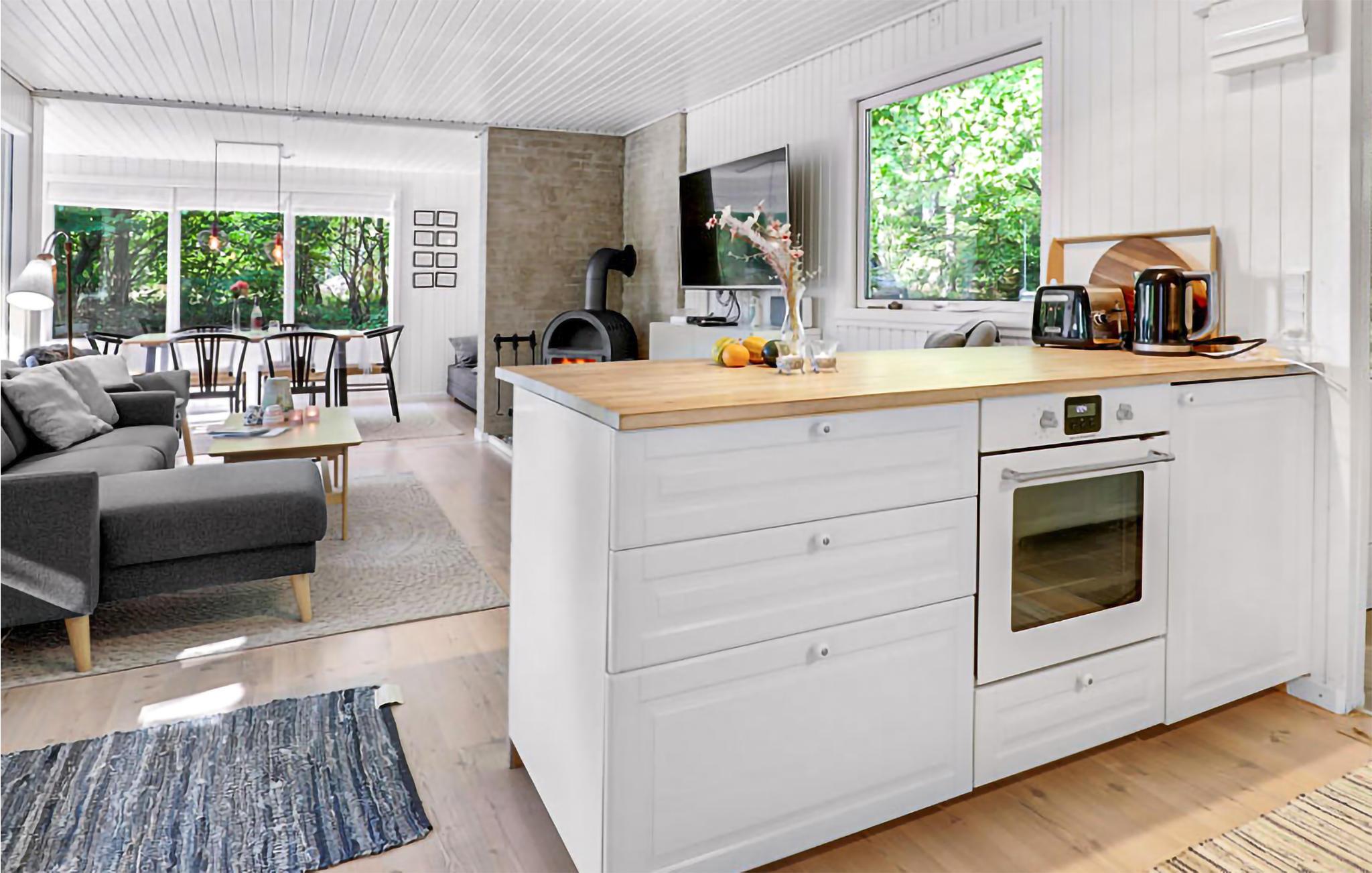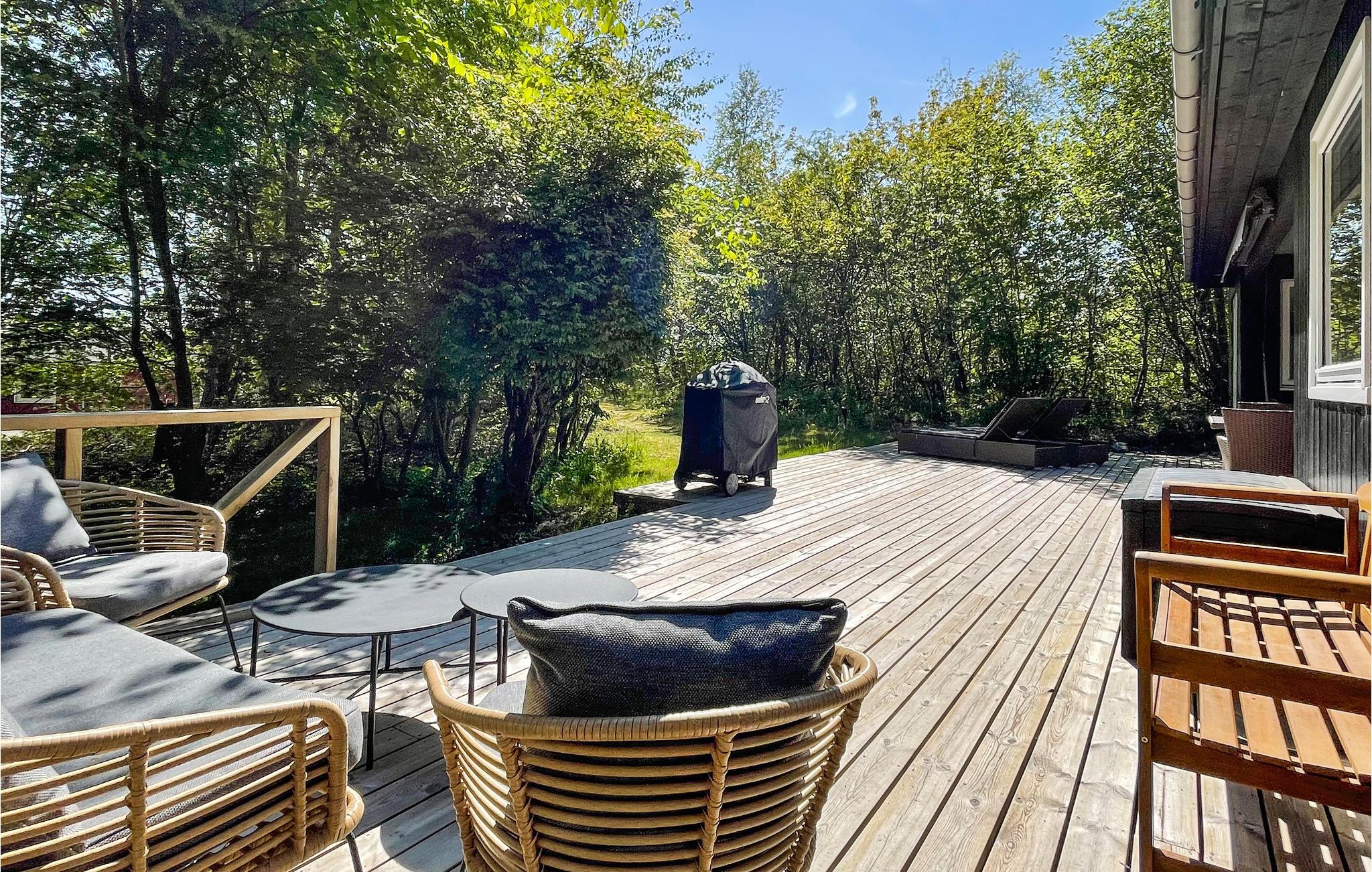 Gezellig vakantiehuis aan het strand in Aakirkeby met terras, houtkachel en speeltuin voor ontspannen vakantiedagen.