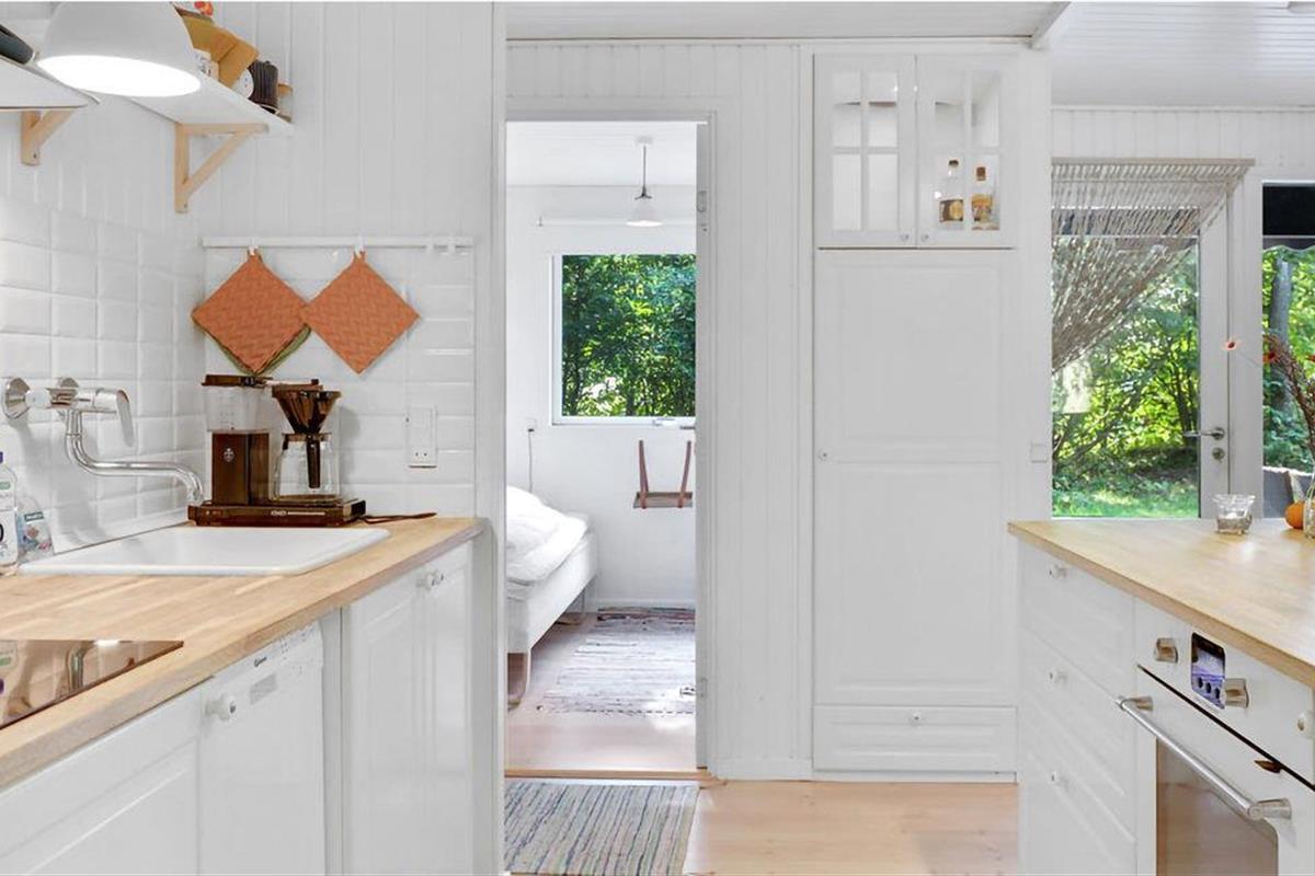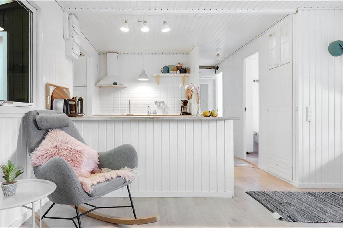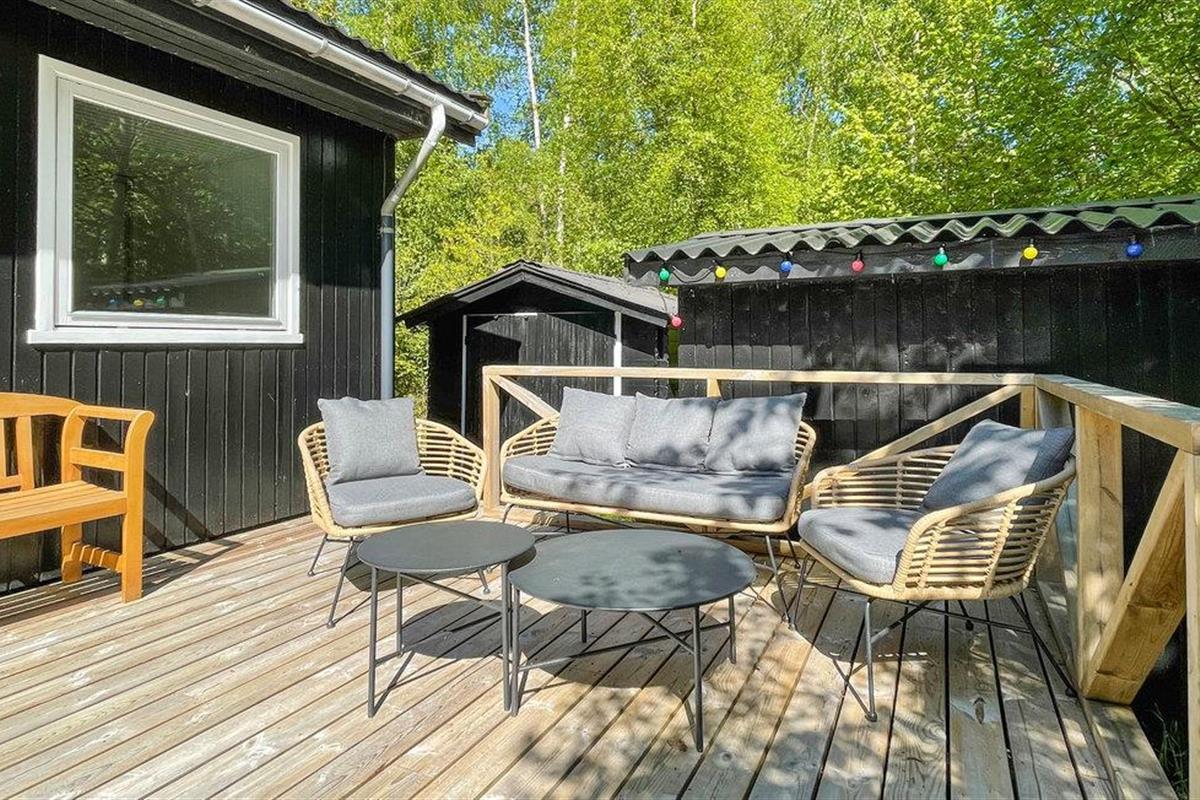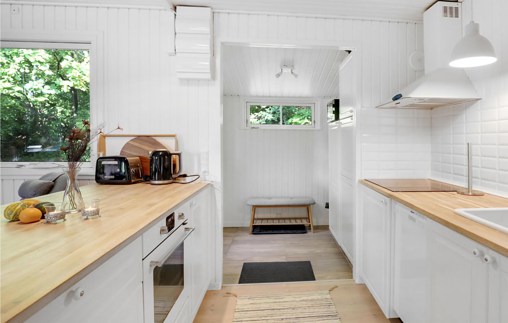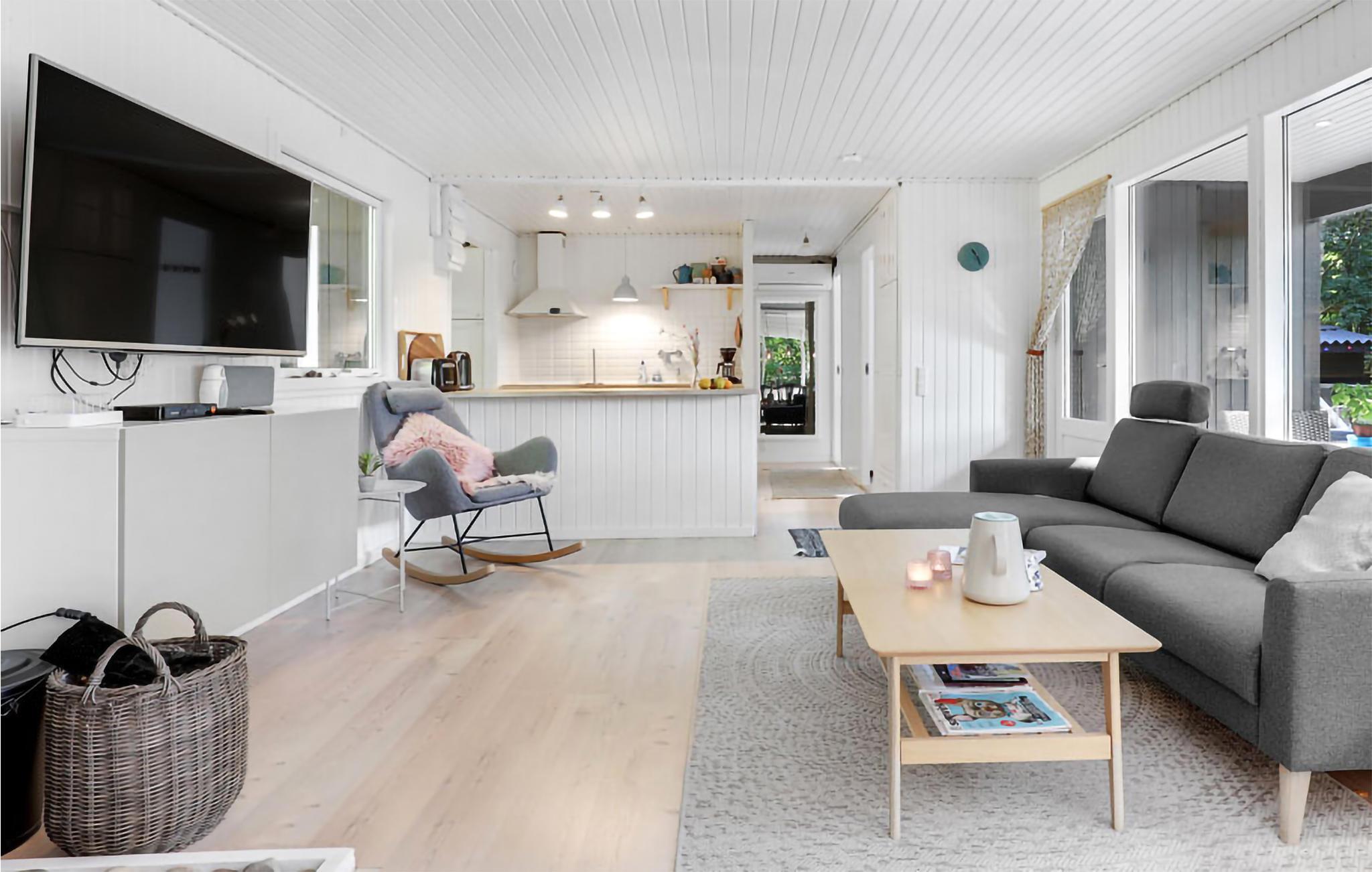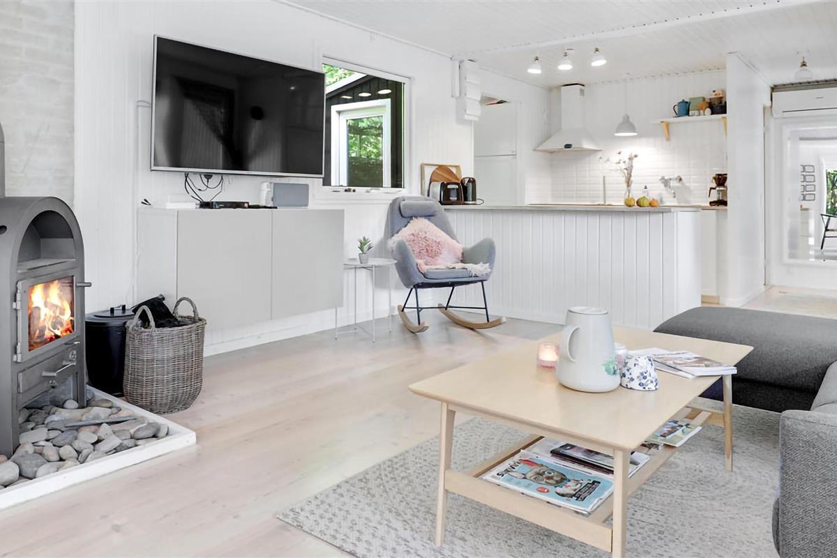 Gezellig vakantiehuis aan het strand in Aakirkeby met terras, houtkachel en speeltuin voor ontspannen vakantiedagen.
