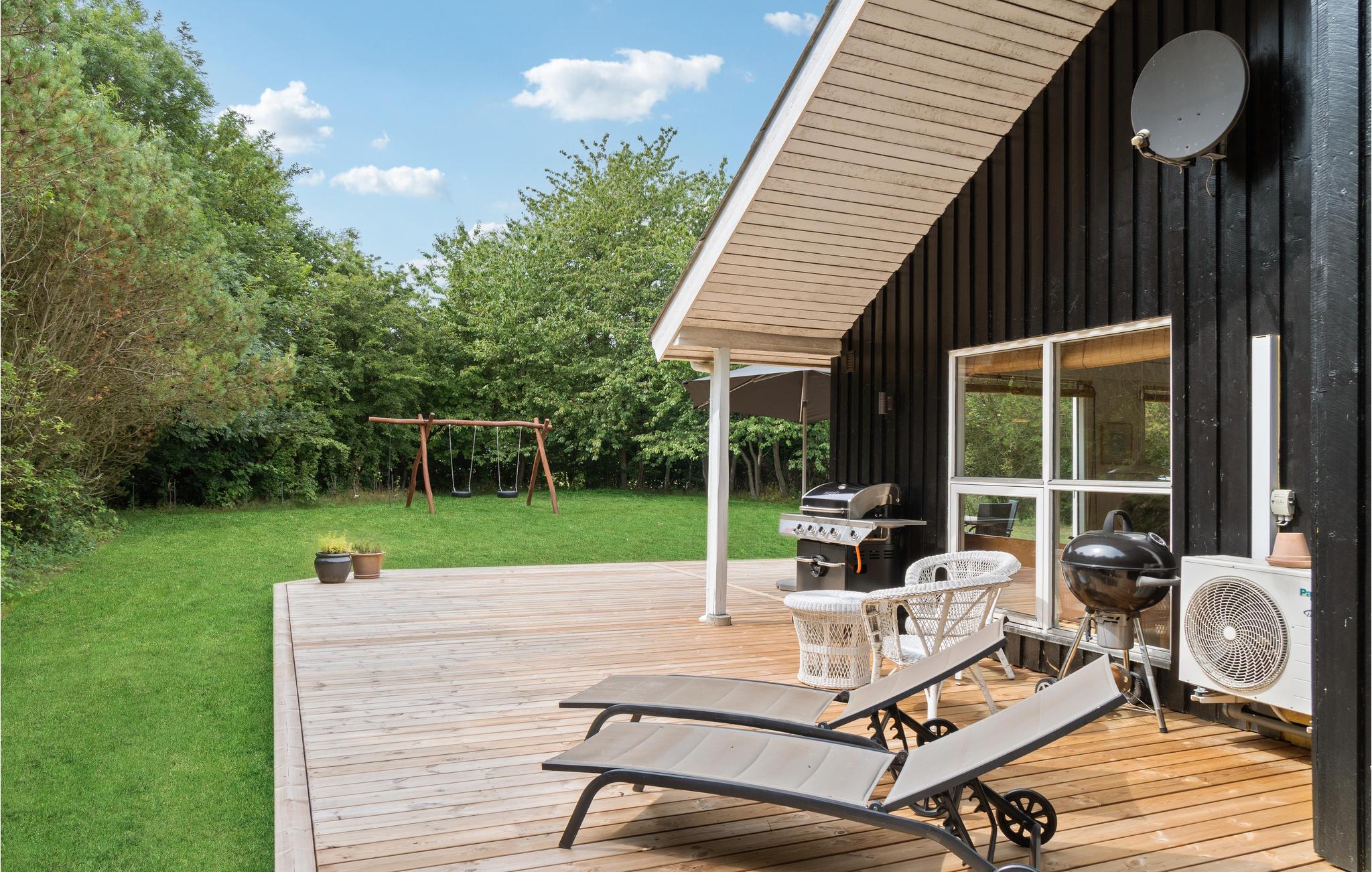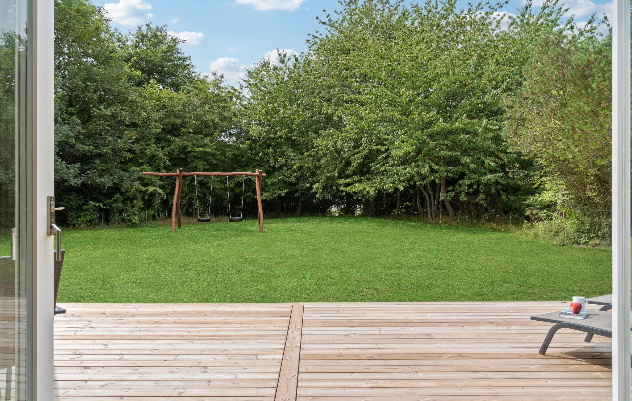 Het huis heeft een groot, half overdekt houten terras met loungemeubilair zoals ligstoelen - en een barbecue, zodat u ook buiten uw culinaire kant kunt ontwikkelen. De grote tuin met ligweide biedt veel ruimte om je uit te leven en te spelen. Voor de kinderen zal de schommel een welkome verrassing zijn.