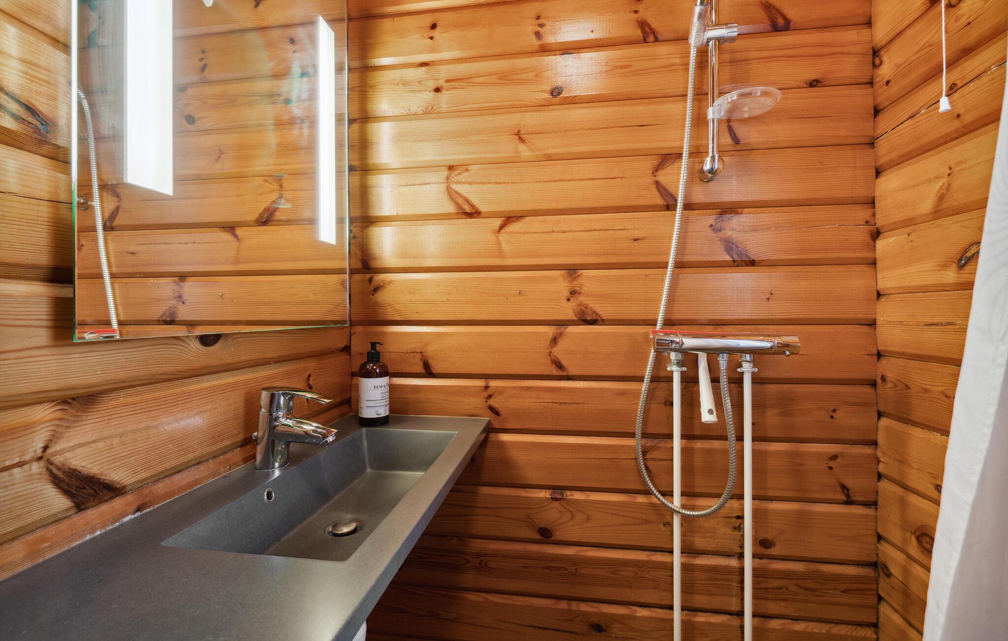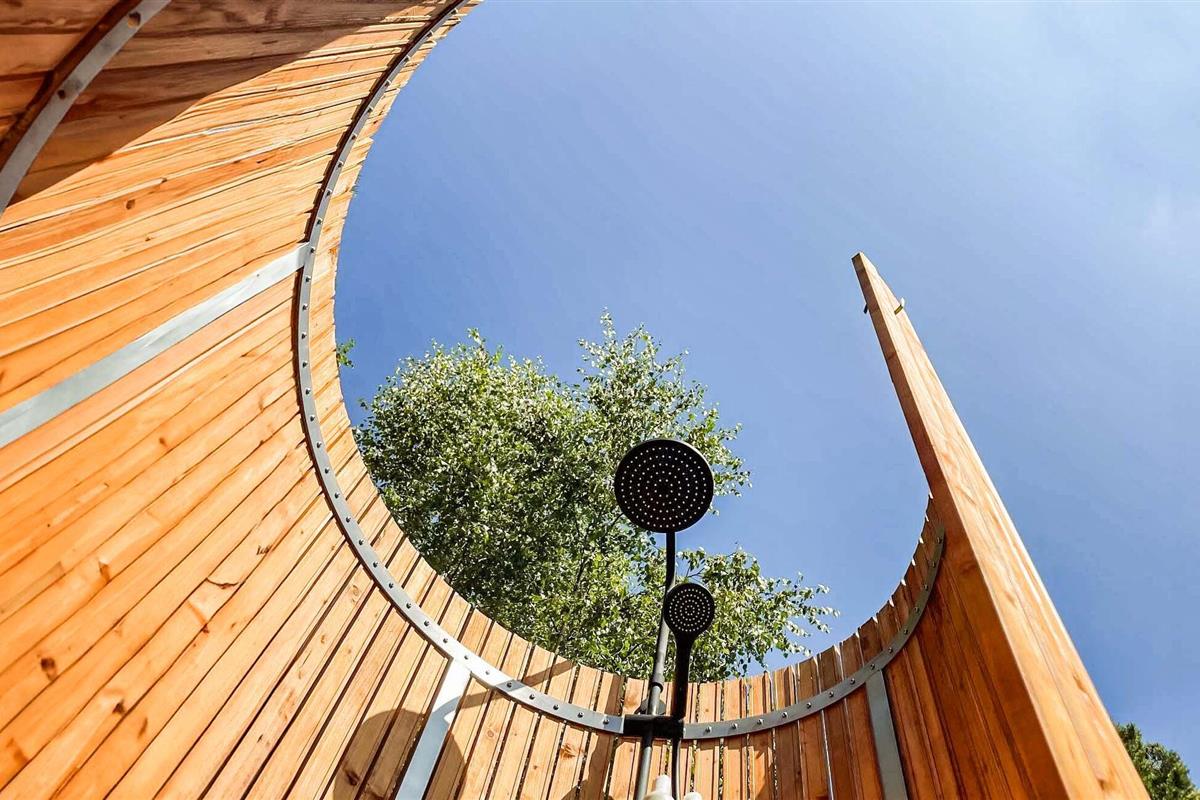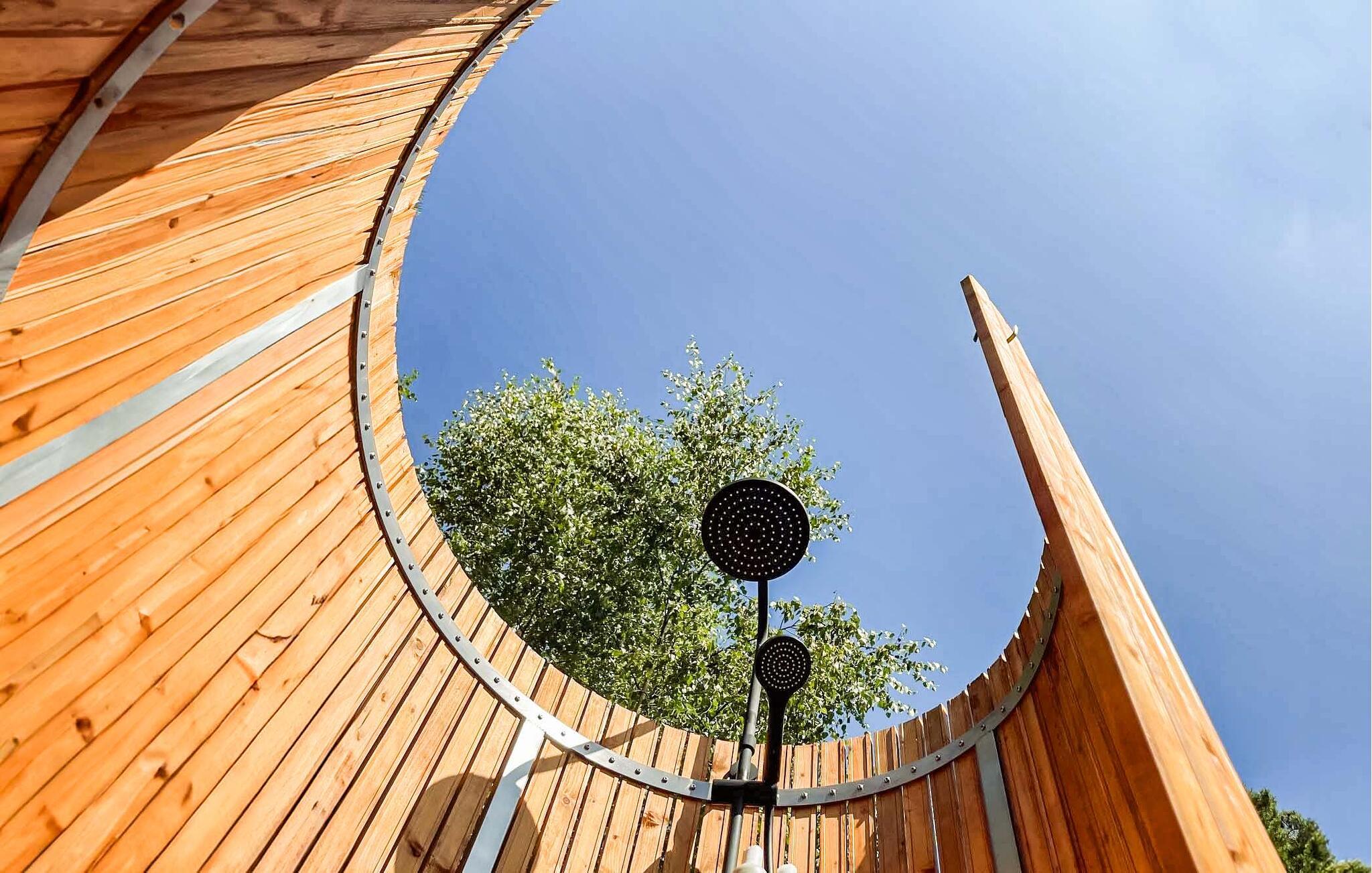 Geniet van de zon in de tuin en van je koffie in de namiddag op het omliggende terras. Gebruik de buitendouche op warme zomerdagen voor een welkome verfrissing met uitzicht op de boomtoppen. Sluit de avond af bij de gezellige vuurschaal. Rooster stokbrood of marshmallows of ga gewoon in een hangstoel op het terras zitten en kijk naar het vuur.