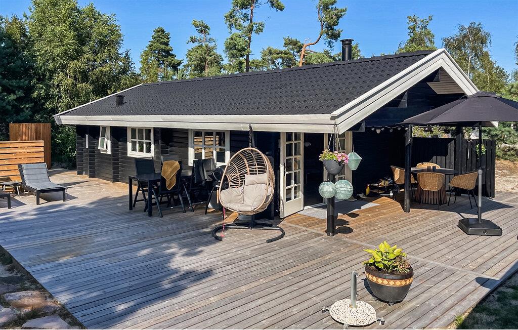 Ontdek dit knusse vakantiehuis vlak bij het strand, met moderne houtinrichting en een gezellige houtkachel voor warme avonden.
