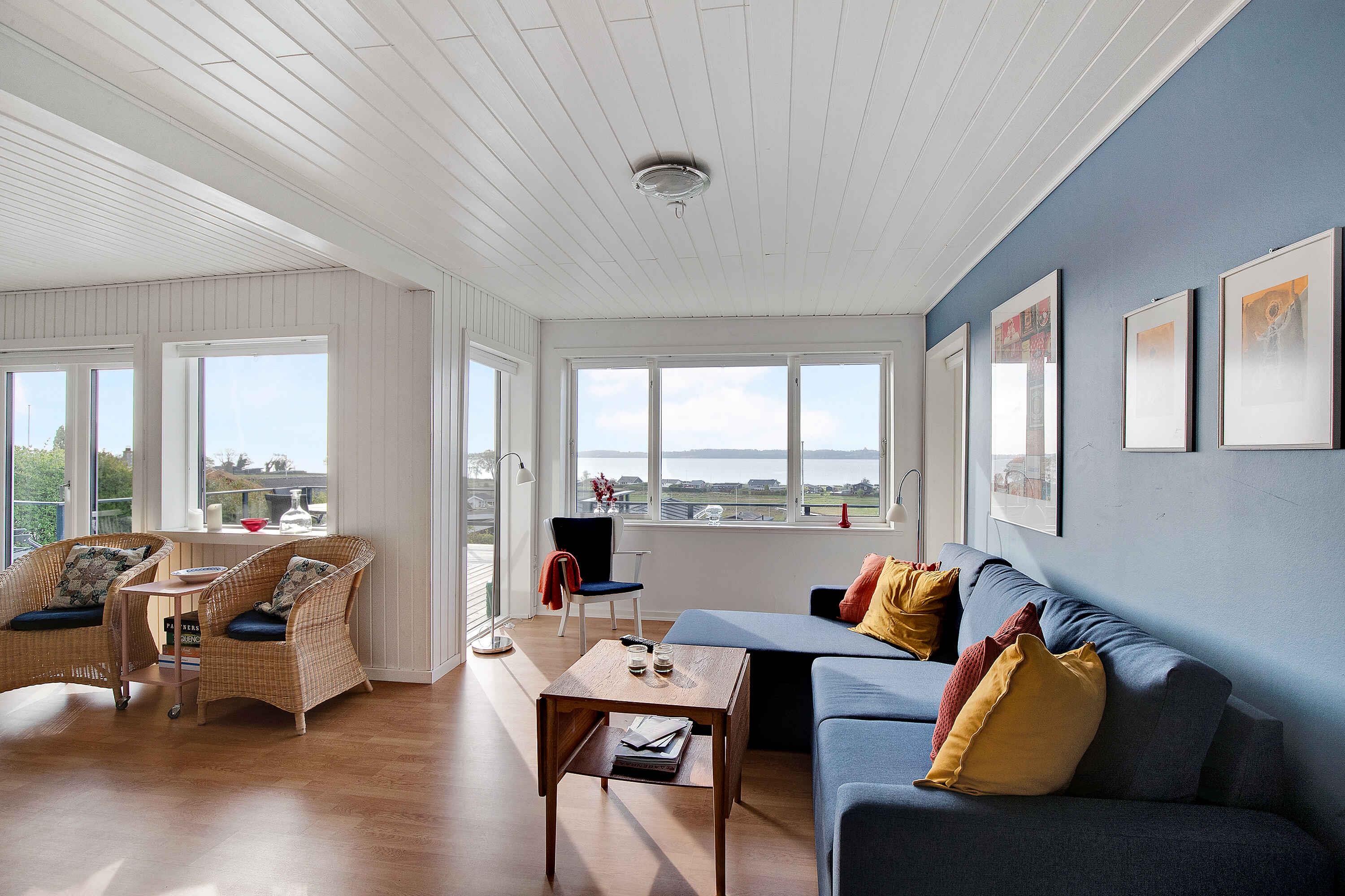 Pas gerenoveerd zomerhuis met panoramisch zeezicht en direct aan het kindvriendelijke strand van Aabenraa Fjord.