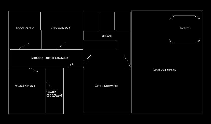 Værelse 13 – Tagsuite Stor og eksklusiv hotel-lejlighed med tagterrasse og jacuzzi Velkommen til denne eksklusive og rummelige lejlighed med plads til op til 6 personer. Lejligheden er ideel til både familie og venner, der ønsker komfort, luksus og god plads. Sovepladserne er fordelt på to separate værelser samt en daybed i stuen med plads til 2 personer. Det store soveværelse byder på en komfortabel dobbeltseng, og i det tilhørende mindre værelse er der god opbevaringsplads med store skabe. Det andet værelse er indrettet med to enkeltsenge. Lejligheden har et stort og lækkert badeværelse med to rummelige brusehoveder, så der er god komfort – også når flere skal gøre sig klar samtidig. Det rummelige køkken-alrum fungerer som lejlighedens naturlige samlingspunkt med fuldt udstyret køkken og spiseplads til hyggelige måltider. Fra lejligheden er der direkte udgang til en stor, privat tagterrasse. Her finder du havemøbler til 6 personer, en stor jacuzzi samt en udendørs bruser – perfekt til afslapning og hyggelige stunder under åben himmel. En ideel lejlighed til dig, der ønsker hotelkomfort kombineret med privatliv og eksklusive faciliteter.