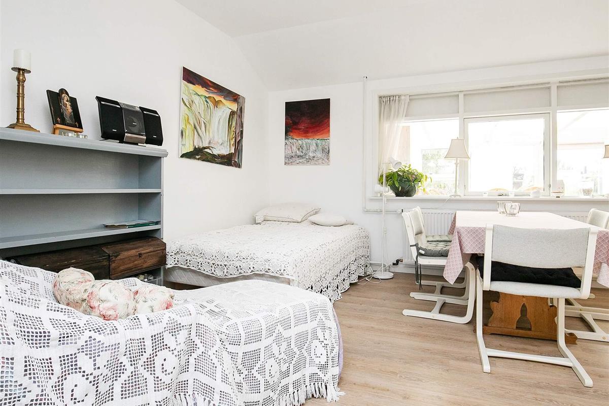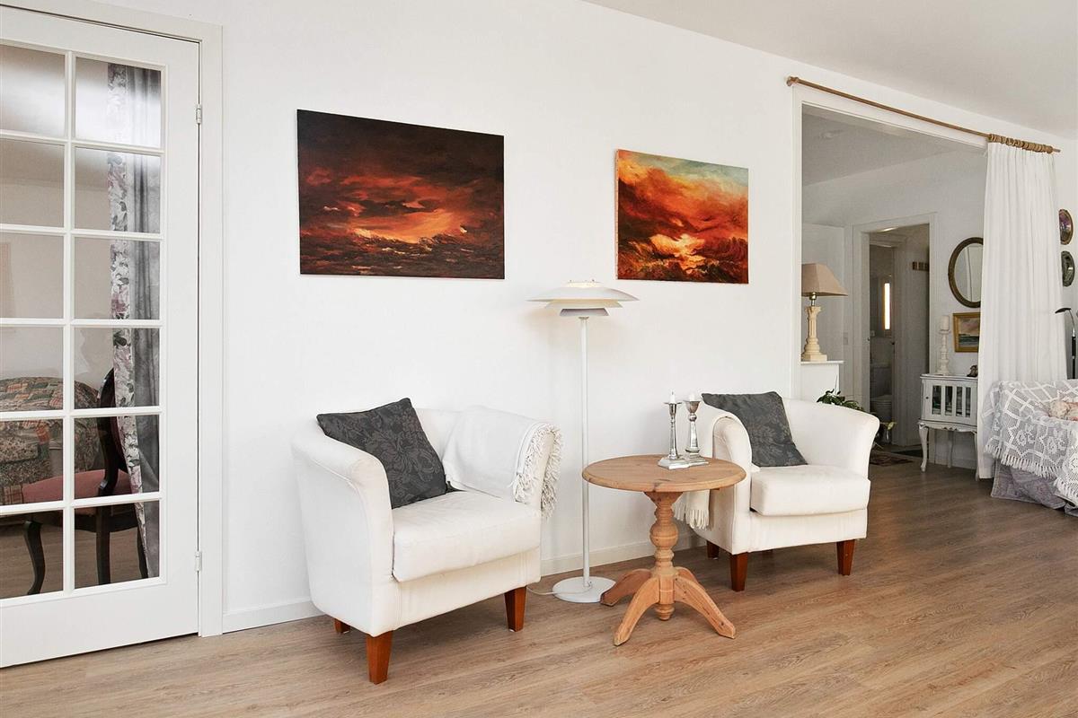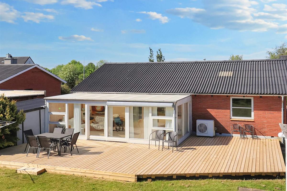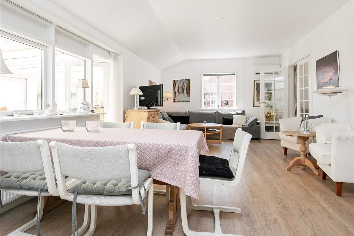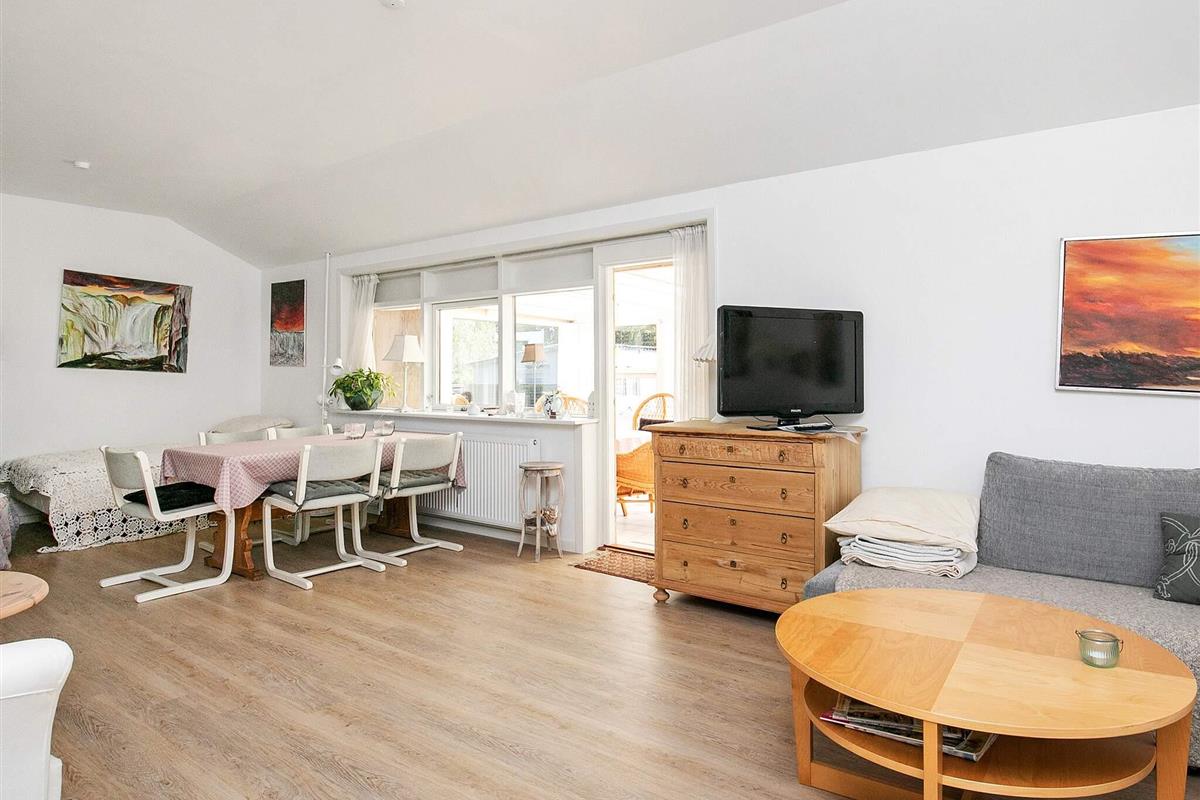Das Haus bietet drei Schlafzimmer, zwei Bäder sowie einen Schlafplatz in 3/4-Größe im Wohnbereich. Vom offenen Küchen-/Wohnbereich hat man Zugang zur verglasten Veranda und weiter auf die Terrasse im Außenbereich. Die Küche wurde 2019 renoviert. Das Haus wird mittels einer nergieeffizienten Luft-Wasser-Wärmepumpe stromsparend beheizt. Es steht auf einem 726 m² großen Grundstück mit sonniger Rasenfläche für Sommertage.