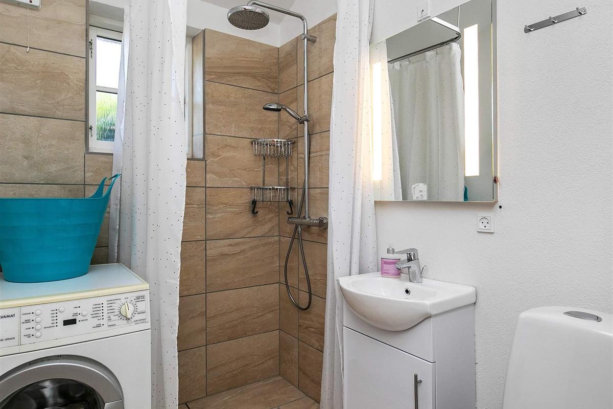 Bad: Waschm., WC, Waschb., Dusche, Fußbodenheiz.