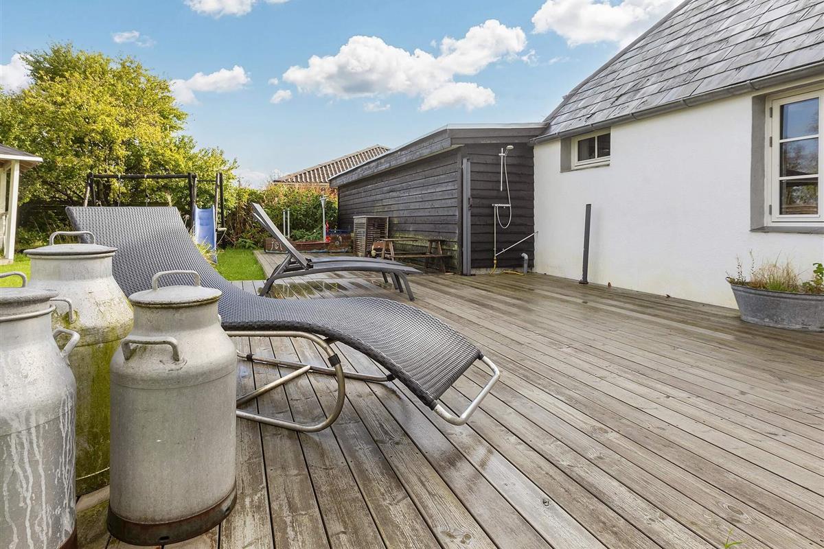 Dieser große Raum bietet direkten Zugang zum schönen Rasengrundstück und zur schönen Terrasse, auf der Sie die Sonnentage genießen können. Für die Kinder gibt es Schaukel und Sandkasten. Zudem sind Gartenmöbel, Liegestühle und Grill selbstverständlich vorhanden. Hier finden Sie auch die praktische Außendusche des Hauses.