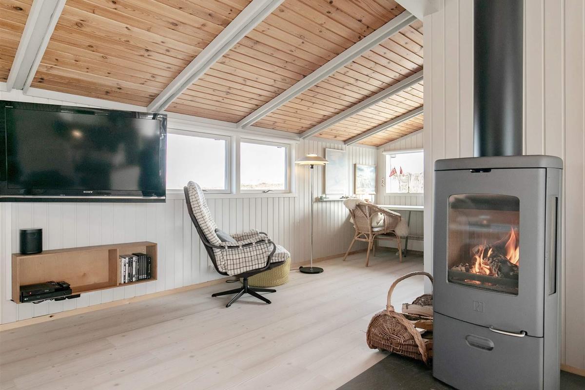 Das Herzstück des Hauses ist die große, gut ausgestattete Wohnküche mit modernen Annehmlichkeiten wie einem Kaffeevollautomaten und einem Geschirrspüler. Angrenzend an die Küche befindet sich das gemütliche Wohnzimmer mit schönen, bequemen Möbeln und einem Holzofen. Das Haus verfügt außerdem über einen Arbeitstisch mit Blick in die wunderschöne Natur.