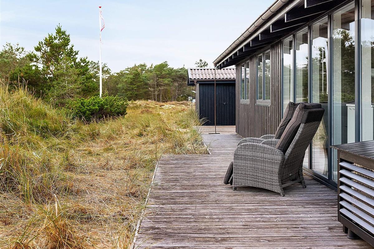 Der Außenbereich zeugt von gutem Geschmack. Das Ferienhaus ist von wunderschöner Natur umgeben. Zwei Terrassen auf der anderen Seite des Hauses, eine davon teilweise überdacht, bieten reichlich Schutz, Sonne oder Schatten, sodass Sie den dänischen Sommer von morgens bis abends in vollen Zügen genießen können.
