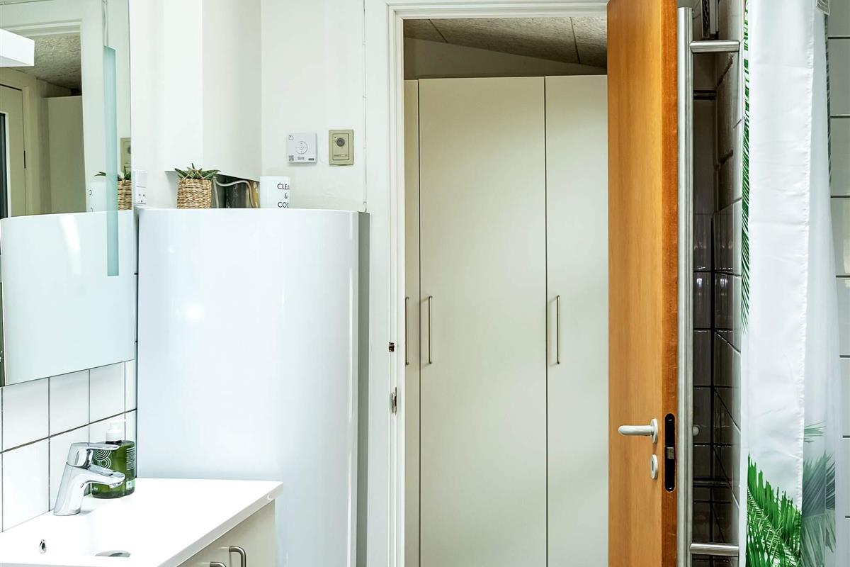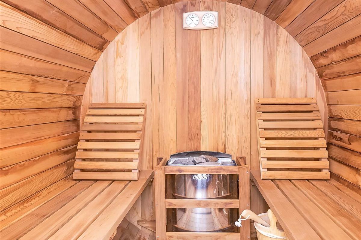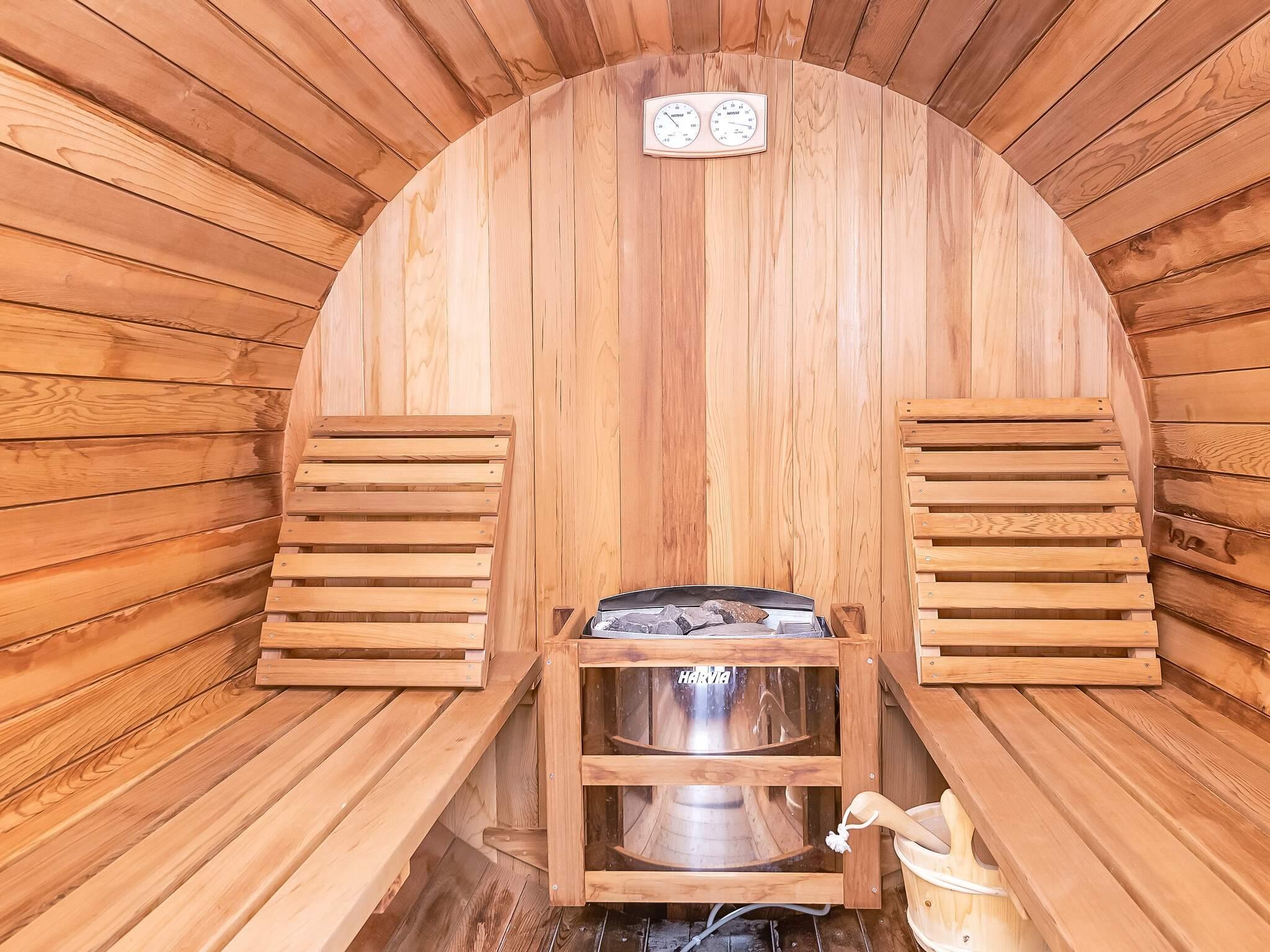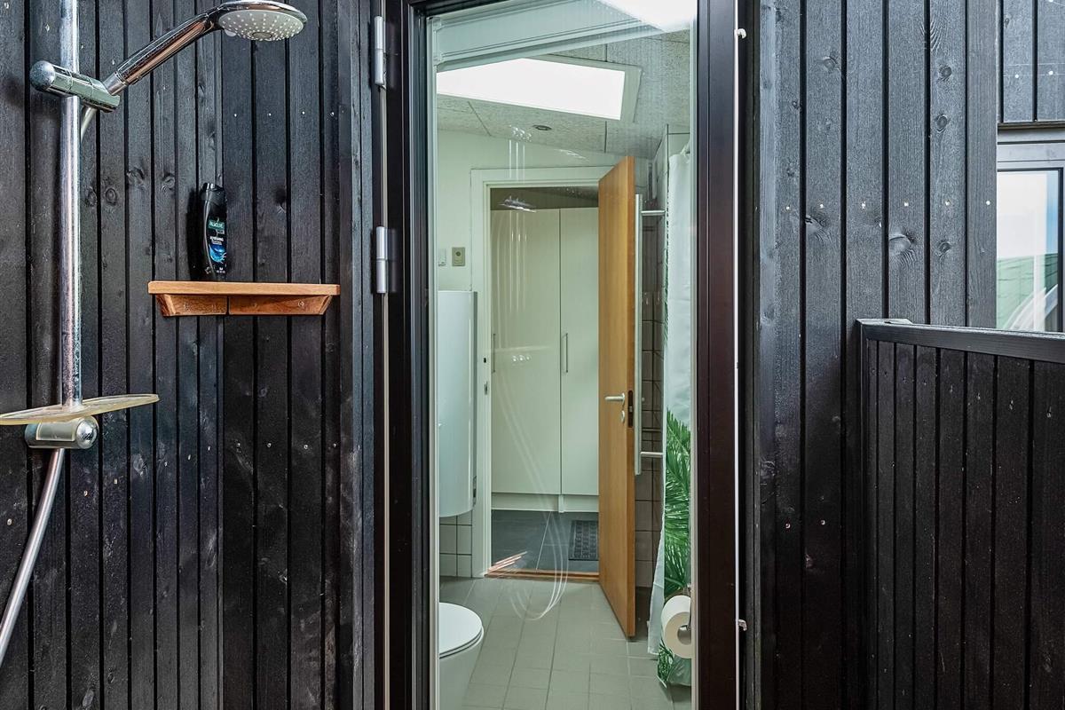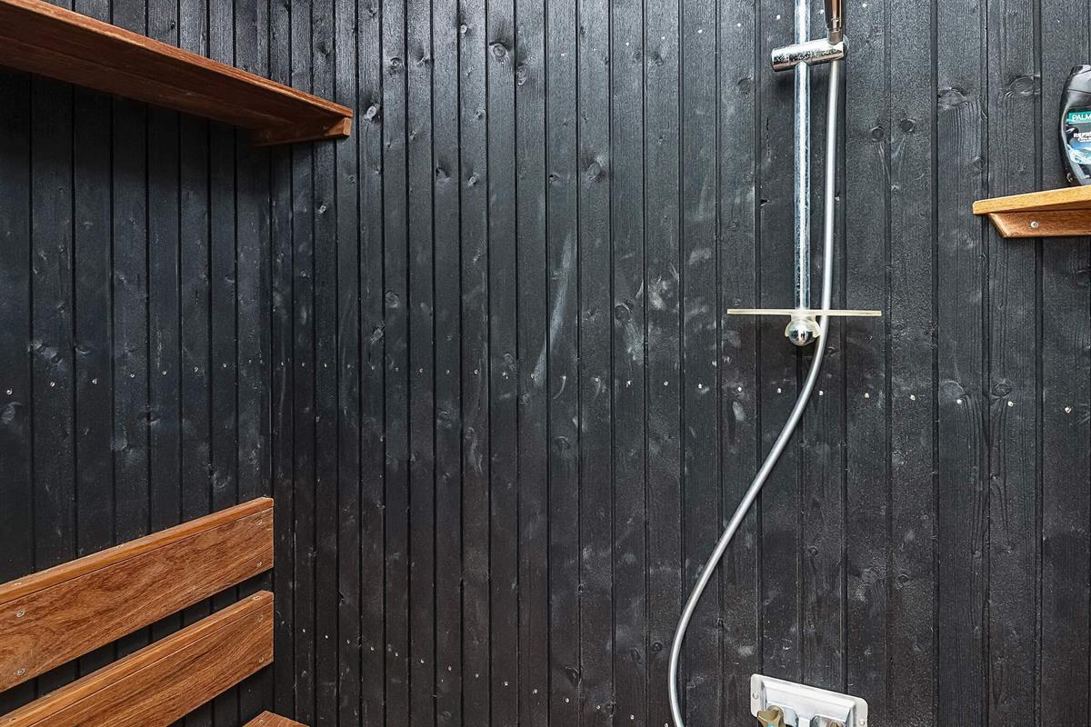 Das Ferienhaus bietet drei gute Schlafzimmer, das größte davon mit zwei Oberlichtern und Ausblick zum Sternenhimmel bei Nacht. Modernes Badezimmer mit Zugang zur praktischen Außendusche und weiter zum Saunafass des Hauses, in dem man sich nach einem aktiven Urlaubstag wunderbar entspannen kann.