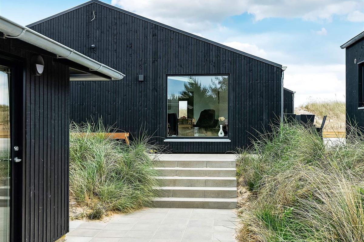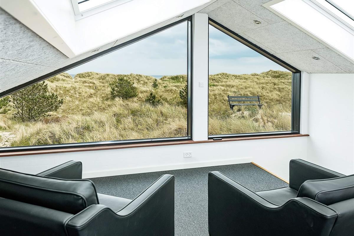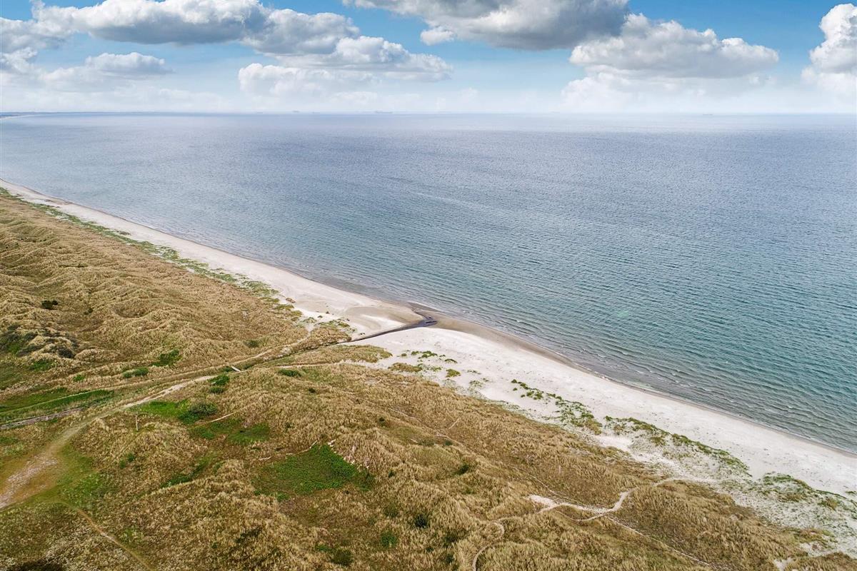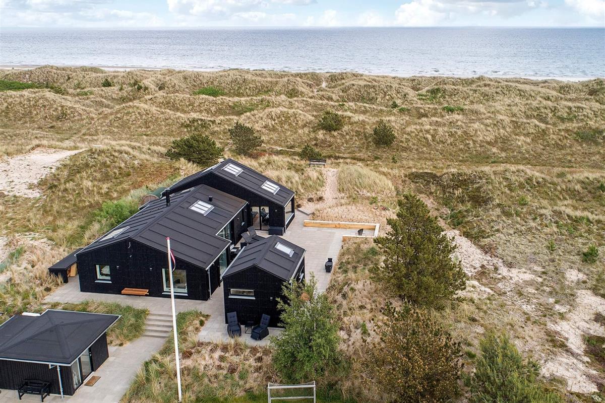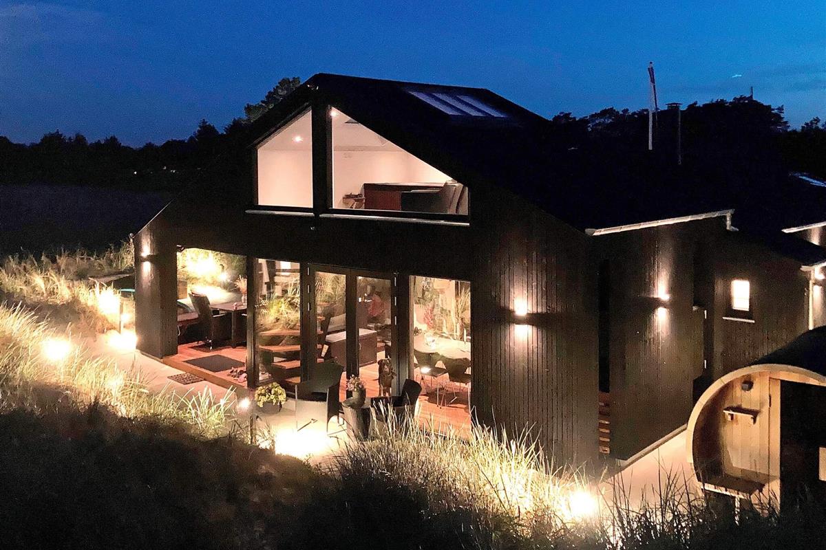 Ansprechendes, von Architektenhand individuell entworfenes und komplett renoviertes Ferienhaus mit allen erdenklichen modernen Annehmlichkeiten und ruhiger, attraktiver Lage, am Rande eines Ferienhausgebietes bei Ålbæk. Man hat hier Meerblick oben vom Wohnbereich im 1. Stock!
