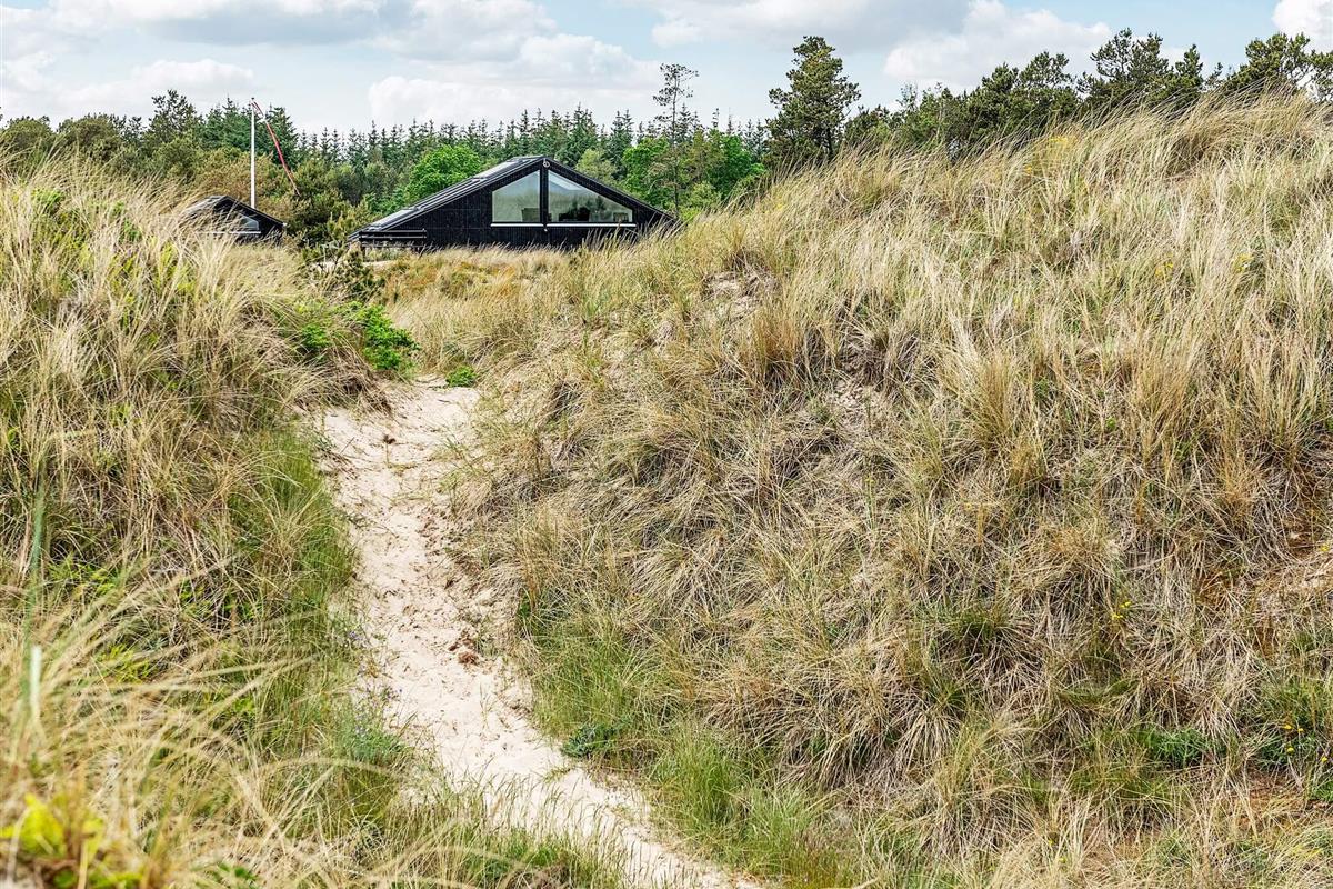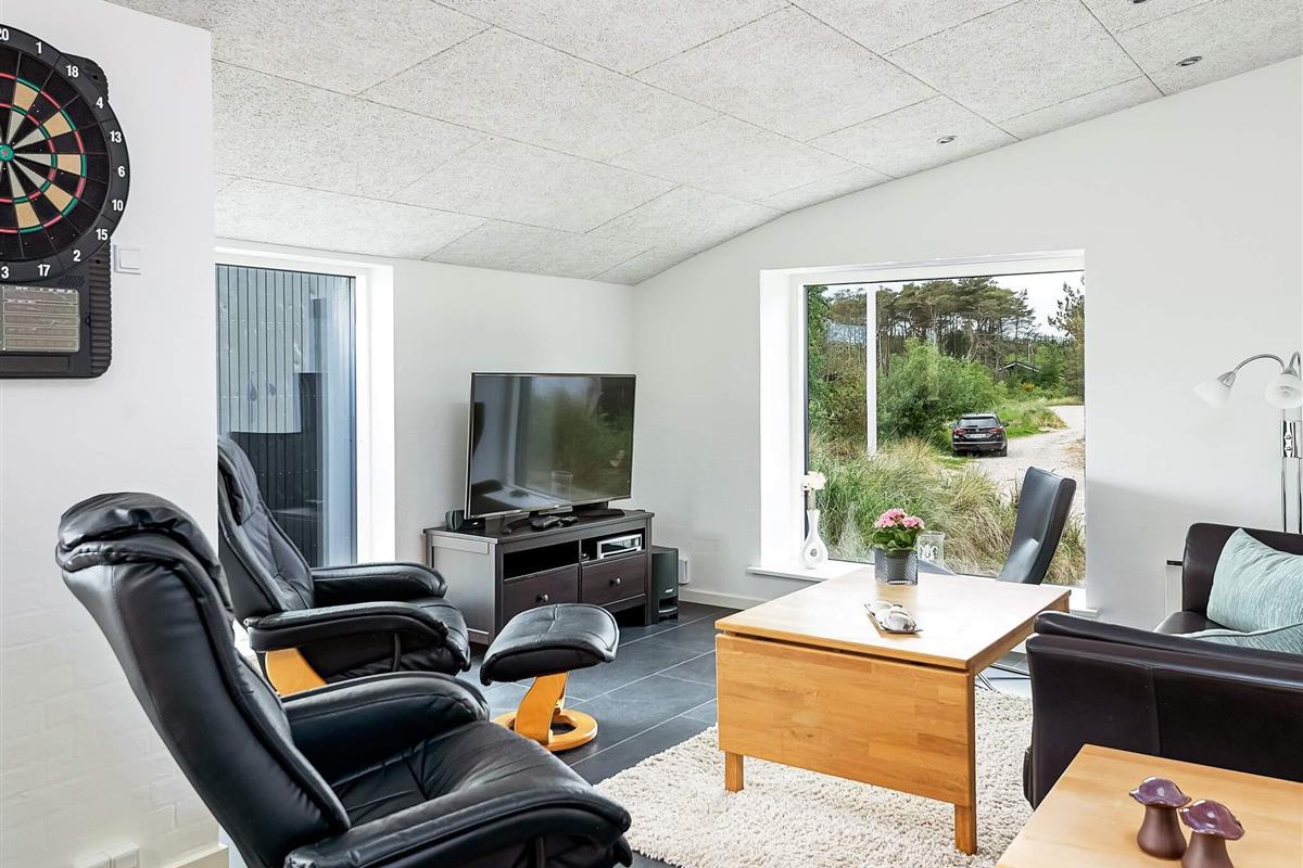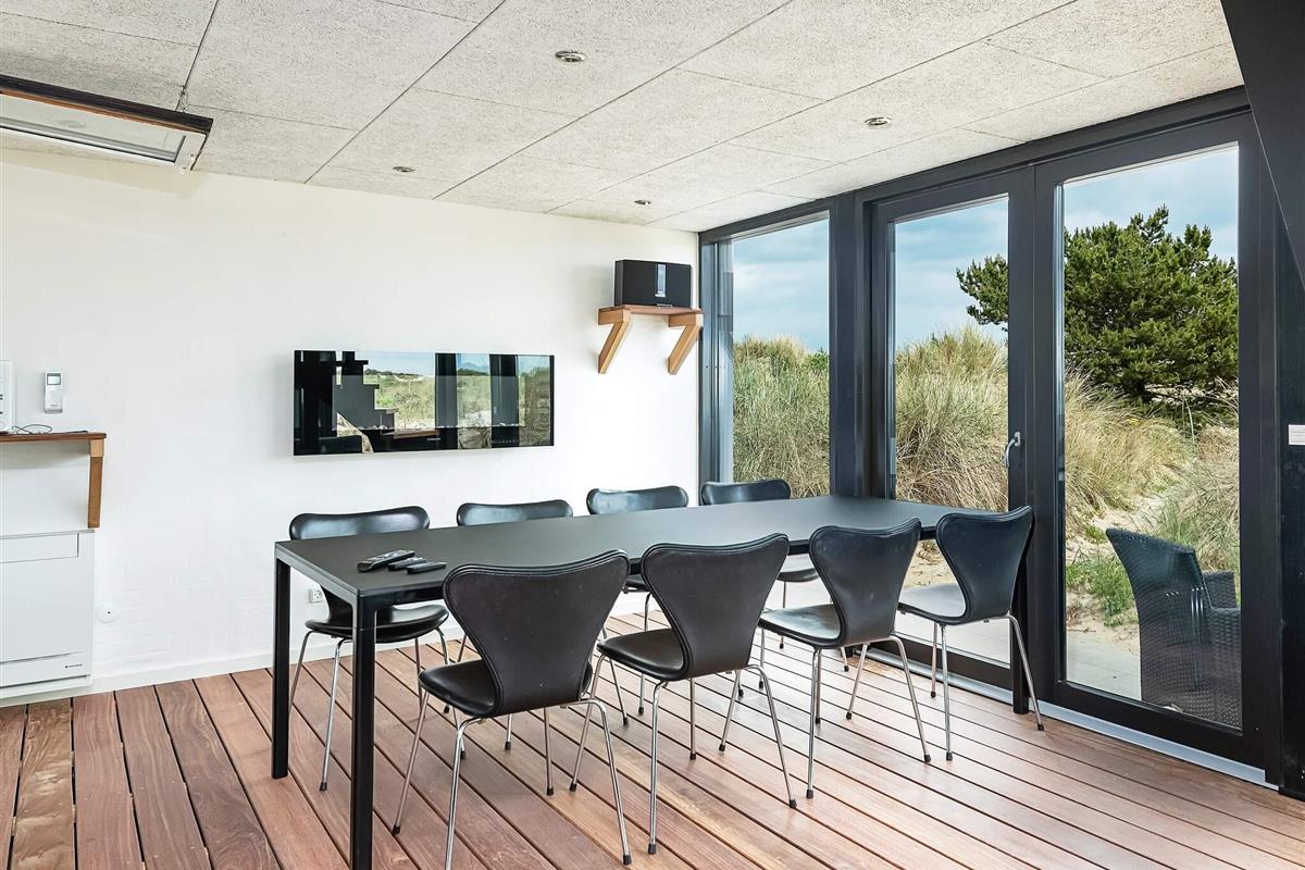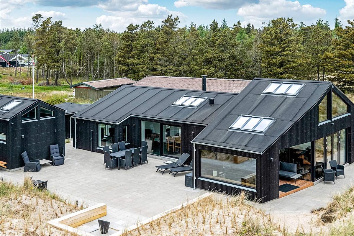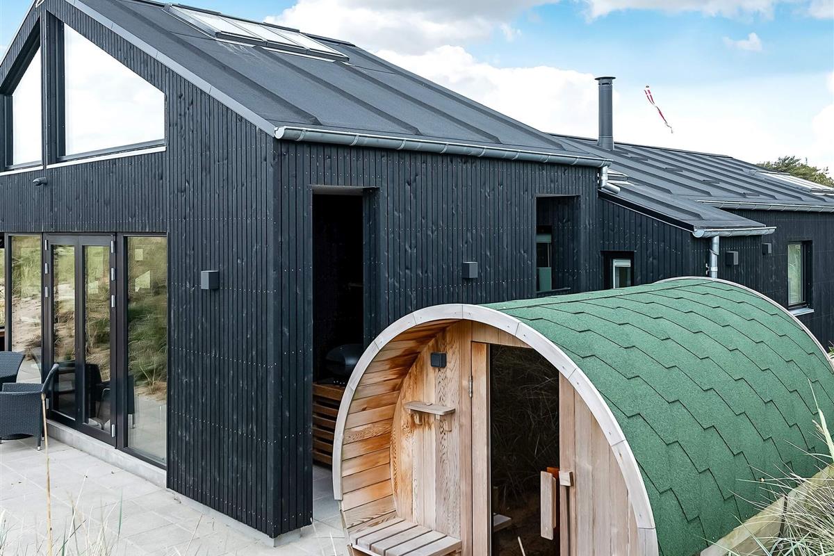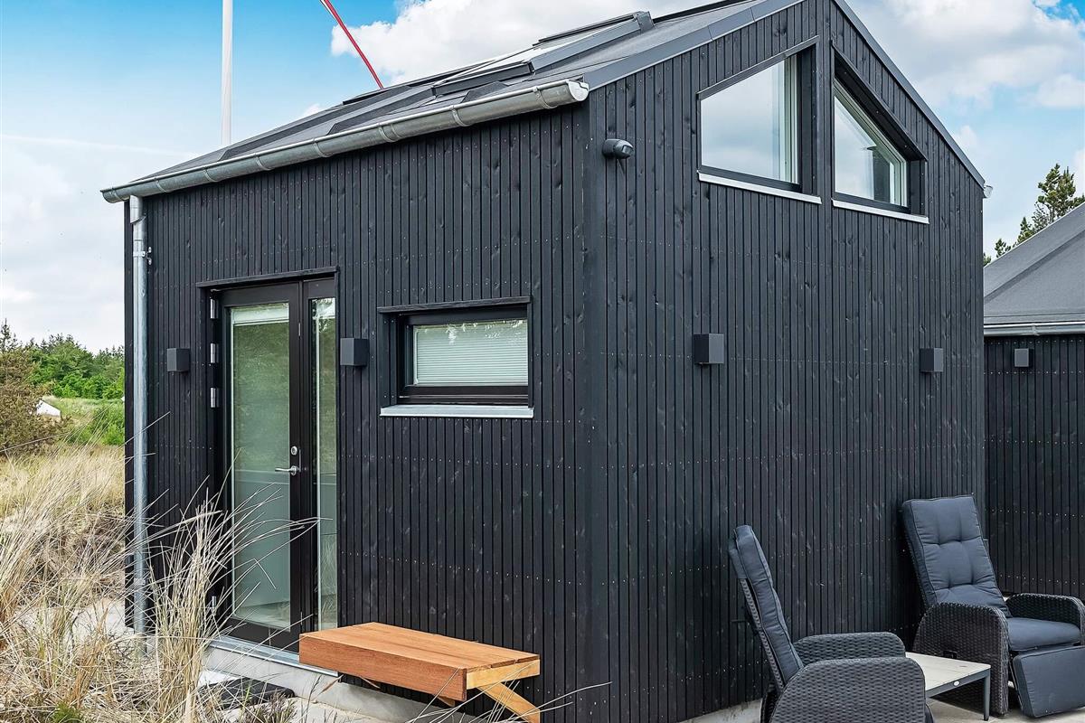 Ansprechendes, von Architektenhand individuell entworfenes und komplett renoviertes Ferienhaus mit allen erdenklichen modernen Annehmlichkeiten und ruhiger, attraktiver Lage, am Rande eines Ferienhausgebietes bei Ålbæk. Man hat hier Meerblick oben vom Wohnbereich im 1. Stock!
