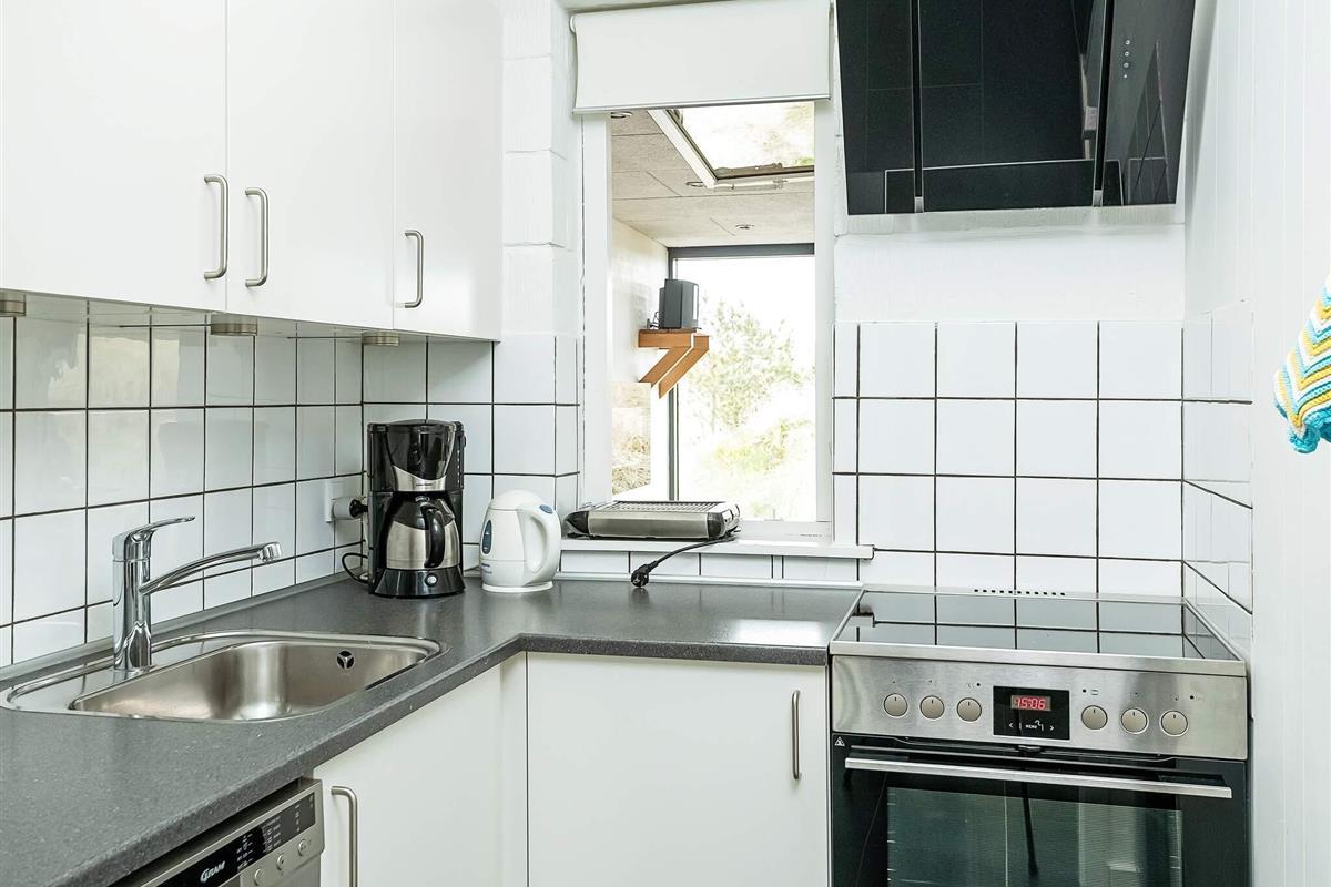 Funktionale Küche mit großem Kühlschrank und Gefrierfach. Alternativ können Sie im Wintergarten die praktische Außenküche nutzen. In Verlängerung des Wohnzimmers befindet sich der Aktivitätsraum, der zu vielen Stunden Freizeitspaß und Gemütlichkeit einlädt, sollte das Strandwetter einmal ausbleiben.