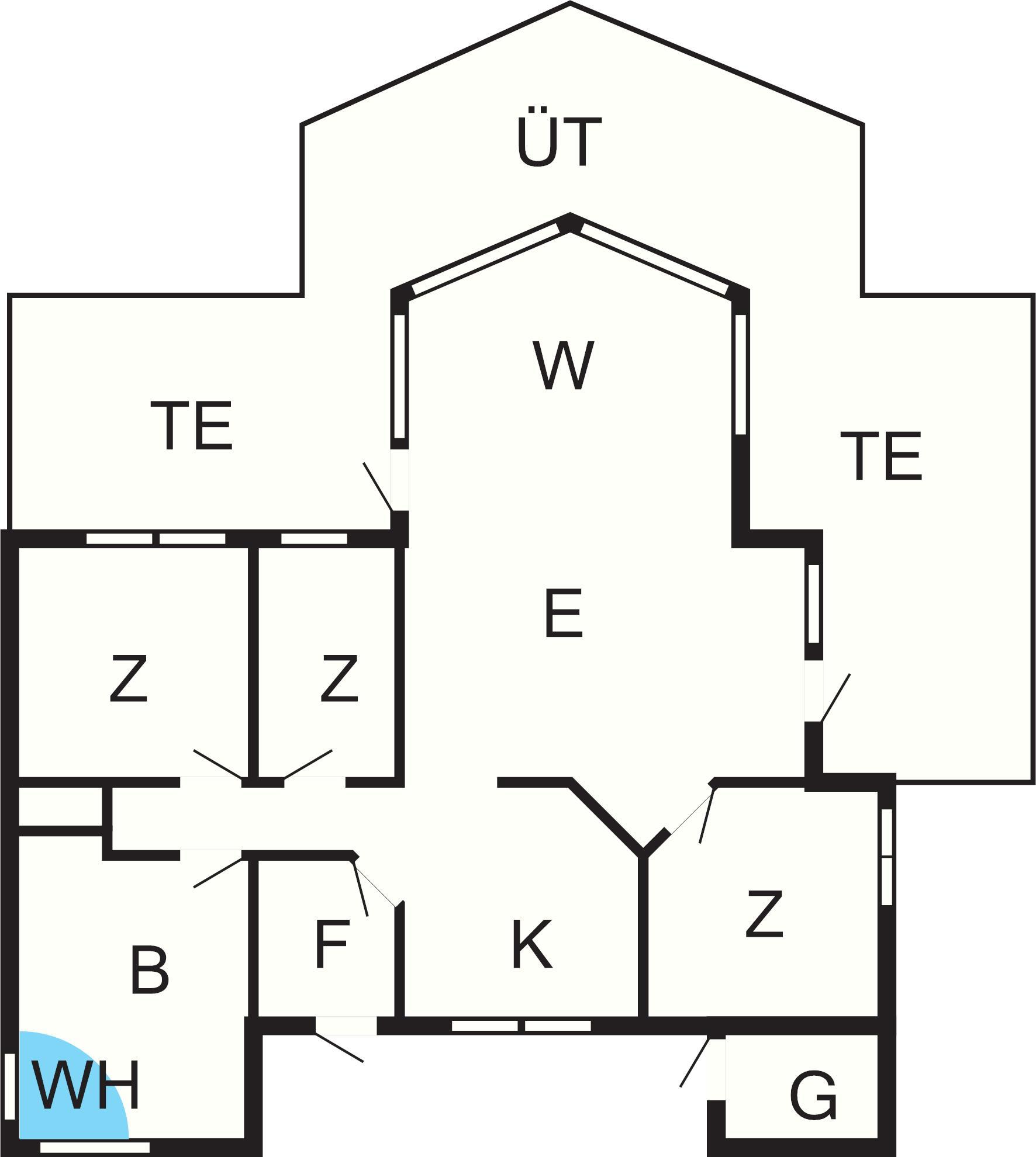 Bad: WC, Waschb., Dusche, Fußbodenheiz.