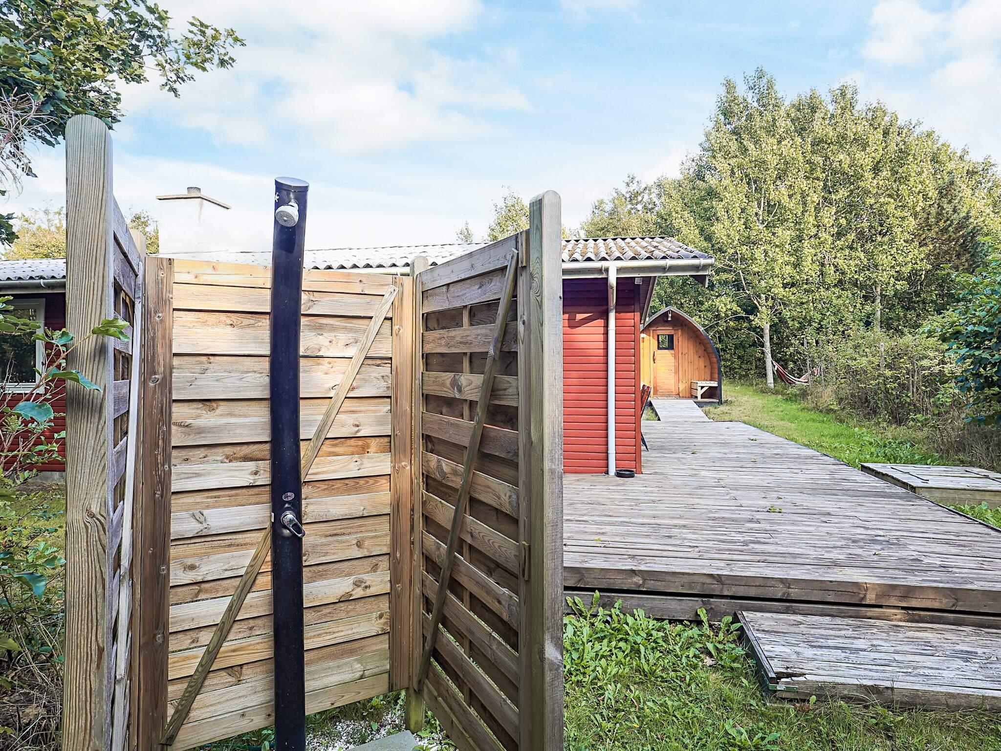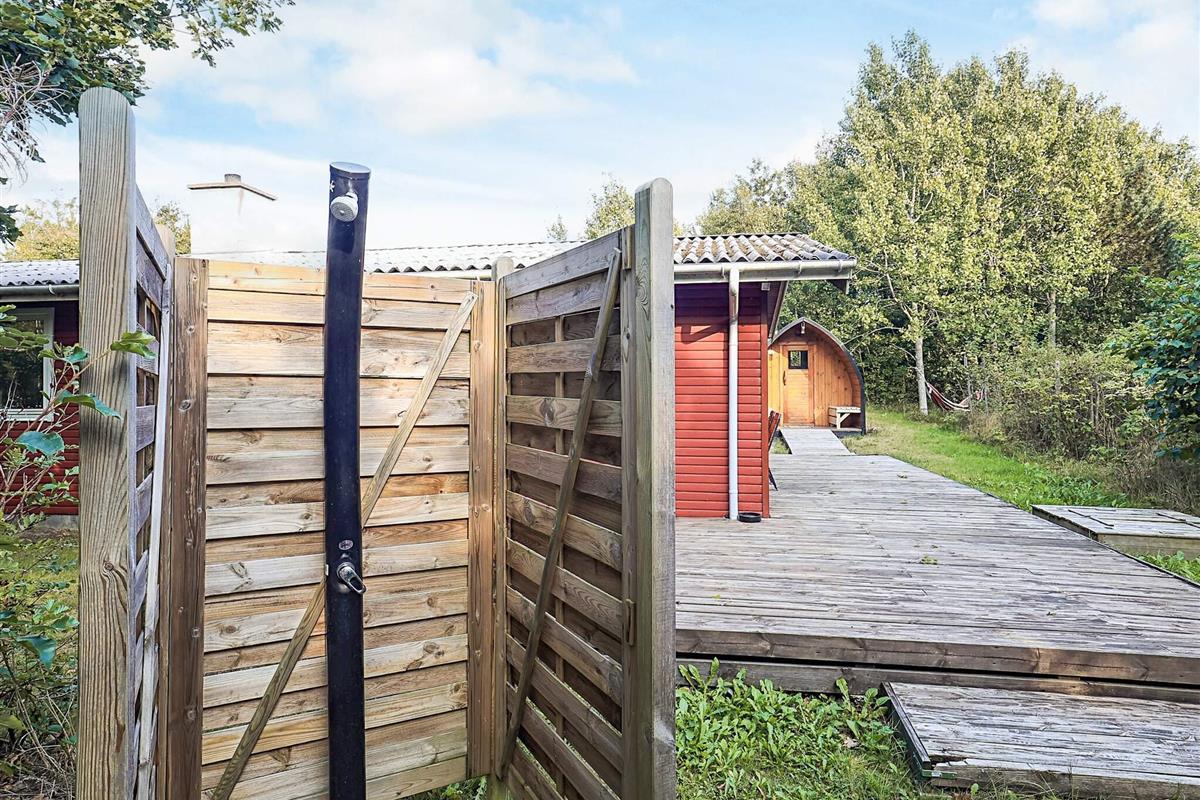 Traditionelles Ferienhaus etwa 1 km nördlich des Ferienortes Ålbæk aber nur ca. 300 m von den Dünen und dem kinderfreundlichen Badestrand entfernt. Das Haus ist eher einfach aber dennoch gemütlich ausgestattet und bietet zwei Schlafzimmer mit jeweils zwei Schlafplätzen, wobei das Doppelbett etwas schmaler als gewöhnlich ist. Separate Küche im Haus. Sauna im Außenbereich des Hauses (siehe Foto).