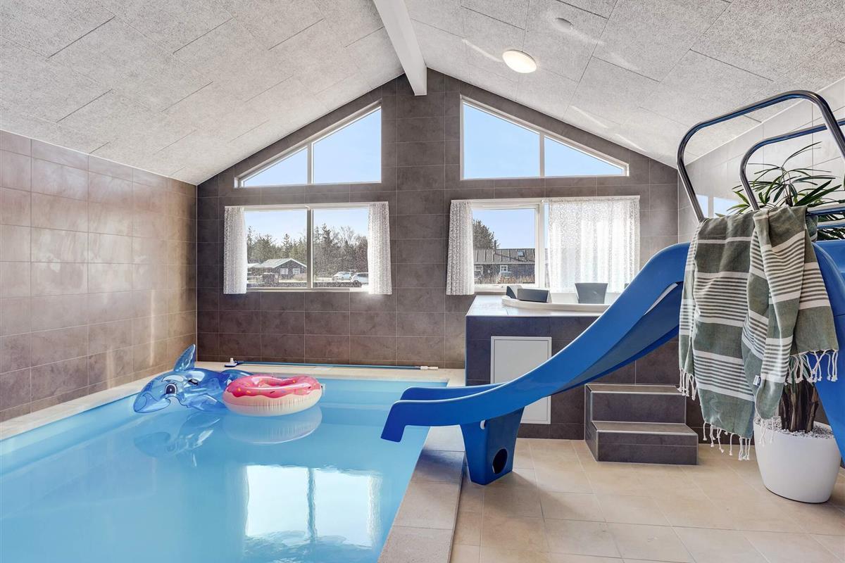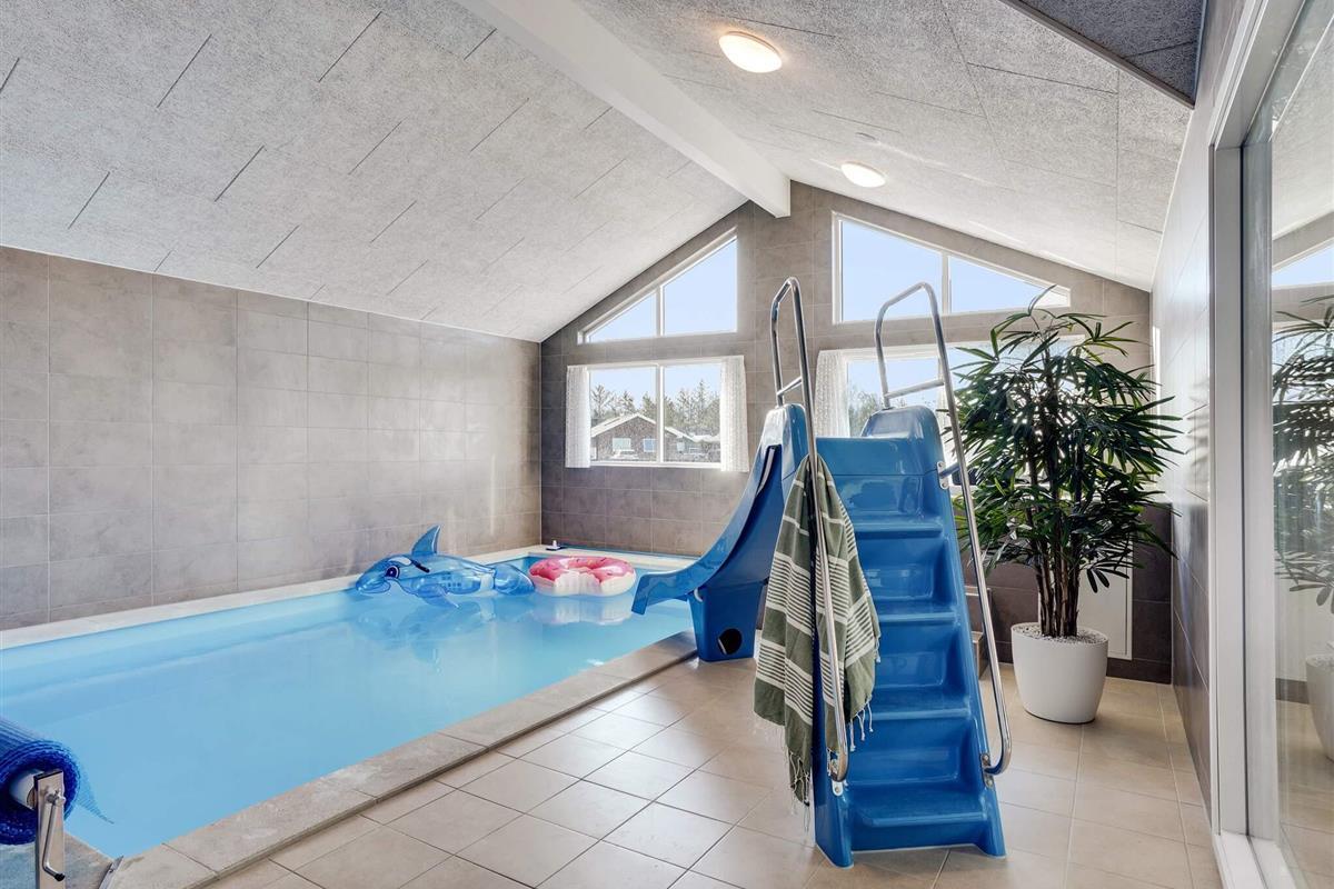 Das Ferienhaus verfügt über zwei verschiedene Aktivitätsbereiche, die zu jeder Jahreszeit für viel Lachen und strahlende Gesichter sorgen. Das Ferienhaus bietet einen eigenen Poolbereich mit einem 18 m² großen Schwimmbecken, einer Sauna und einem Whirlpool für 4–6 Personen. Der Pool verfügt über eine Wasserrutsche und eine Gegenstromanlage und ist garantiert ein Hit für Kinder.