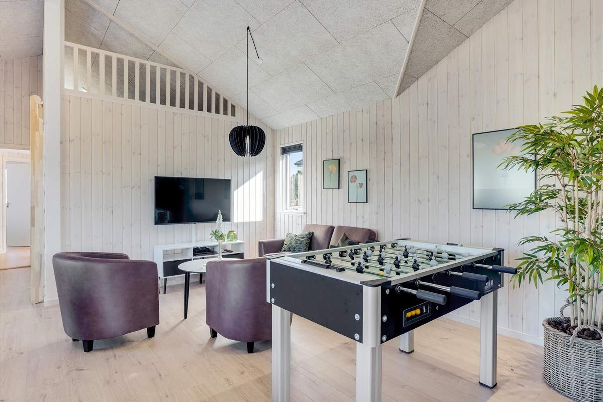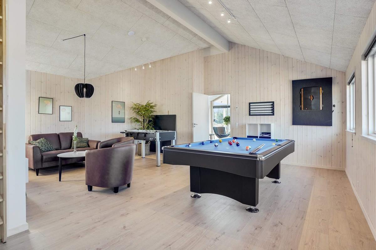 Darüber hinaus steht Ihnen ein großer Aktivitäts- und Spielraum zur Verfügung. Hier können Sie Billard, Tischtennis, Tischfußball und Darts spielen. Wer lieber zuschaut, kann dies in der zimmereigenen Bar tun und eine kühle Erfrischung genießen. Im Sofabereich neben dem Fernseher finden Sie eine PlayStation 4, auf der Sie Spiele spielen (denken Sie daran, Ihre Spiele mitzubringen) oder einen guten Film ansehen können, wenn Sie entspannen möchten.