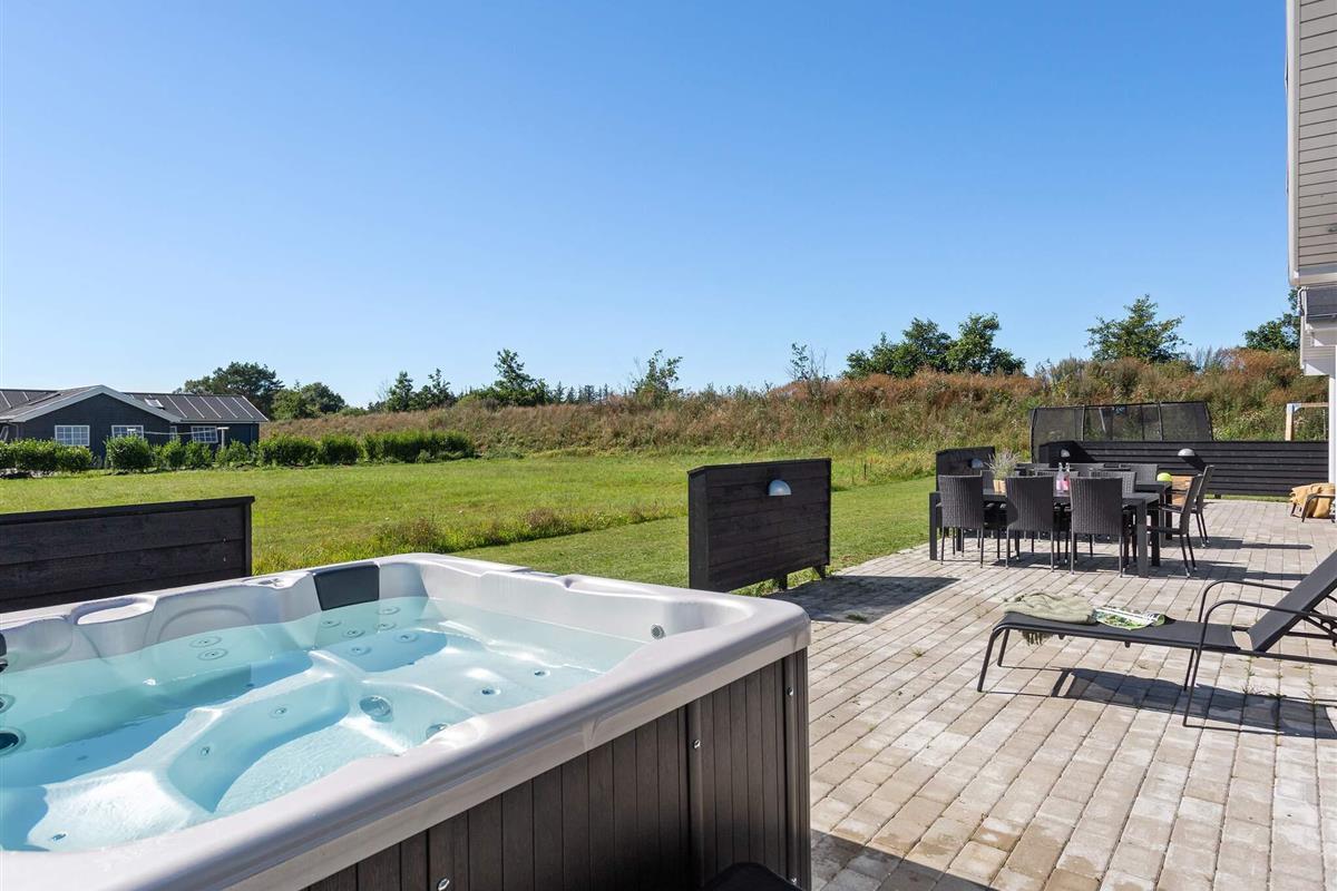 Das Badeerlebnis setzt sich im Freien fort: Auf der Terrasse befindet sich der beheizte Außen-Spa des Hauses. Hier können Sie Wellness und ein warmes Bad genießen.