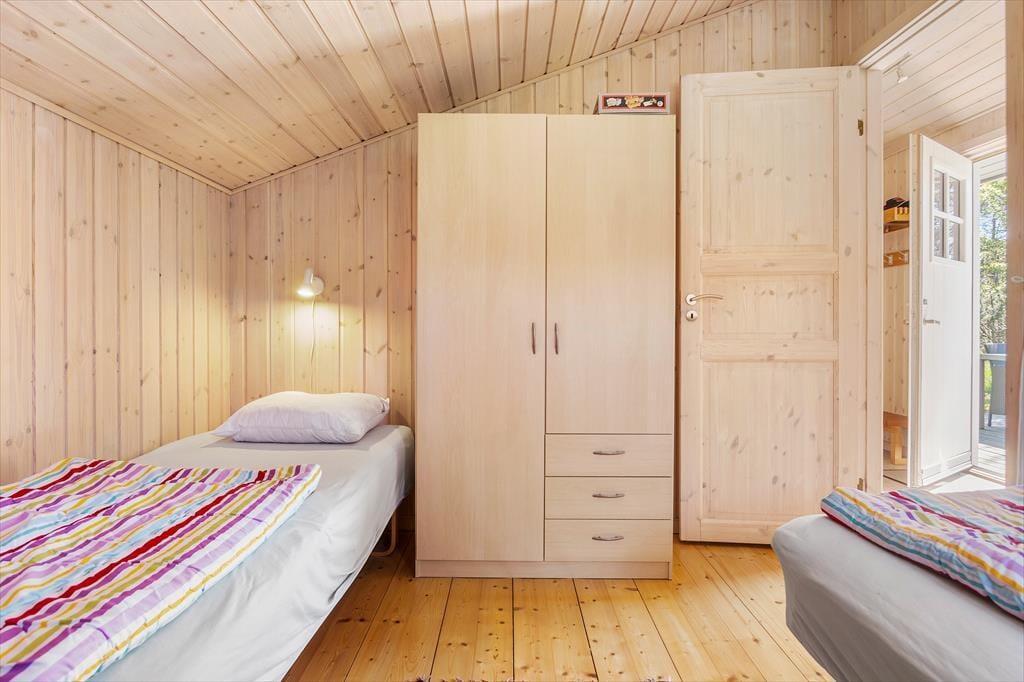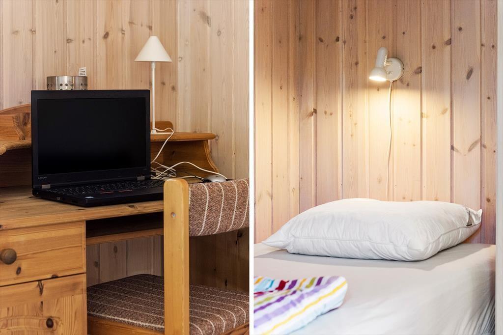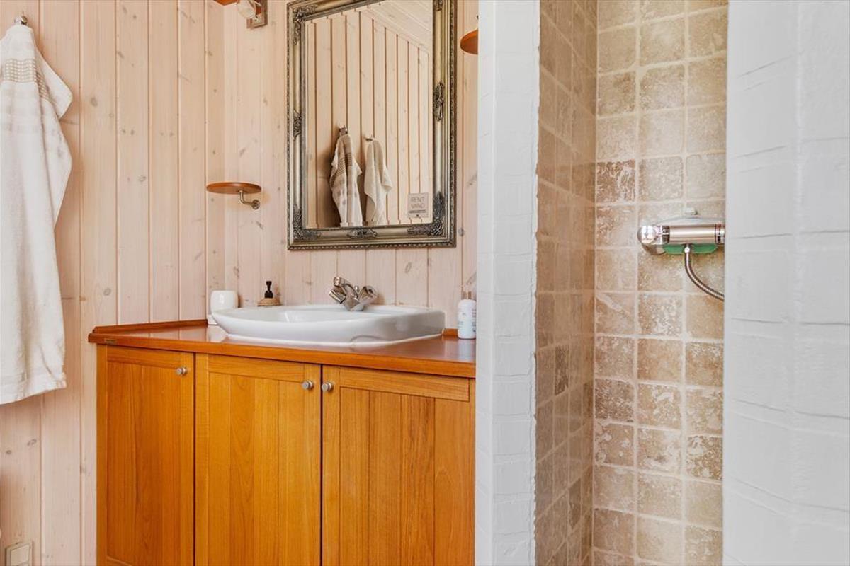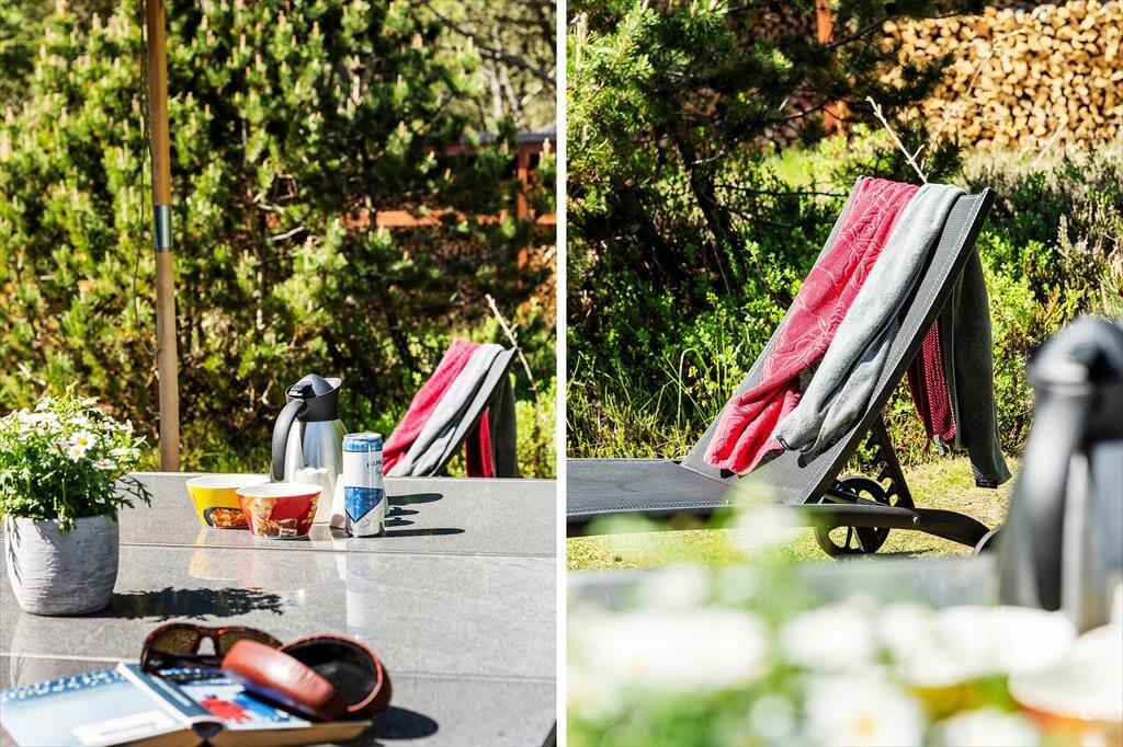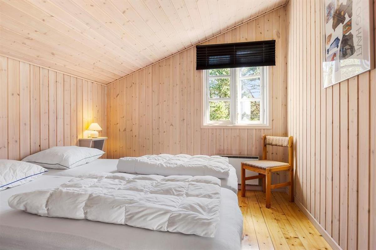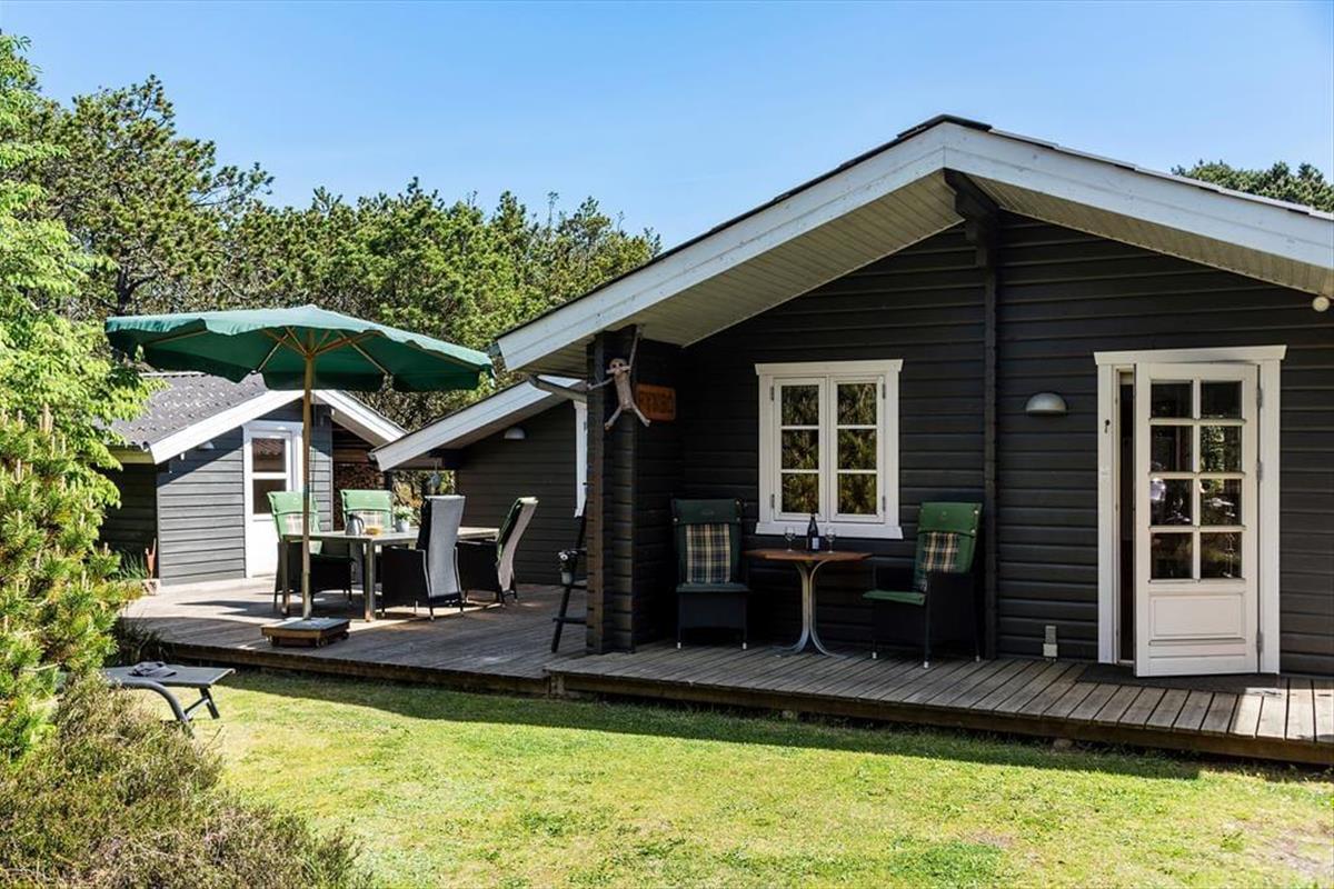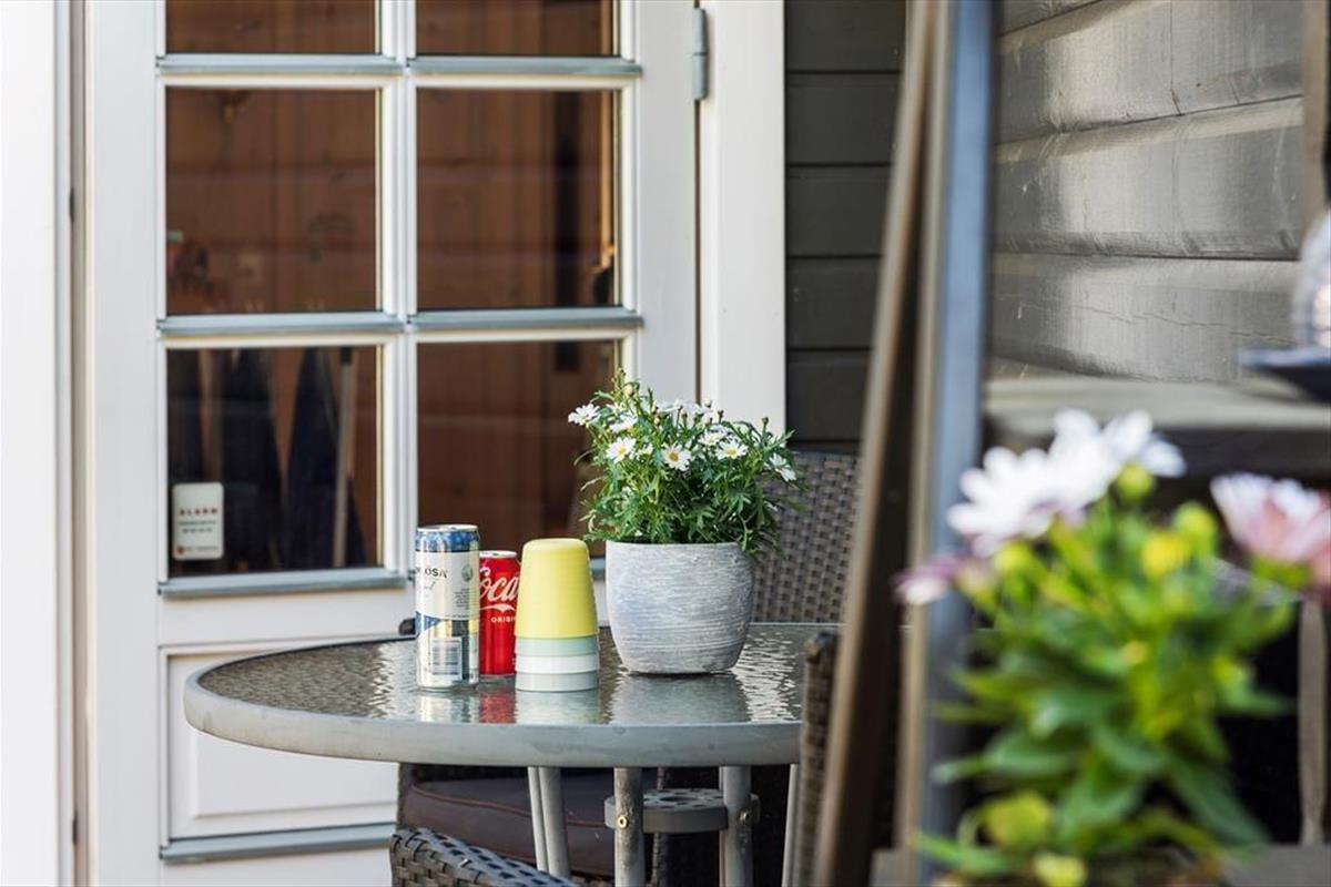 Das Haus liegt mitten in der Natur, und schon bei der Ankunft spürst du Ruhe und Frieden. Hier genießt du die klassisch-gemütliche Ferienhaus-Atmosphäre sowohl drinnen als auch draußen. Und vom schönen Wohnzimmer aus kannst du den Blick auf das viele Grün genießen. Der Aufenthaltsraum hat eine hohe Decke und helle Holzwände, die zusammen mit den schönen Sprossenfenstern zur hellen und angenehmen Atmosphäre beitragen. Vom Wohnzimmer aus gelangst du direkt auf die Terrasse, die mit einem gemütlichen Kamin ausgestattet ist. Die Küche ist im klassischen Ferienhausstil zum Wohnzimmer hin offen, sodass du kochen und trotzdem an den Gesprächen am Tisch teilnehmen kannst. Das Haus verfügt außerdem über zwei Schlafzimmer und ein Badezimmer.