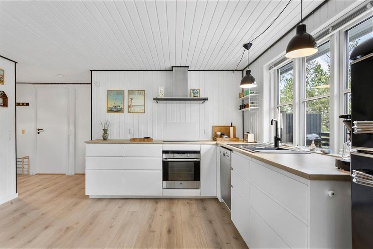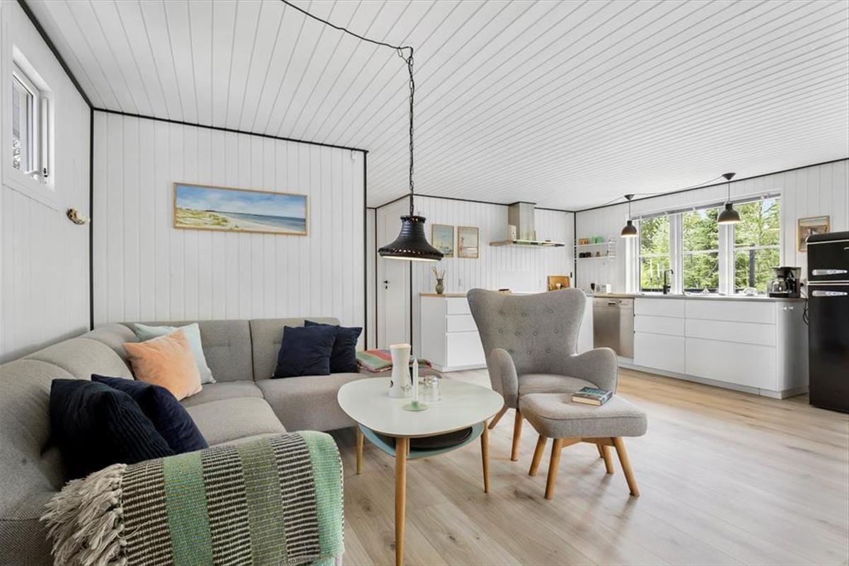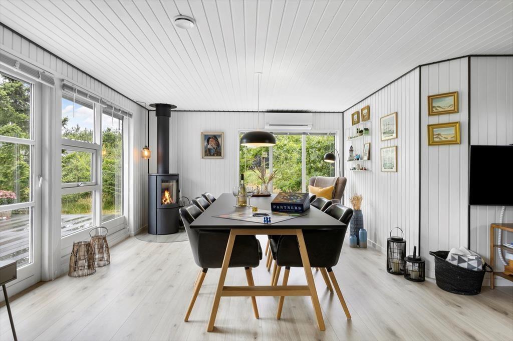 Lyngstien endet als Sackgasse, und am Ende der Straße führt ein Pfad durch die Dünenlandschaft direkt hinunter zum Kattegat und dem weißen Sandstrand. Das Wasser ist hier an der jütländischen Ostküste seicht, und sowohl Kinder als auch Erwachsene können sich darauf freuen, am Ufer zu spielen, zu planschen, zu baden und die Zeit zu genießen. Wenn du einen gemütlichen Spaziergang unternehmen möchtest, kannst du der Küste bis zum Hafen von Ålbæk folgen – vielleicht um ein Eis oder Mittagessen direkt an der Kaimauer zu genießen – und auch das Zentrum von Ålbæk ist leicht zu erreichen. In der Nähe des Ferienhauses befinden sich zudem der Tierpark Farm Fun und die Ålbæk Klitplantage, und in zehn Minuten erreichst du den nächsten Golfplatz, während Skagen nur 20 Minuten mit dem Auto entfernt ist.