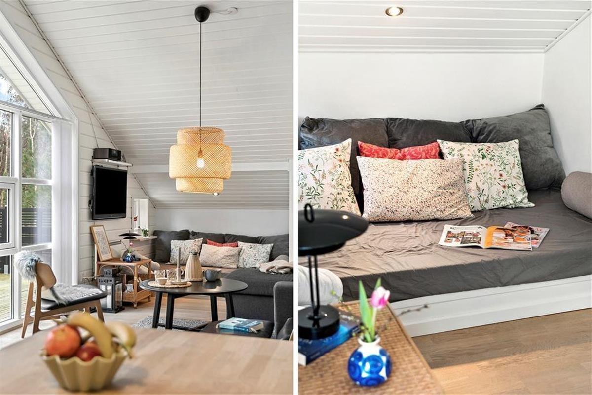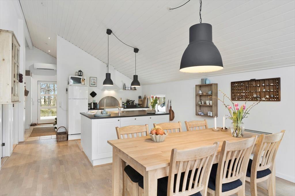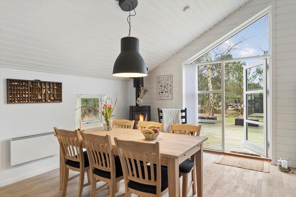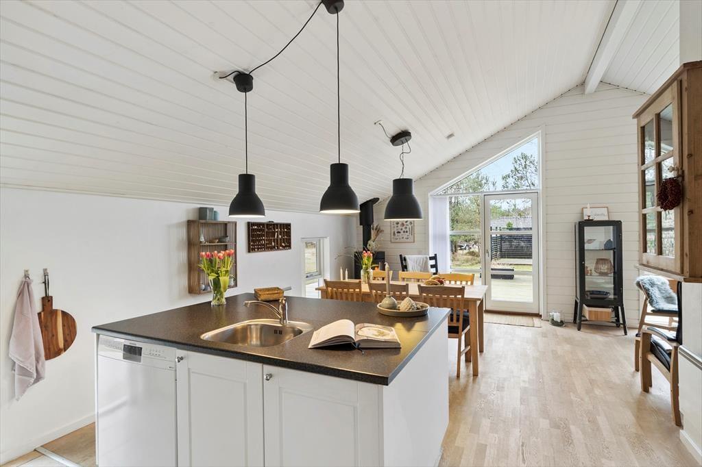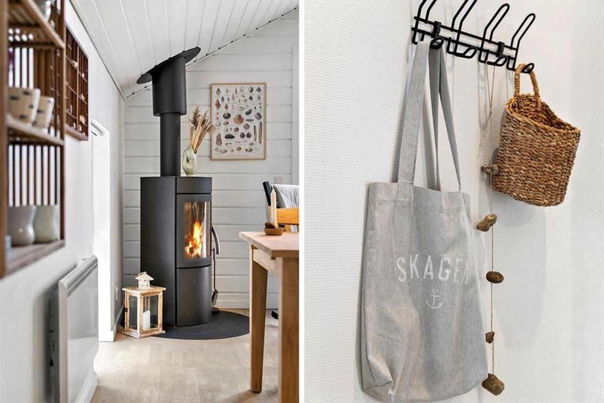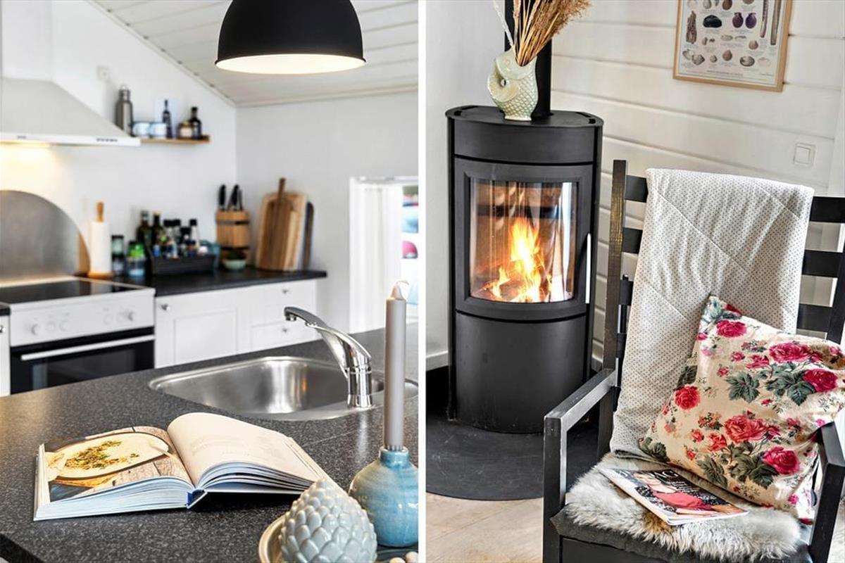 Treten Sie ein und lassen Sie sich von einem hellen und gemütlichen Interieur begrüßen, das Sie sofort willkommen heißt. Die weichen Möbel und die hellen Holzwände schaffen eine entspannte Atmosphäre, in der Sie wunderbar abschalten können. Das Wohnzimmer ist das Herz des Hauses, wo Sie mit Ihren Liebsten vor dem Kamin zusammensitzen können, der an kühleren Abenden Wärme und Behaglichkeit spendet. Die Küche ist offen in den Wohnbereich integriert, sodass Sie die Gesellschaft Ihrer Familie und Freunde genießen können, während Sie köstliche Ferienmahlzeiten zubereiten. Das Haus bietet Platz für bis zu sechs Personen, und die einladenden Schlafzimmer sorgen für eine erholsame Nachtruhe nach einem erlebnisreichen Tag.