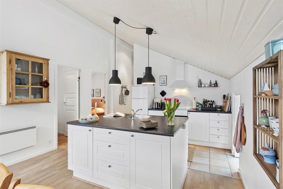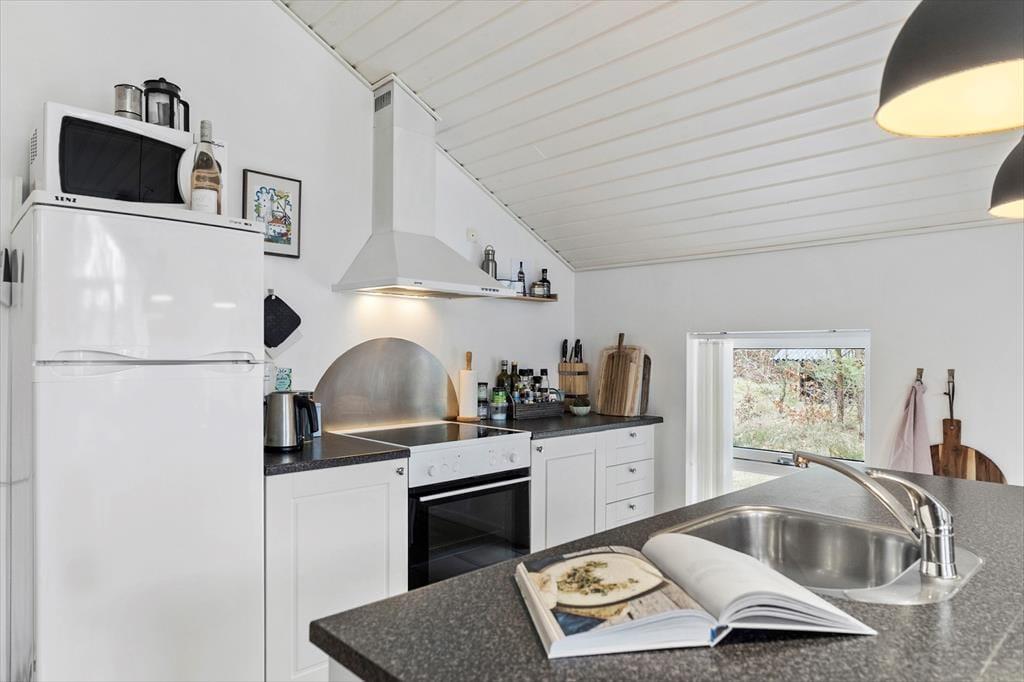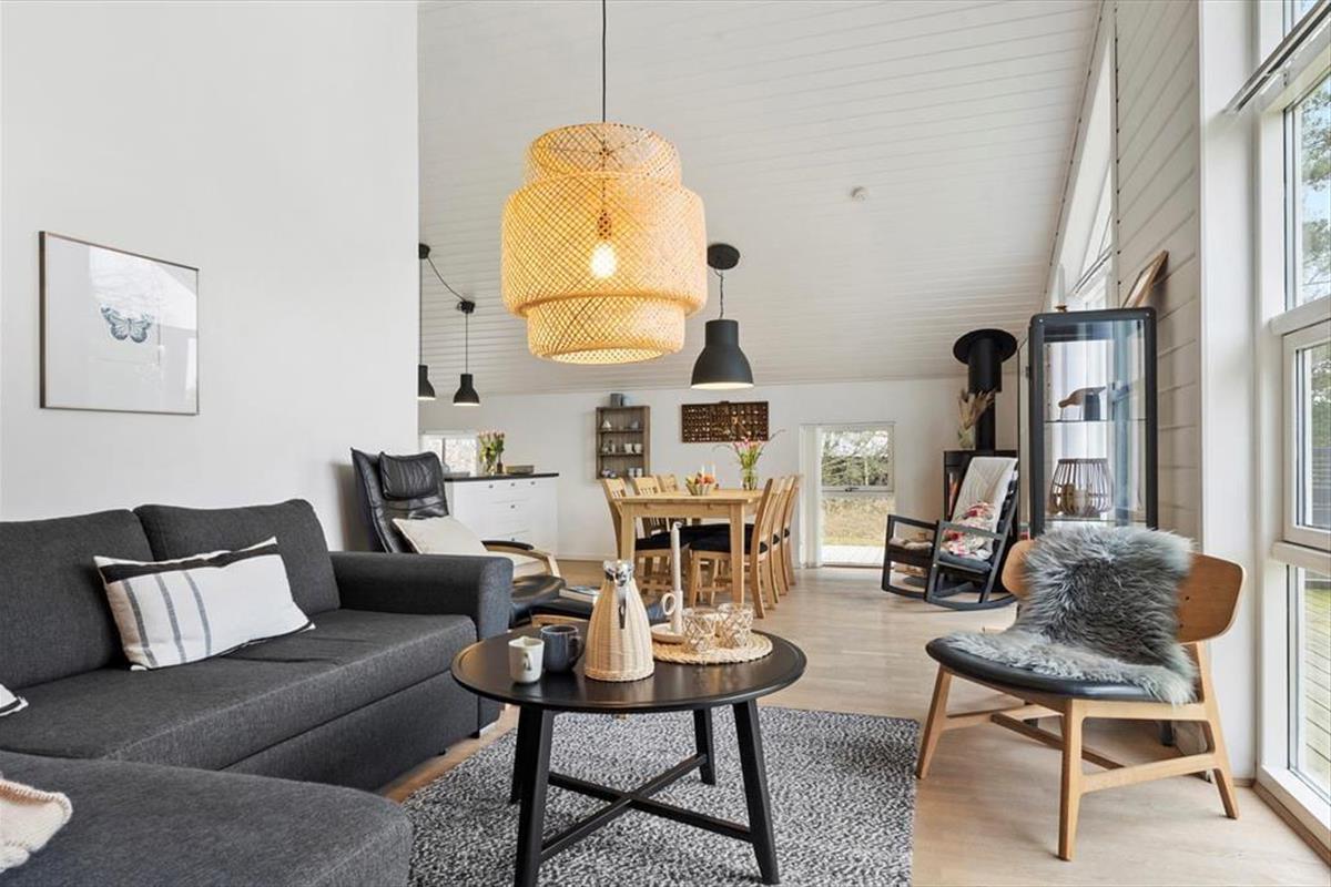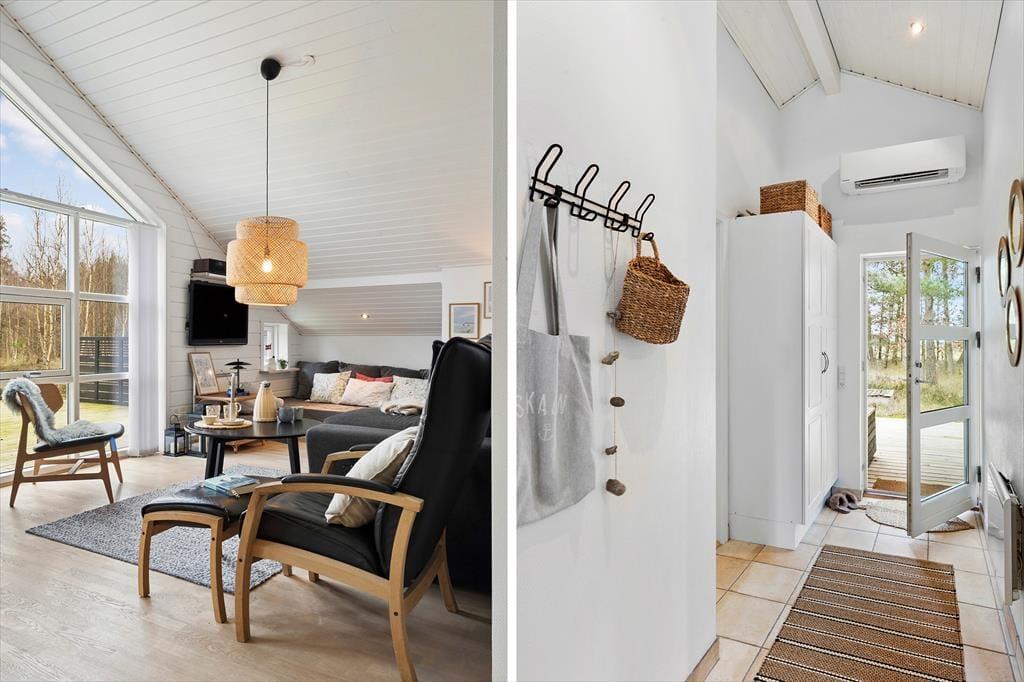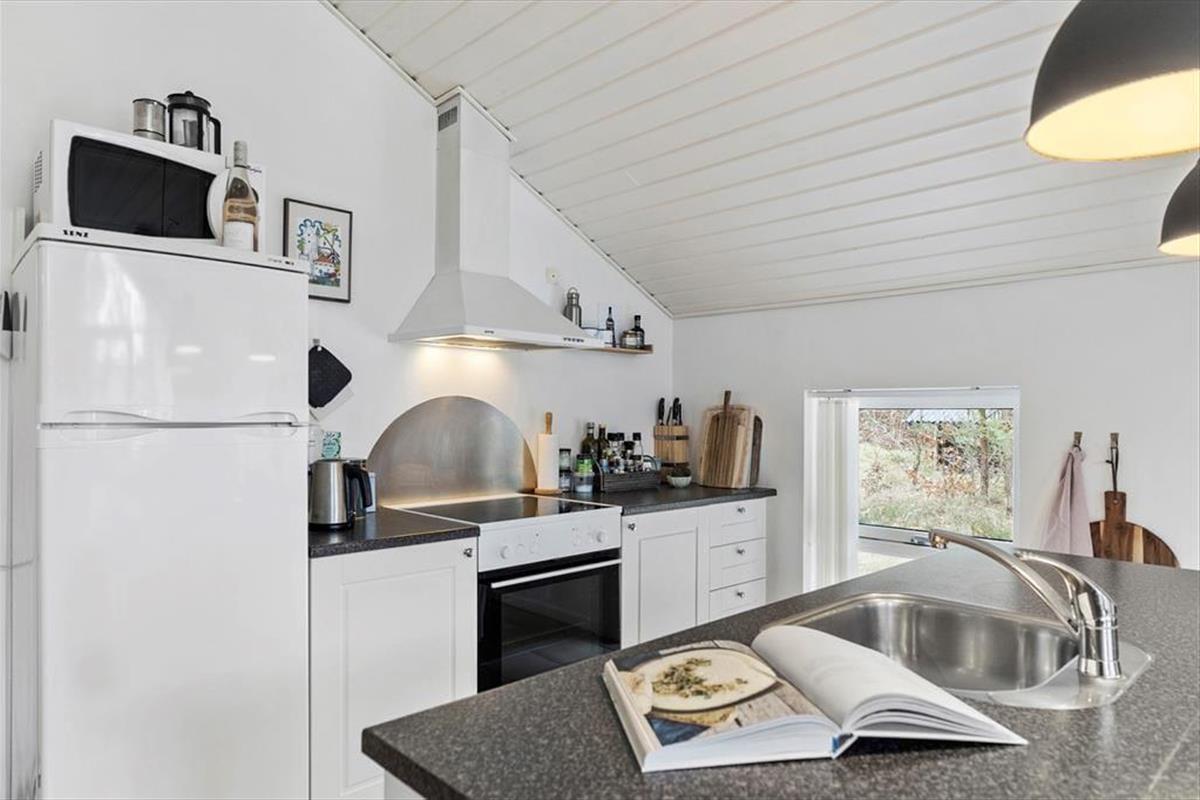 Treten Sie ein und lassen Sie sich von einem hellen und gemütlichen Interieur begrüßen, das Sie sofort willkommen heißt. Die weichen Möbel und die hellen Holzwände schaffen eine entspannte Atmosphäre, in der Sie wunderbar abschalten können. Das Wohnzimmer ist das Herz des Hauses, wo Sie mit Ihren Liebsten vor dem Kamin zusammensitzen können, der an kühleren Abenden Wärme und Behaglichkeit spendet. Die Küche ist offen in den Wohnbereich integriert, sodass Sie die Gesellschaft Ihrer Familie und Freunde genießen können, während Sie köstliche Ferienmahlzeiten zubereiten. Das Haus bietet Platz für bis zu sechs Personen, und die einladenden Schlafzimmer sorgen für eine erholsame Nachtruhe nach einem erlebnisreichen Tag.