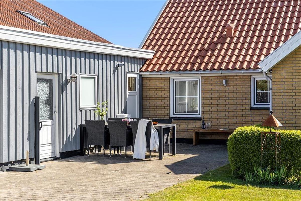 Die schöne Terrasse bietet die perfekten Bedingungen für entspannte und gemütliche Ferientage unter freiem Himmel. Hier kannst du deinen Morgenkaffee in der Sonne genießen, ein leckeres Abendessen mit deinen Liebsten teilen oder einfach nur die Ferienatmosphäre auf dich wirken lassen. Die Außenbereiche des Ferienhauses laden zu schönen Momenten im Freien ein – sei es beim Sonnenbaden oder bei einem Spaziergang in der malerischen Natur.