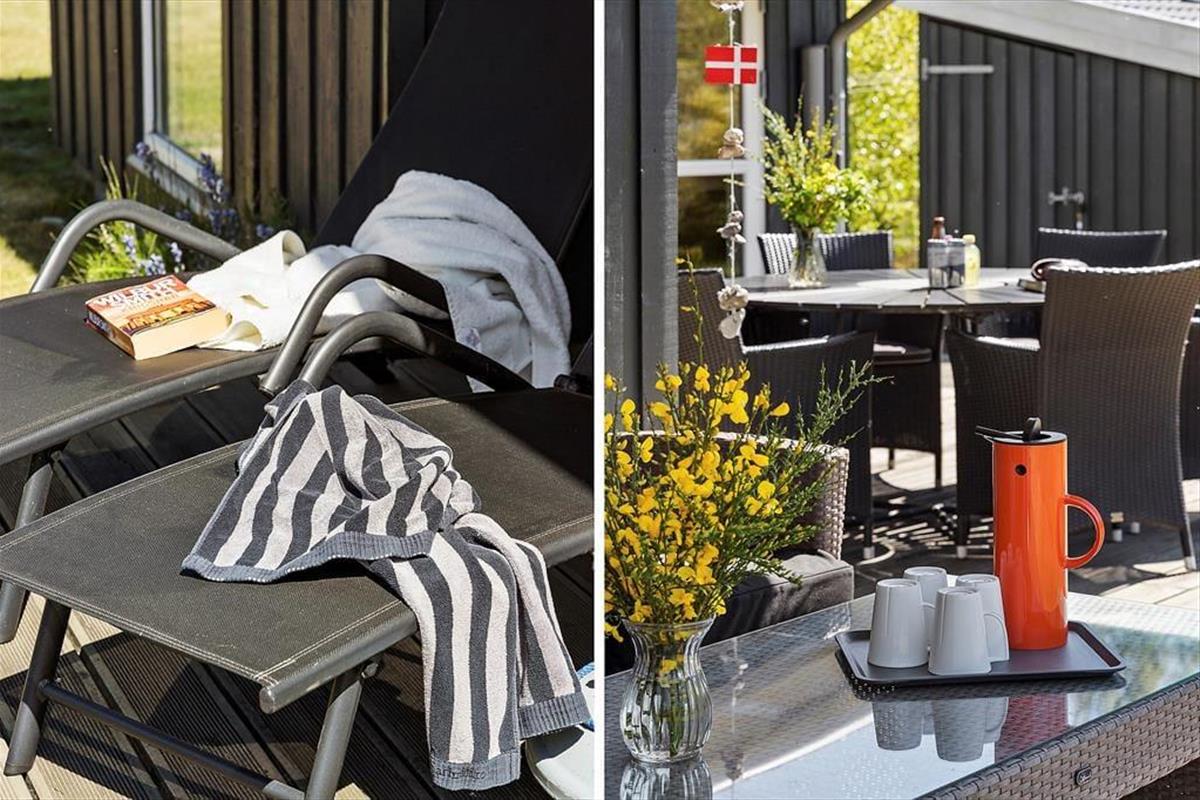 Die große Terrasse ist ein echtes Highlight – ein Teil davon ist überdacht und bietet gemütliche Plätze im Schatten oder bei etwas Wind. Auf dem Grundstück gibt es viele schöne Ecken, in denen ihr es euch mit einem Buch oder einem kühlen Getränk bequem machen könnt. Kinder können auf der Wiese spielen, während die Erwachsenen den Grill anwerfen oder in der Abendsonne entspannen. Und vielleicht hört ihr dabei das Rascheln der Bäume oder das Zwitschern der Vögel – die Natur ist hier immer ganz nah.