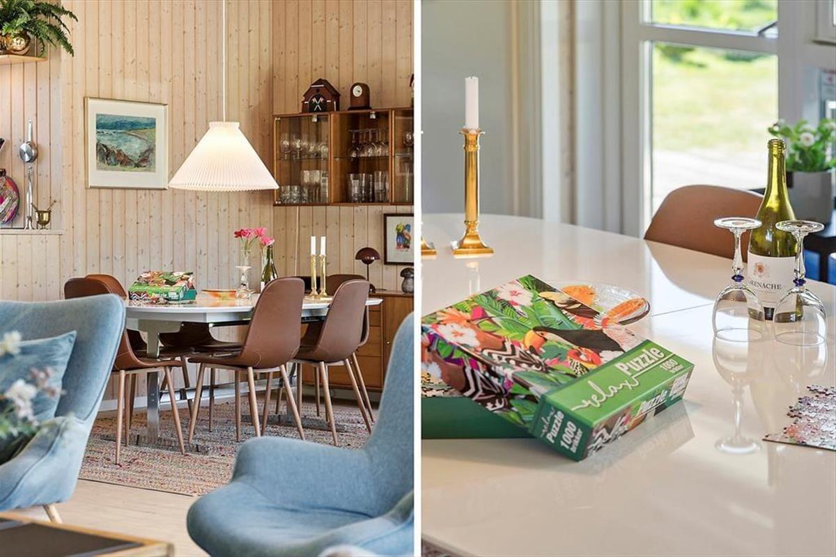 Das Haus heißt euch mit einer warmen, hellen und einladenden Atmosphäre willkommen. Dank der großen Fenster strömt das Tageslicht ins Innere und verbindet drinnen mit draußen. Die helle Einrichtung, die charmanten Holzwände und die liebevolle Gestaltung sorgen für eine behagliche Ferienhausstimmung, in der sich Paare wie Familien sofort wohlfühlen. Zwei Badezimmer machen das Haus besonders familienfreundlich – kein morgendliches Warten mehr. Die offene Wohnküche lädt zu gemeinsamer Zeit ein, sei es beim Kochen, Spielen oder einfach beim gemütlichen Beisammensein.