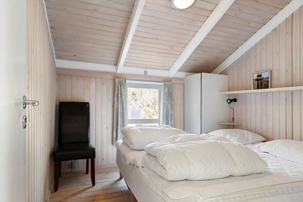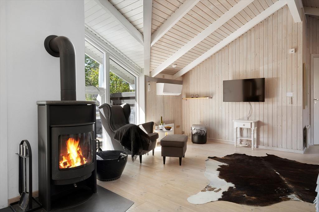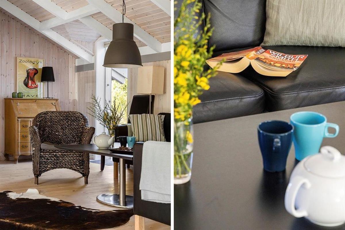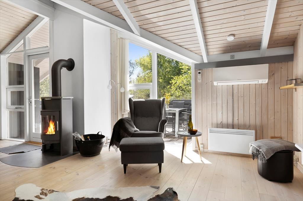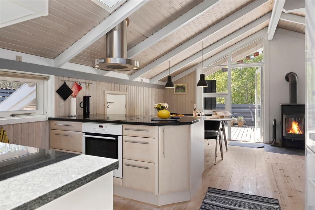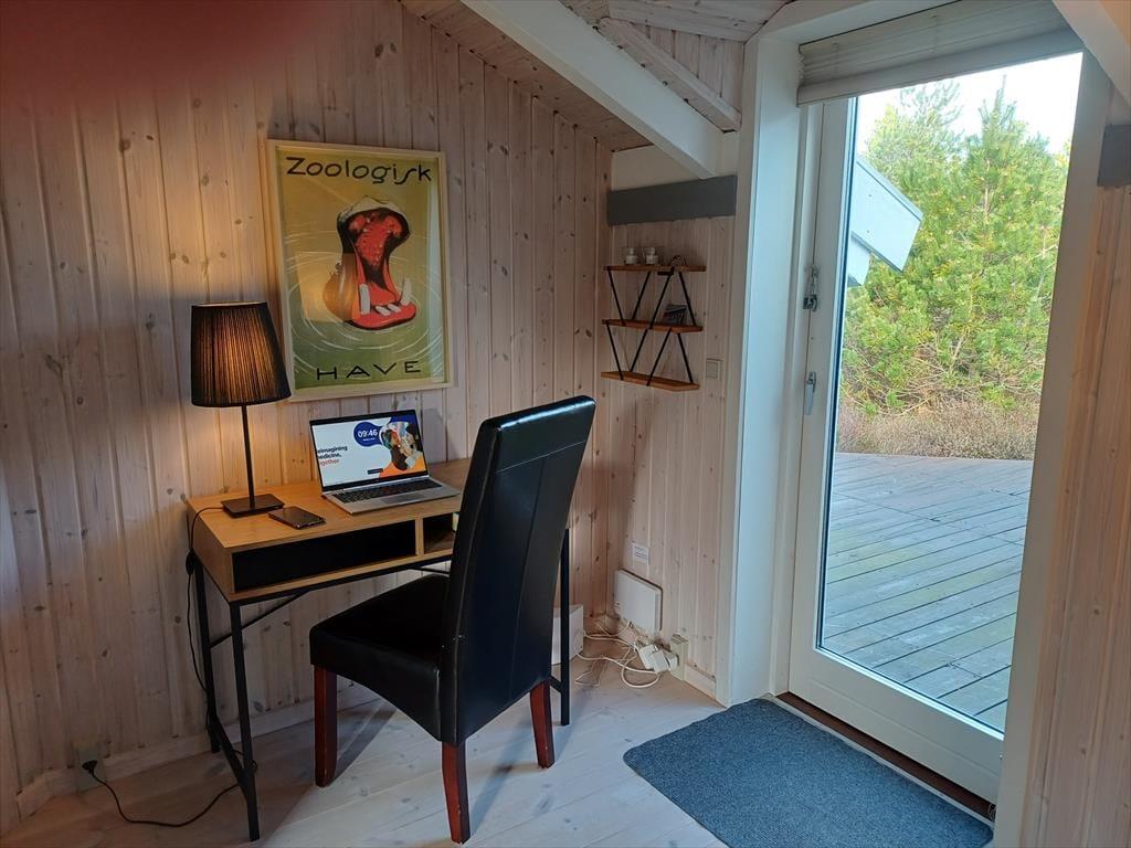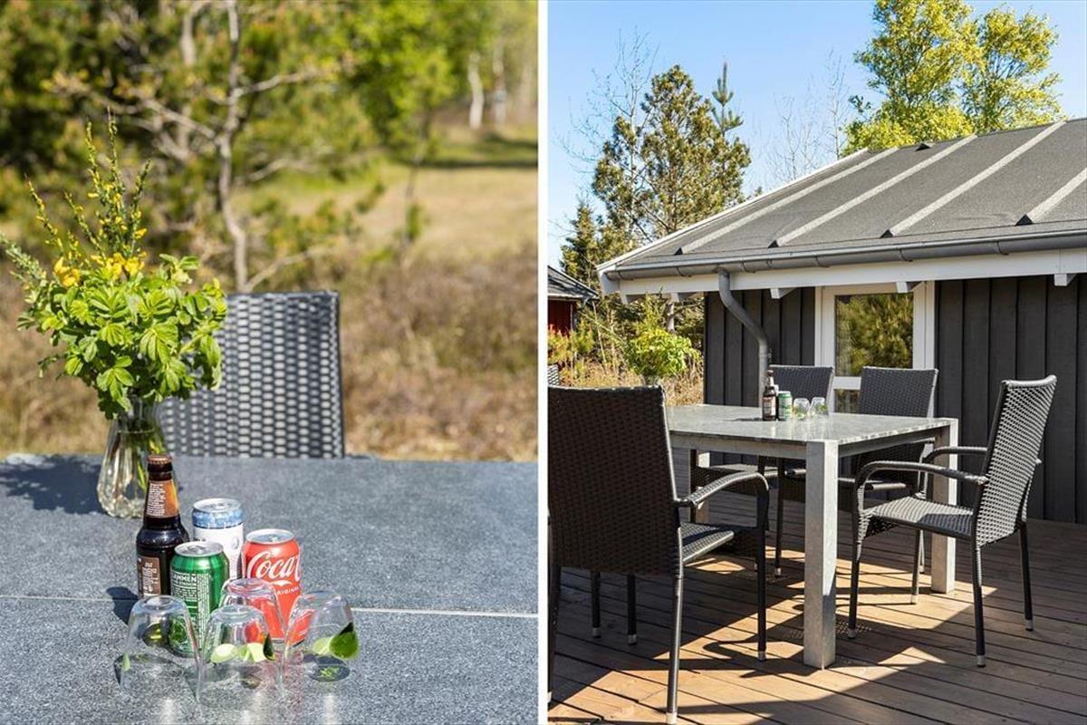 Die große Holzterrasse, die sich rund ums Haus zieht, ist ein echtes Highlight. Mehrere windgeschützte Ecken und sonnige Plätze bieten die perfekte Kulisse für entspannte Ferientage – sei es beim Morgenkaffee, einem Mittagsschläfchen in der Hängematte oder beim Grillabend unter dem nordjütländischen Sternenhimmel. Die grüne Bepflanzung sorgt für Privatsphäre und eine friedliche Atmosphäre, während der großzügige Außenbereich sowohl Rückzug als auch Geselligkeit ermöglicht. Hier können Sie das Leben unter freiem Himmel in vollen Zügen genießen.