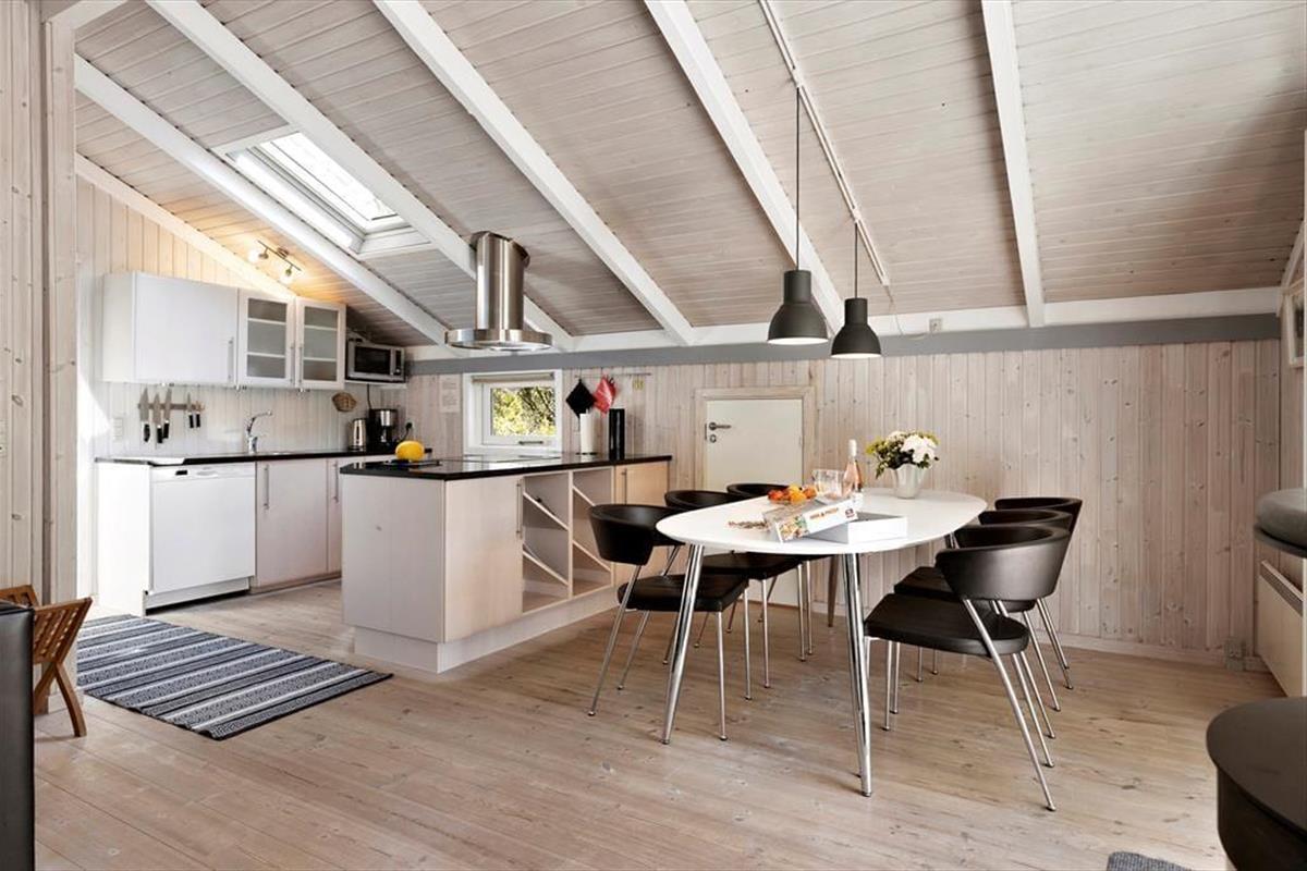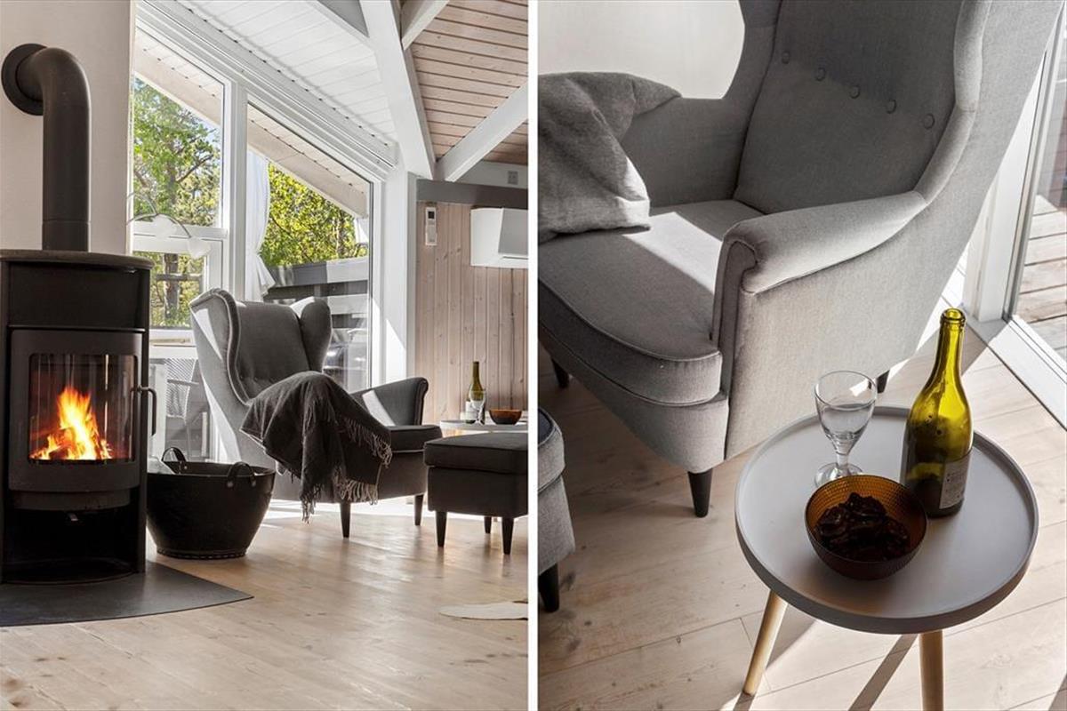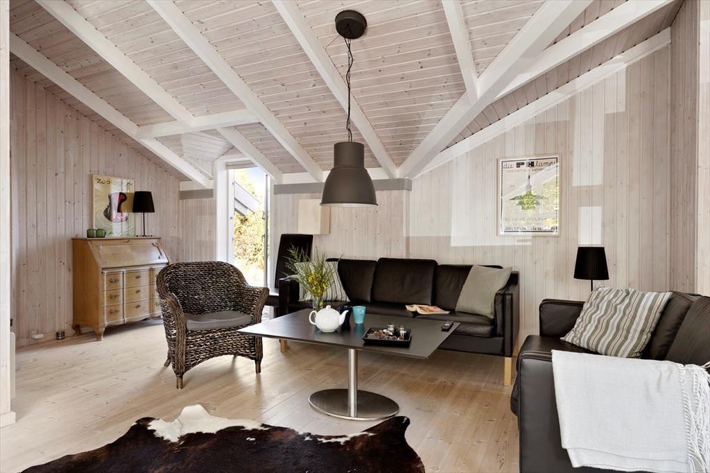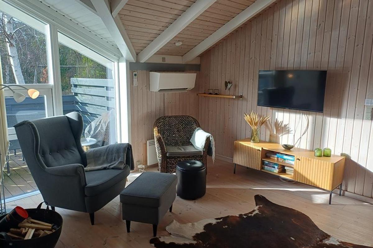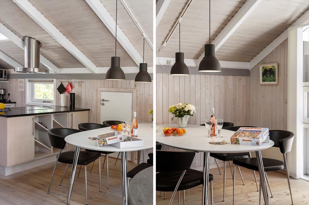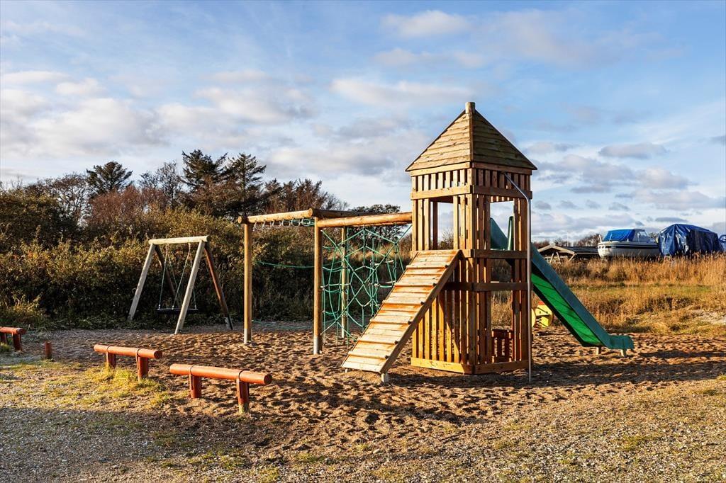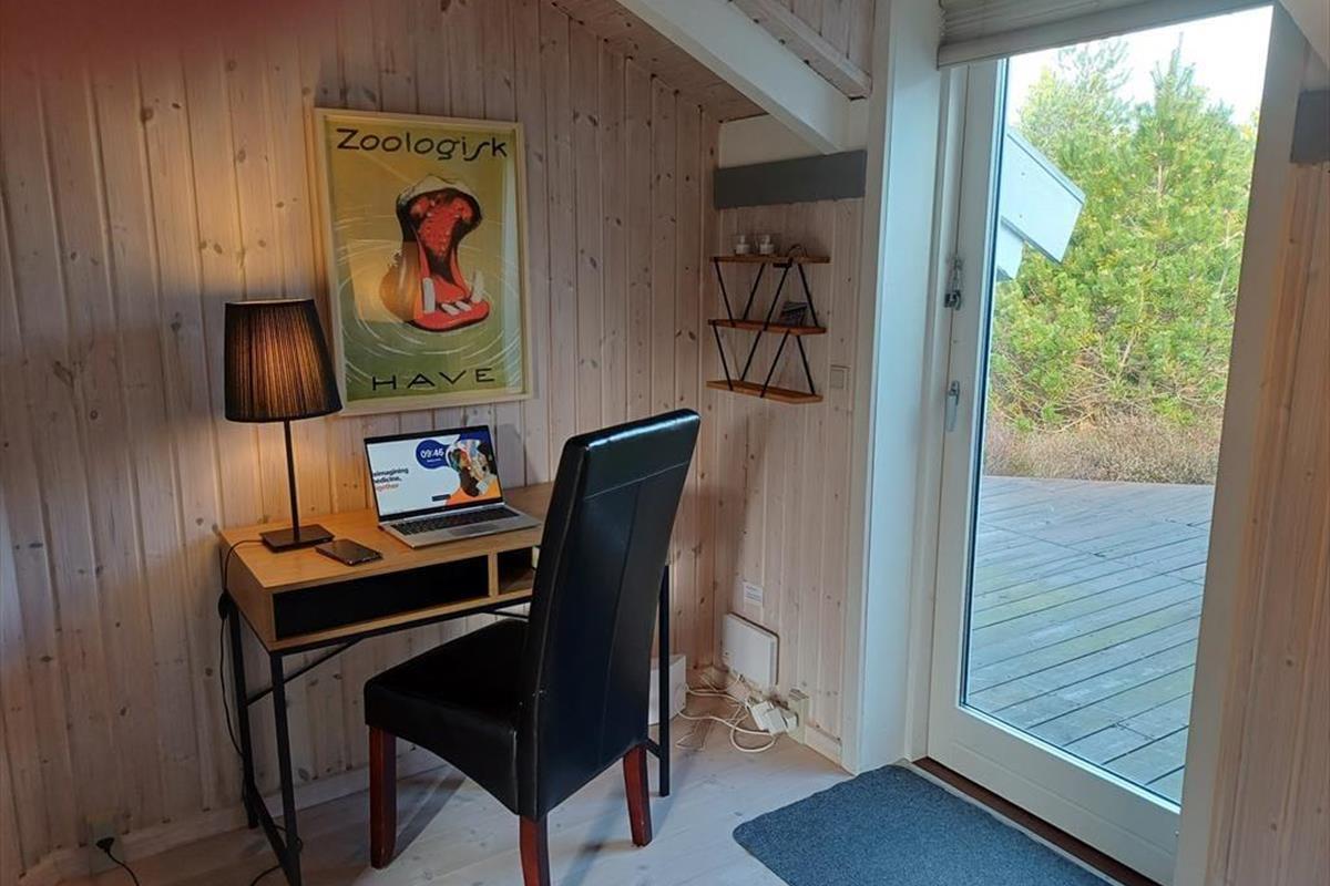 Die große Holzterrasse, die sich rund ums Haus zieht, ist ein echtes Highlight. Mehrere windgeschützte Ecken und sonnige Plätze bieten die perfekte Kulisse für entspannte Ferientage – sei es beim Morgenkaffee, einem Mittagsschläfchen in der Hängematte oder beim Grillabend unter dem nordjütländischen Sternenhimmel. Die grüne Bepflanzung sorgt für Privatsphäre und eine friedliche Atmosphäre, während der großzügige Außenbereich sowohl Rückzug als auch Geselligkeit ermöglicht. Hier können Sie das Leben unter freiem Himmel in vollen Zügen genießen.