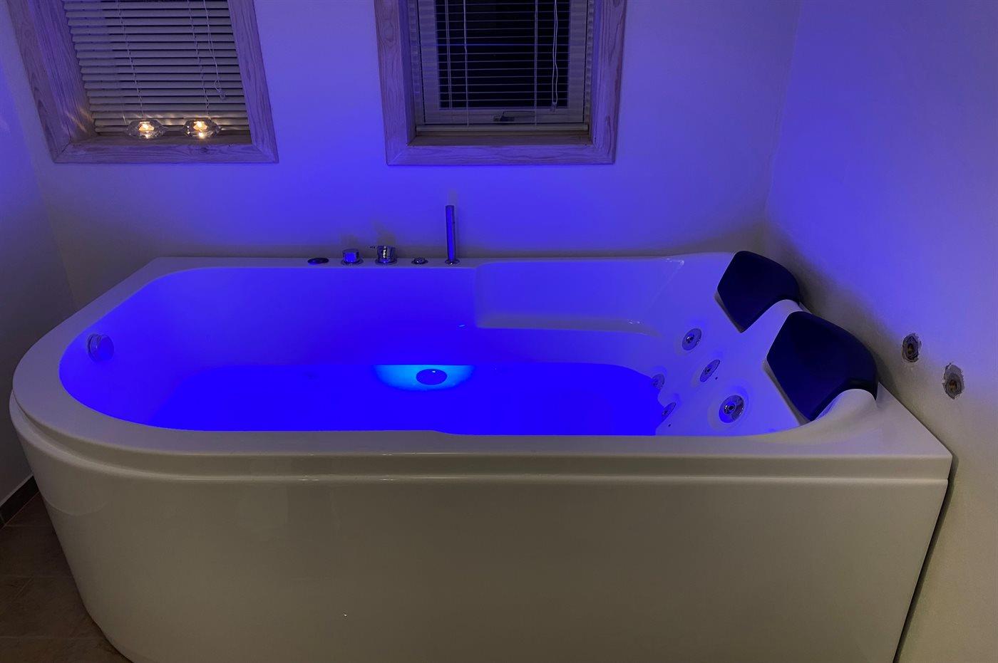 Het binnenbubbelbad (vulwater) biedt ontspanning aan 2 personen.