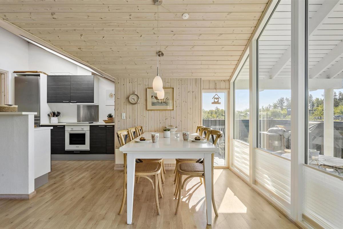 Reis naar het noorden van Denemarken en verblijf in dit aangename en klassieke vakantiehuis. Het lichtgekleurde hout en de grote ramen nodigen je uit om te blijven hangen in de grote woonkamer. Klets met de hobbykoks in de keuken terwijl jij ontspant op de bank en de kinderen spelen aan de eettafel.