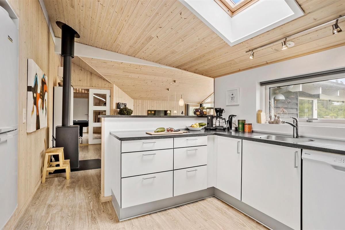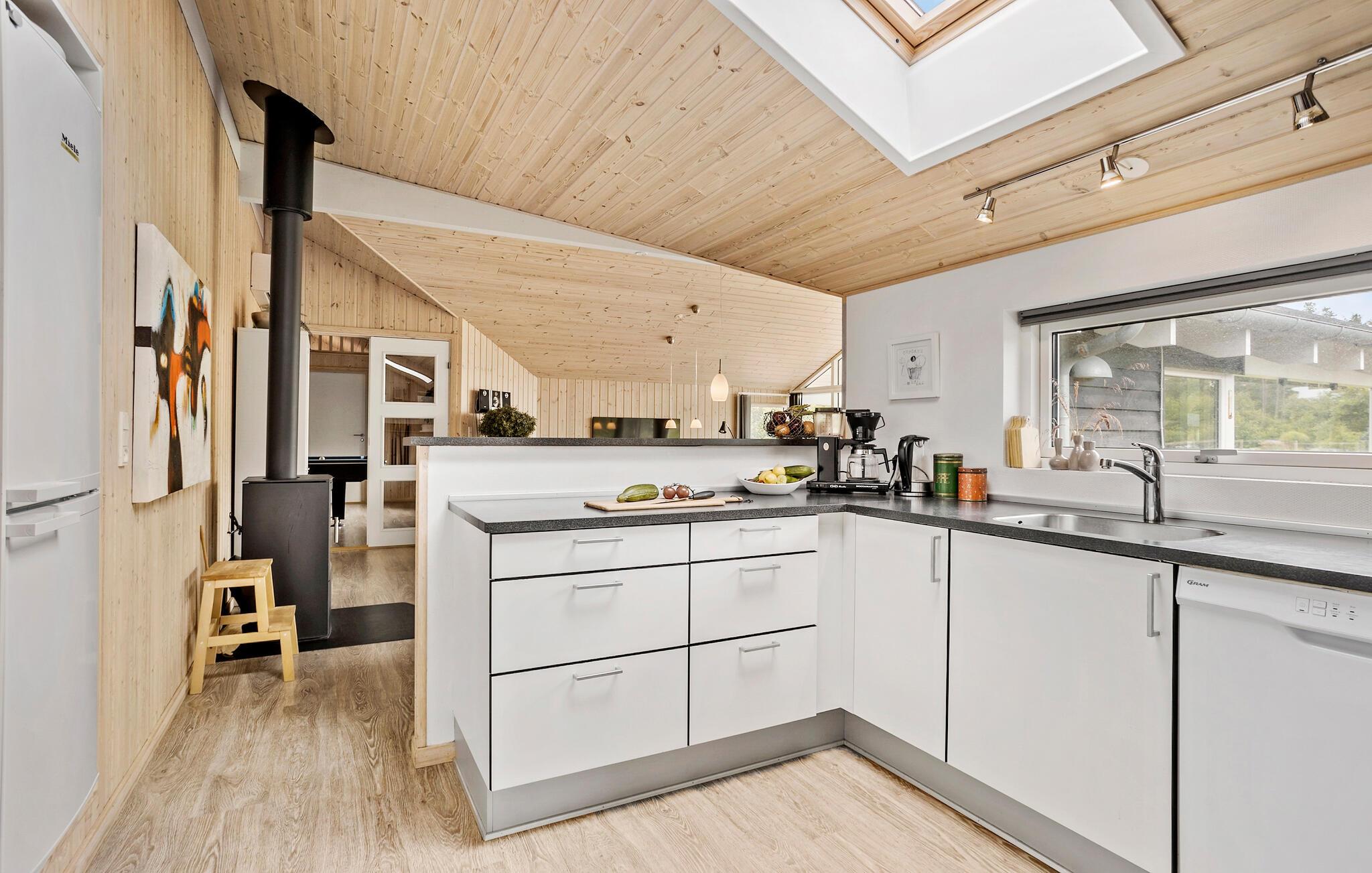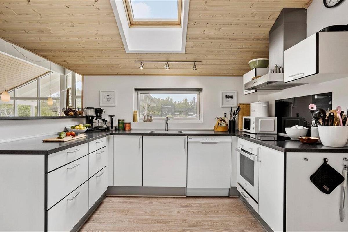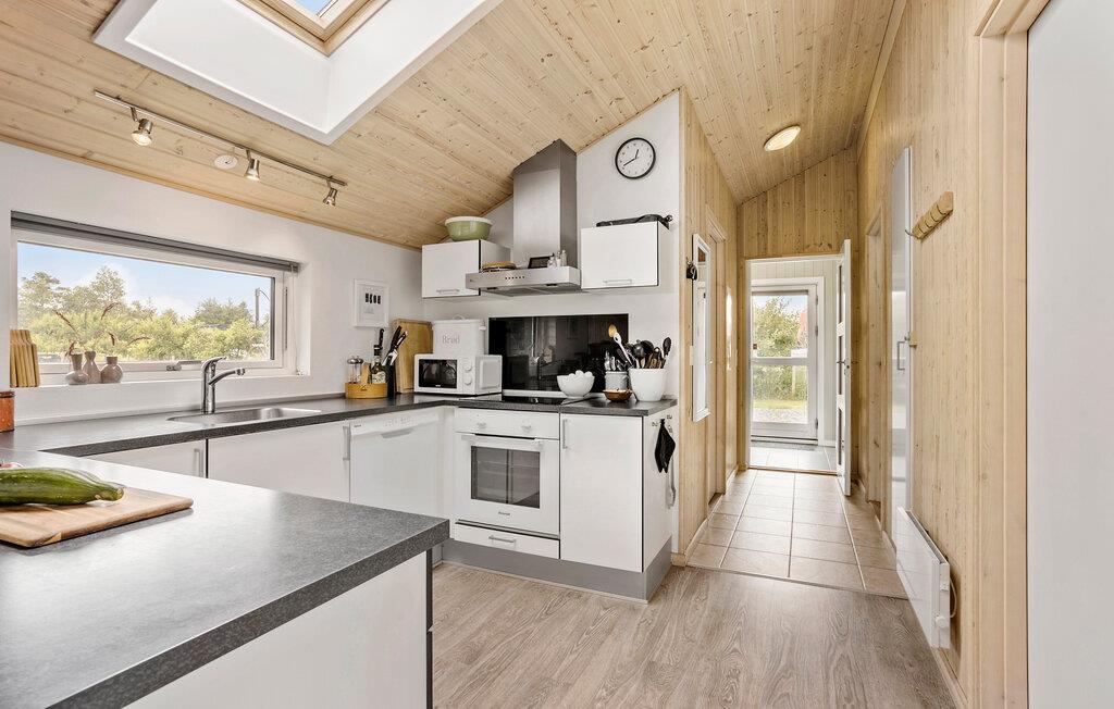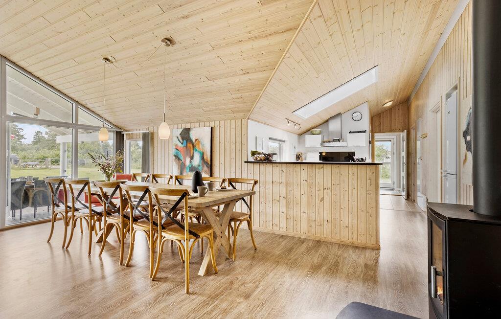 Welkom in je vakantiehuis in het noorden van Jutland. Begin de dag met een heerlijk familieontbijt en verheug je op de dag die voor je ligt tijdens je vakantie aan de baai van Ålbæk. Aan de eettafel naast de open keuken maak je vast de eerste plannen voor de activiteiten van de dag. In de gezellige woonkamer met uitzicht op de tuin kun je ontspannen en schilderijen maken of spelletjes spelen met je kinderen.