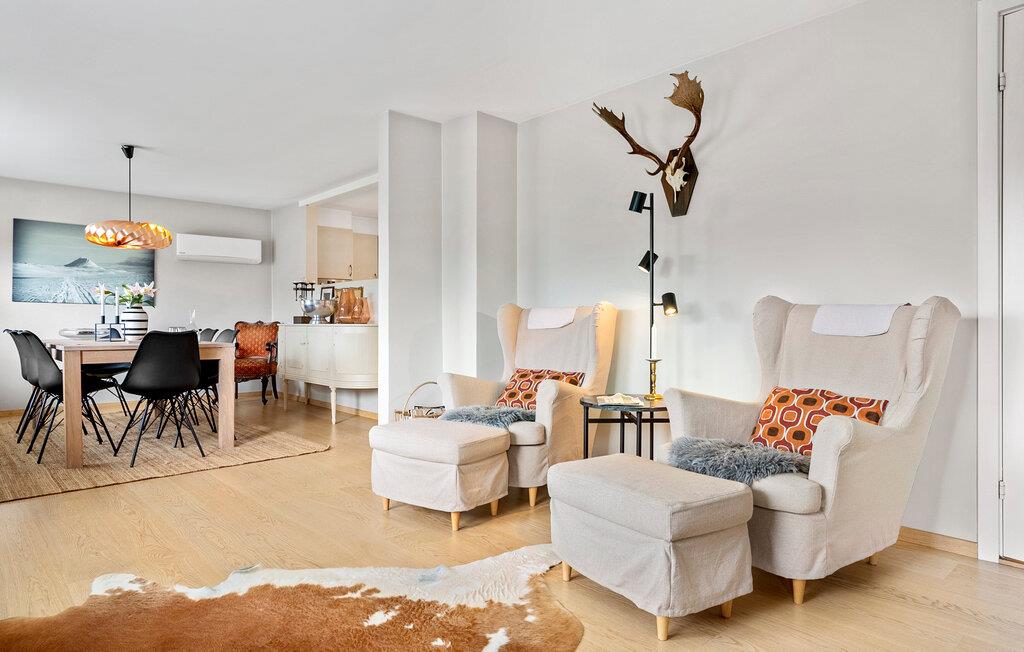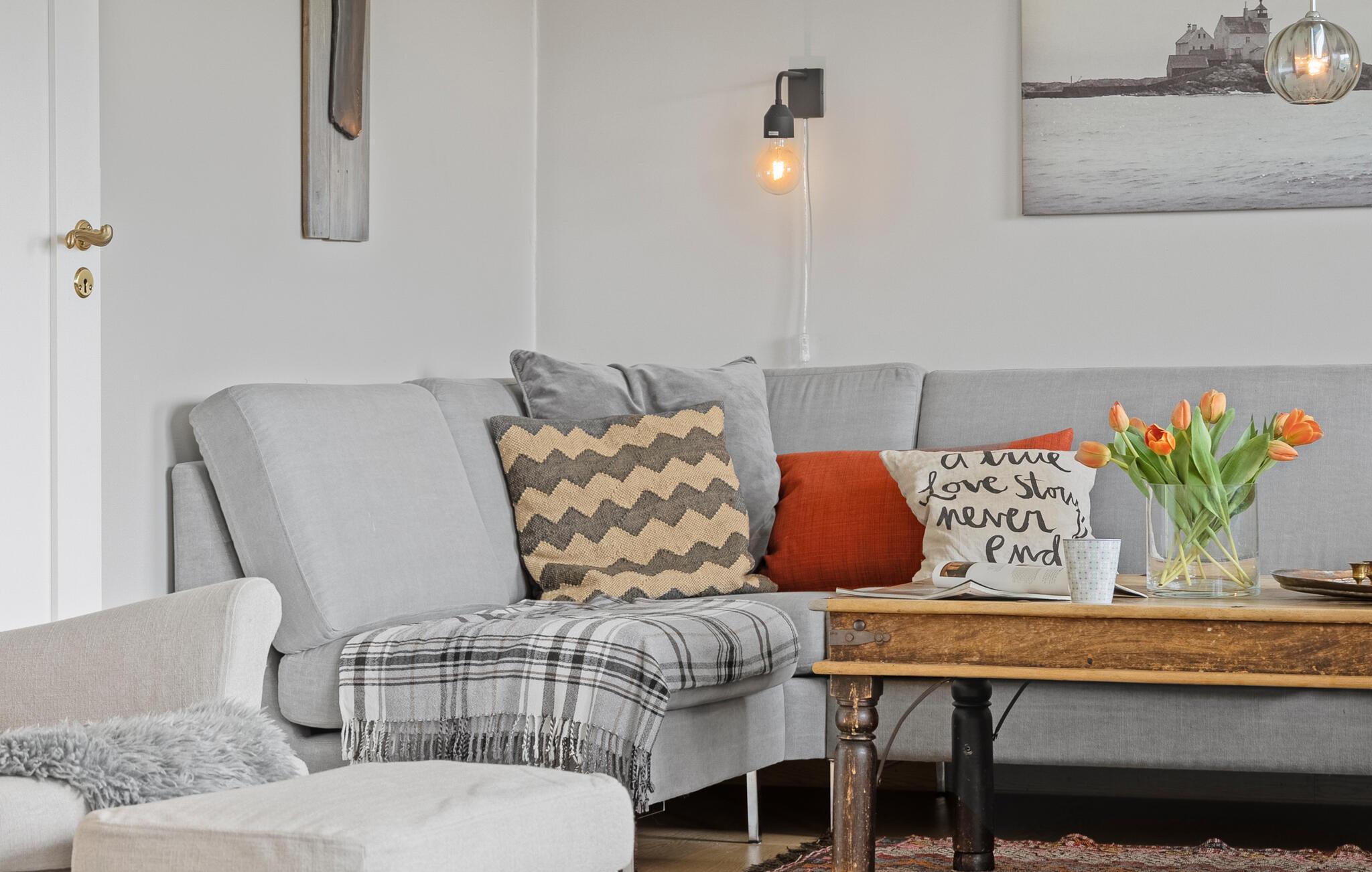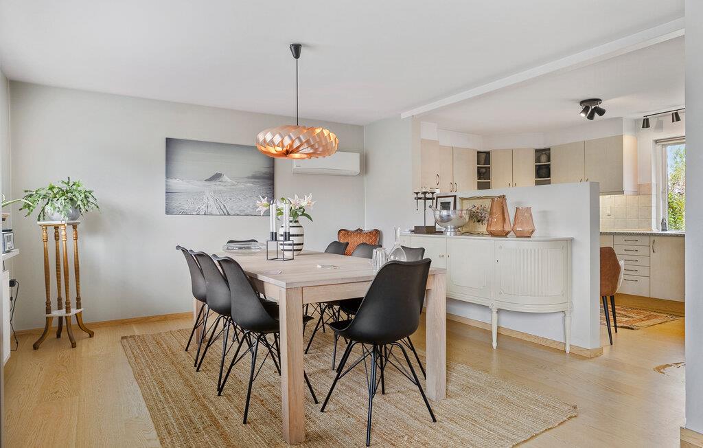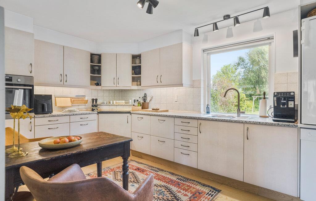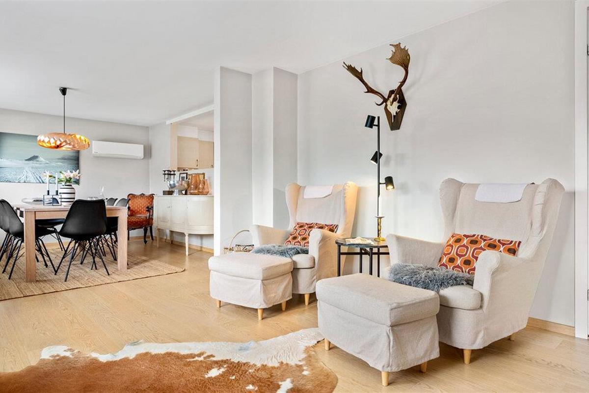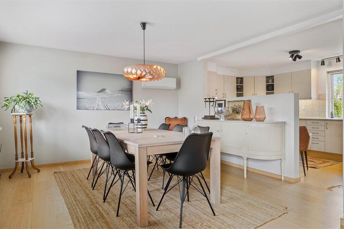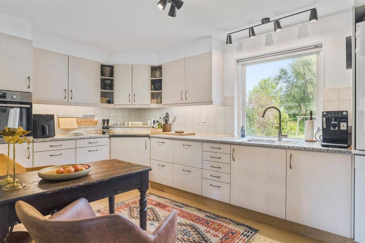 Stap binnen in de lichte woonkamer, die is ingericht met een grote zithoek, comfortabele fauteuils en stijlvolle details. Sluit de dag af met een goed boek of een film of ontspan gewoon. Kook in de ruime, goed uitgeruste keuken met veel werkruimte en moderne apparatuur en geniet van je maaltijden in de aangrenzende eethoek.