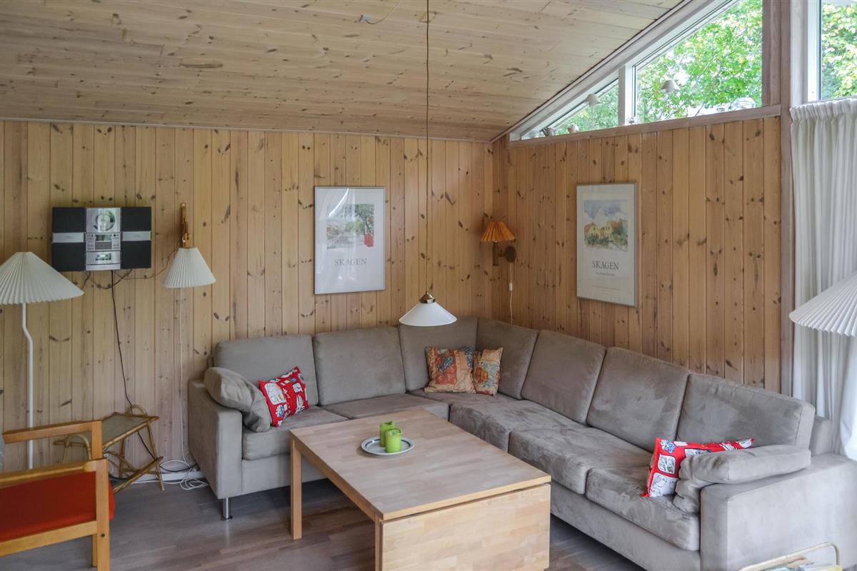 Dit mooie vakantiehuis ligt op een goed, afgelegen natuurgrondstuk, niet ver van het mooie strand en op loopafstand van het kleine vissersdorp Ålbæk. Het huis heeft twee badkamers - één met vloerverwarming, whirlpool en toegang tot de sauna. Vanuit zowel de hal als de gezellige woonkamer met houtkachel heeft u toegang tot grote, afgelegen terrassen waar u in alle rust kunt genieten van uw koffie en een goed boek.