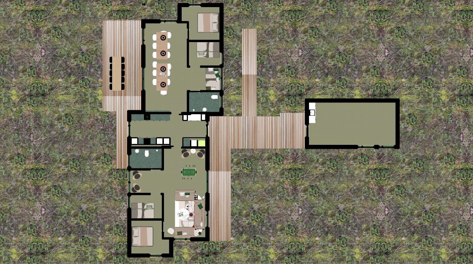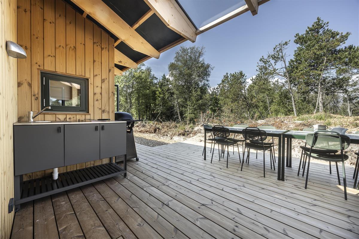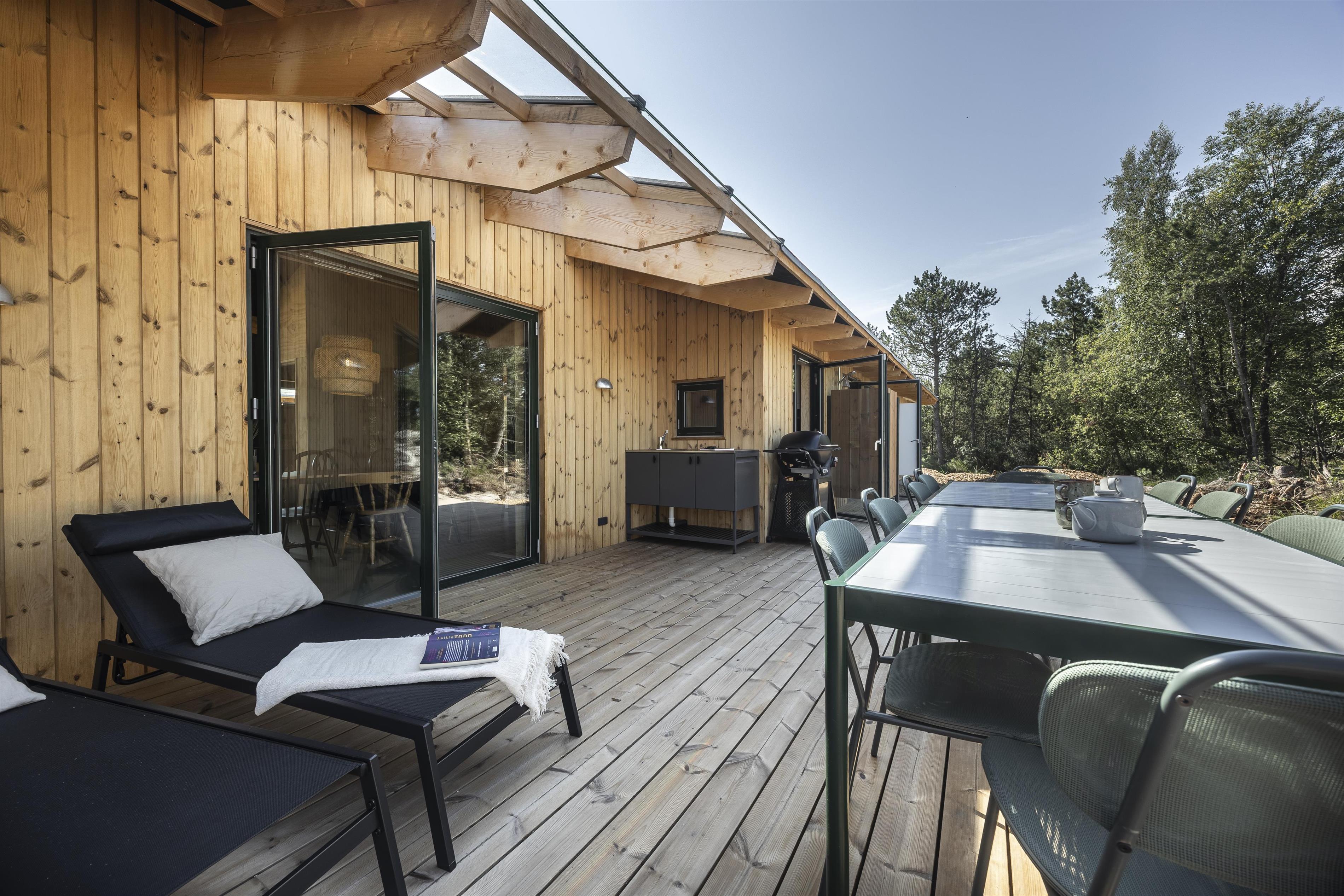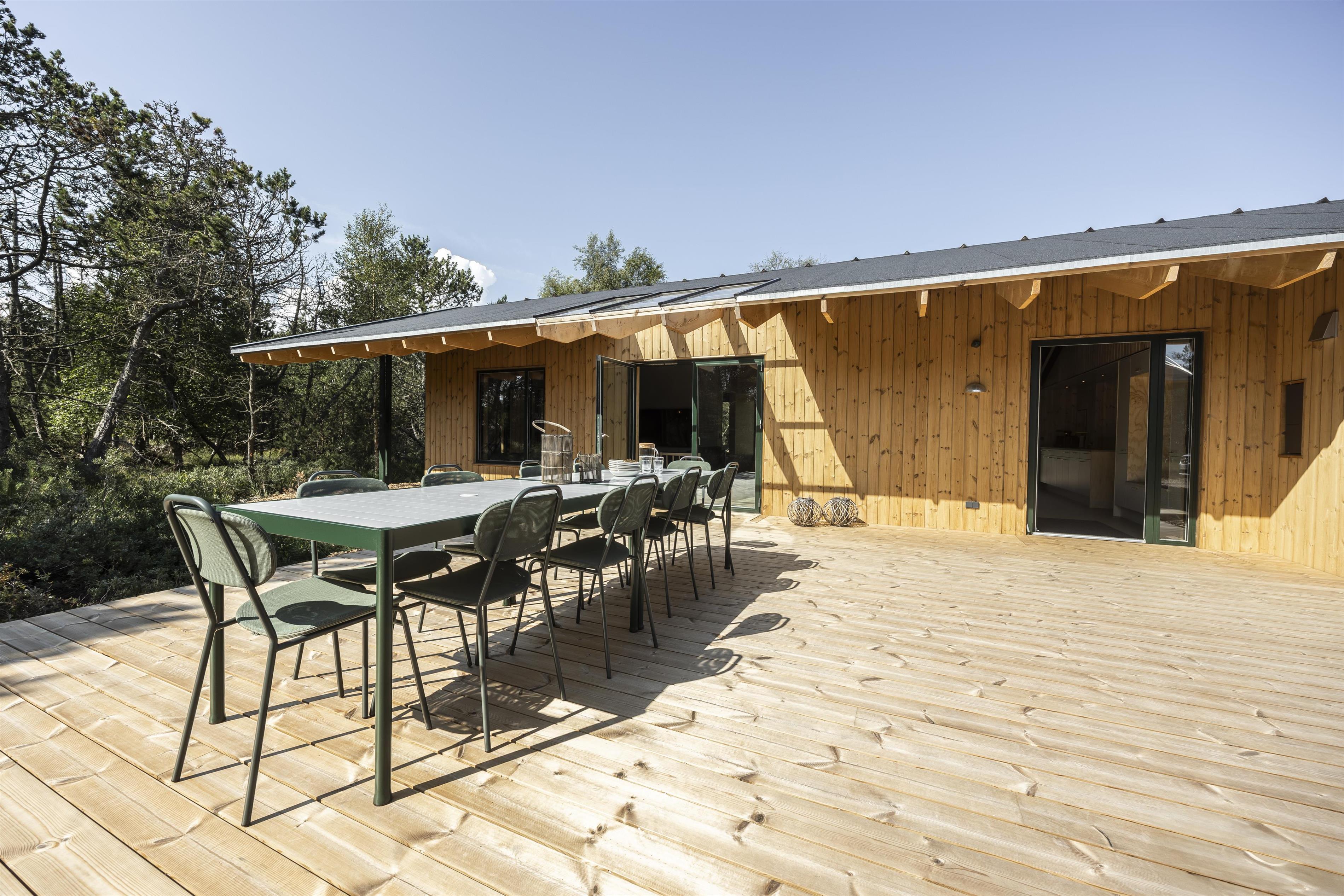 Imagine holiday days where outdoor living sets the pace. Surrounding the holiday home are several sun-drenched terraces, allowing you to follow the sun from your morning coffee to dinner in the warm, golden light. The surrounding trees create a calm, private oasis with shelter and a truly special holiday atmosphere.