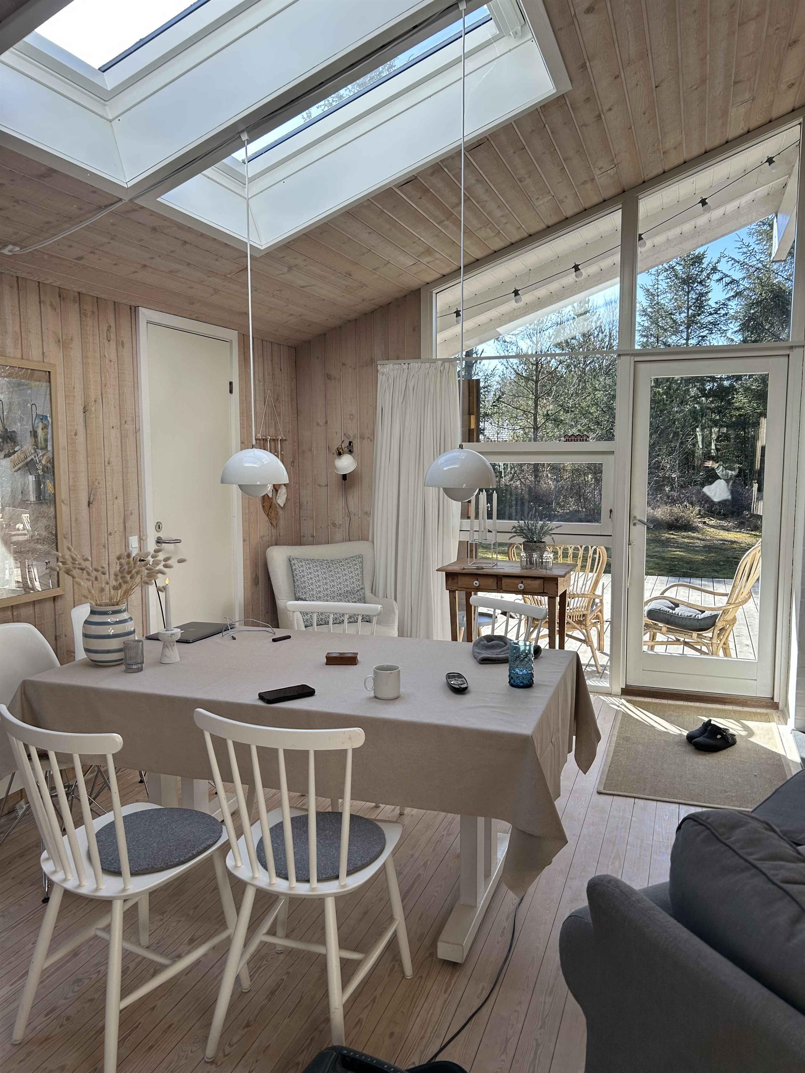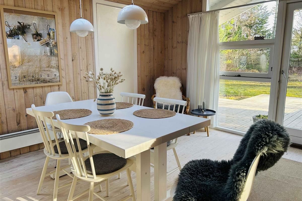 Ervaar de ultieme vakantie in dit idyllische houten zomerhuis, dat klassieke charme combineert met moderne gemakken, perfect gelegen tussen schilderachtige omgevingen en het bruisende stadsleven. Met zijn uitnodigende houten gevel en gezellige interieur is dit zomerhuis een ware parel voor degenen die op zoek zijn naar een authentieke en ontspannen vakantie-ervaring. Binnen in het huis vindt u drie royaal bemeten slaapkamers, die luxe comfort bieden en voldoende ruimte bieden voor een groot gezin of een groep vrienden. Elke kamer is smaakvol ingericht, wat een warme en uitnodigende sfeer creëert die uitnodigt tot ontspanning na een dag vol avontuur. Het hart van het huis, een ruime en lichte keuken-eetkamer, is perfect voor gezamenlijke maaltijden en samenzijn. De open plattegrond zorgt ervoor dat niemand het gesprek mist of het plezier, terwijl grote panoramische ramen de kamer baden in natuurlijk licht en uitzicht bieden op de omliggende terrassen en landschappen. Vanuit de keuken-eetkamer leiden openslaande deuren naar twee grote, privé gelegen terrassen. Deze charmante buitenruimtes zijn ideaal om buiten te eten, te zonnebaden in ongestoorde omgevingen of 's avonds gezelligheid onder de sterren. De terrassen zijn omgeven door volwassen bomen en weelderige beplanting, wat zorgt voor privacy en een gevoel van één zijn met de natuur. De locatie kon niet beter zijn - slechts 150 meter van een schilderachtig gebied dat rechtstreeks leidt naar een kindvriendelijk zandstrand. Dit biedt perfecte mogelijkheden om te zwemmen, zandkastelen te bouwen of gewoon te genieten van de zonsondergang over het water. Bovendien ligt het zomerhuis dicht bij Ålbæk, een charmant stadje met gezellige cafés en winkels, en slechts 20 km van Skagen, bekend om zijn unieke kunstenaarskolonie en schilderachtige landschappen. Maak dit betoverende houten zomerhuis tot uw volgende vakantiekeuze en ervaar een mix van ontspanning, culturele uitstapjes en schilderachtige avonturen, allemaal binnen handbereik. Hier kunt u helemaal loskoppelen en opladen in mooie, rustige omgevingen, terwijl u herinneringen maakt die een leven lang meegaan.