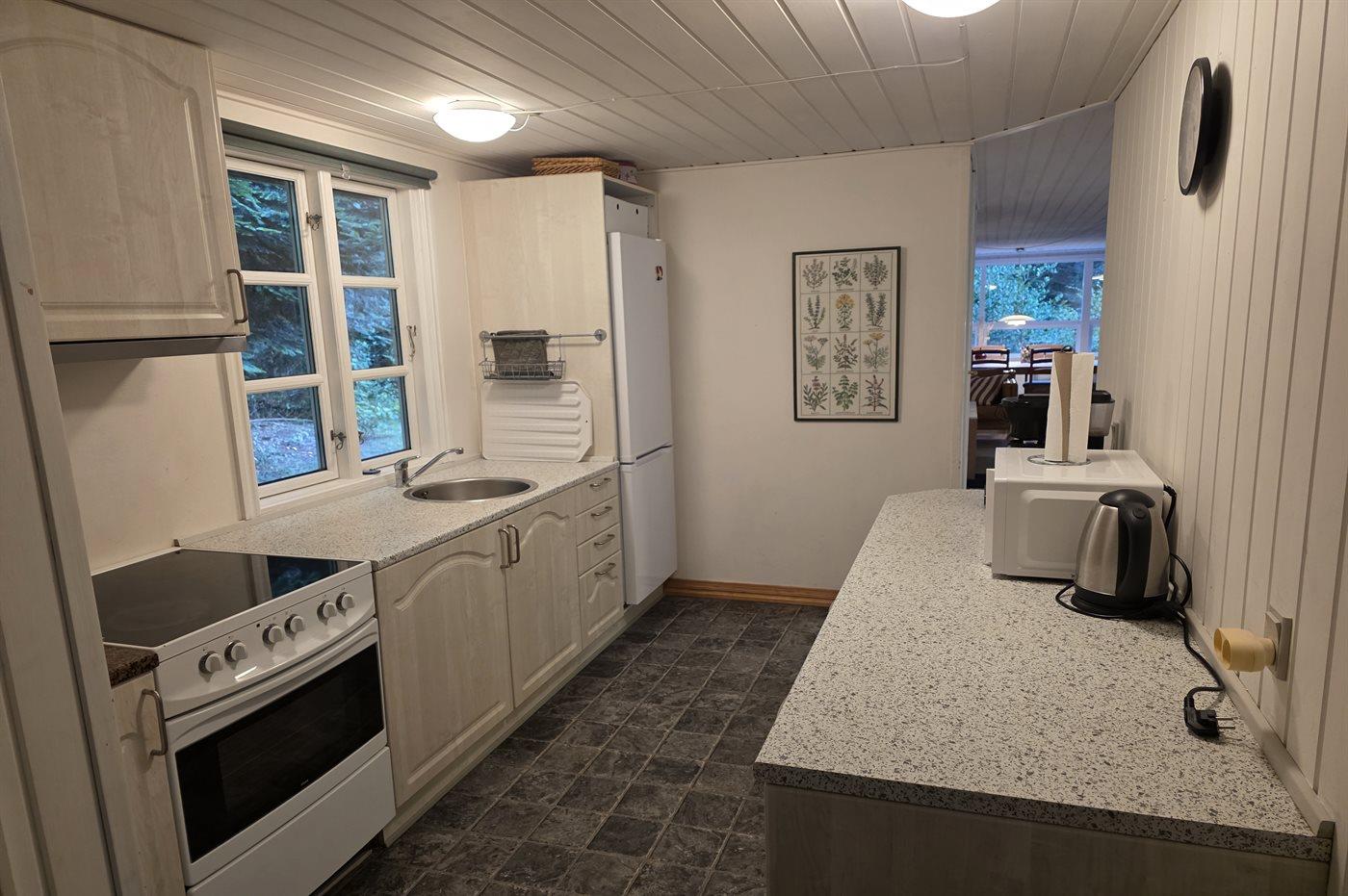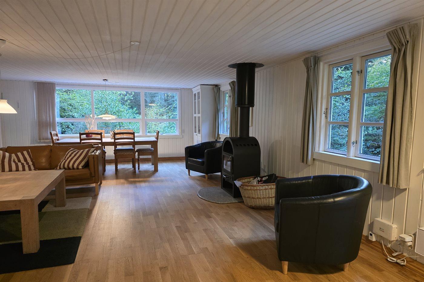 De vakantiewoning is gelegen op een 4780 m² groot natuural grond. Afstand tot de zee 20000 m. Afstand tot de fjord 7900 m. Dichtstbijzijnde winkel 2000 m. Er is een golfbaan op een afstand van 1060 m. Bij de vakantiewoning hoort terras. Barbecue. Parkeerplaats bij het huis.