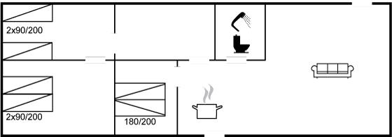 Er zijn in totaal 3 slaapkamers. De slaapplaatsen zijn als volgt verdeeld: 2 slaapplaatsen in tweepersoonsbed. 4 slaapplaatsen in eenpersoonsbedden.