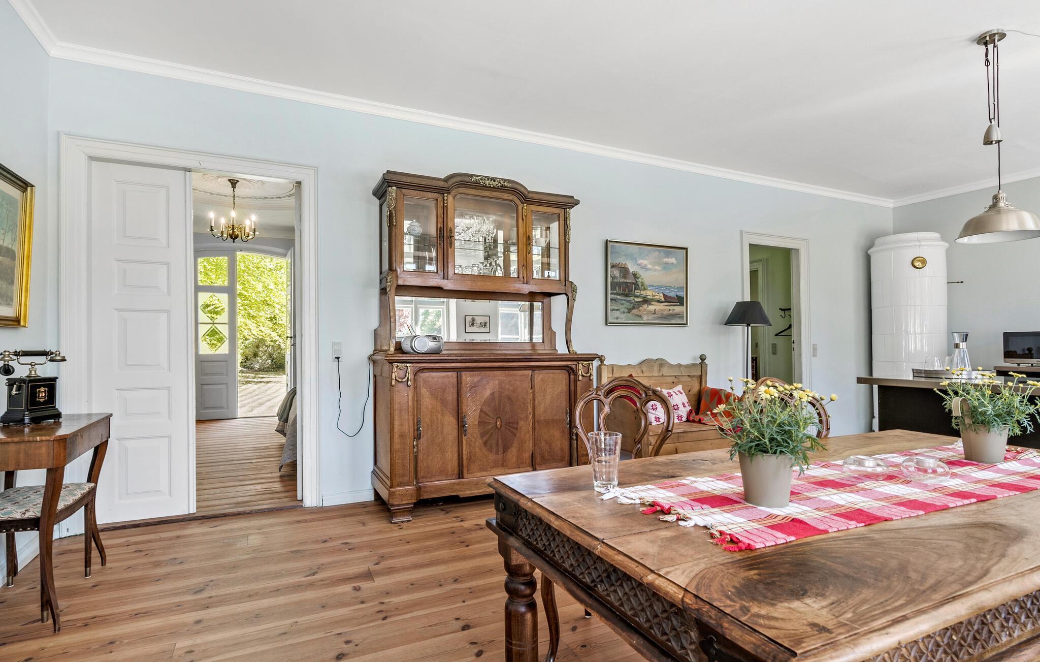 Pure vakantie-ontspanning wacht op je in dit huis, dat op slechts een korte wandeling van de zee ligt. Maak het jezelf gemakkelijk met je geliefden in de lichte kamers, die zijn ingericht in de charmante stijl van het landgoed, en gebruik het vakantiehuis als uitvalsbasis voor een onvergetelijke tijd van strandplezier en spannende excursies op het eiland. Kom hier 's avonds terug en knus samen bij de houtkachel.