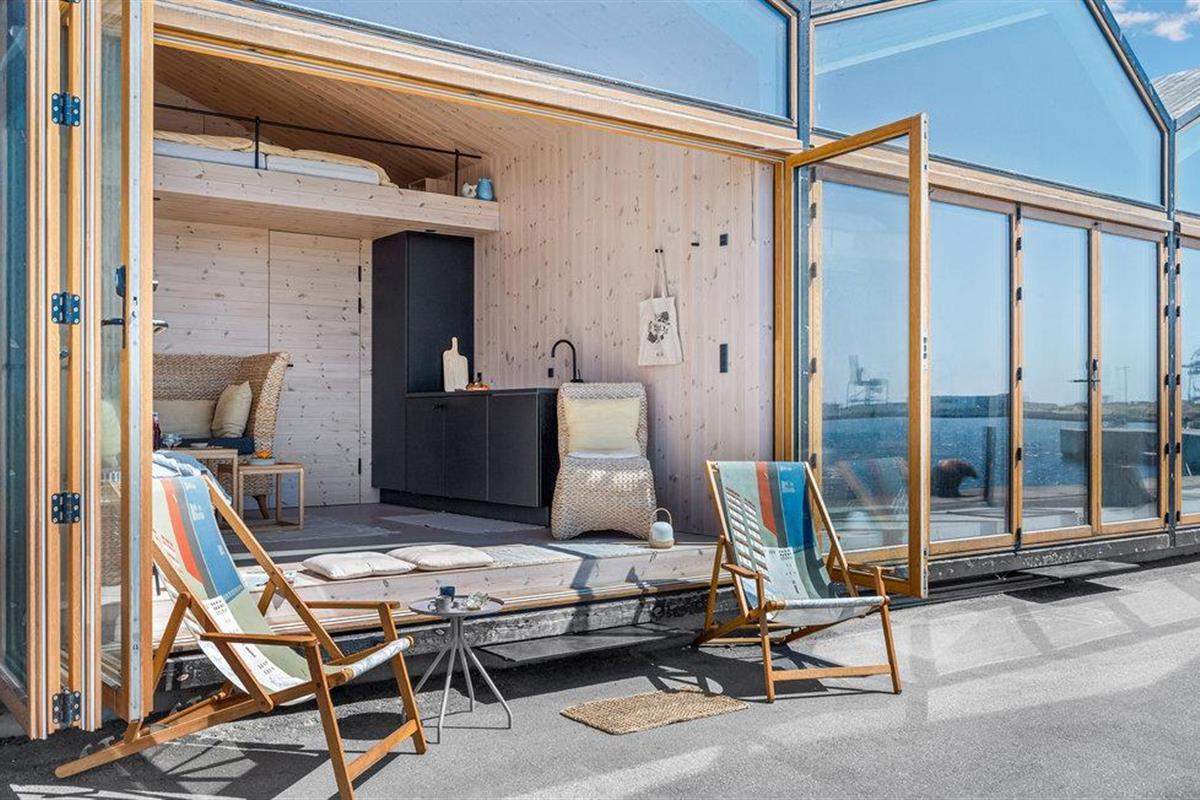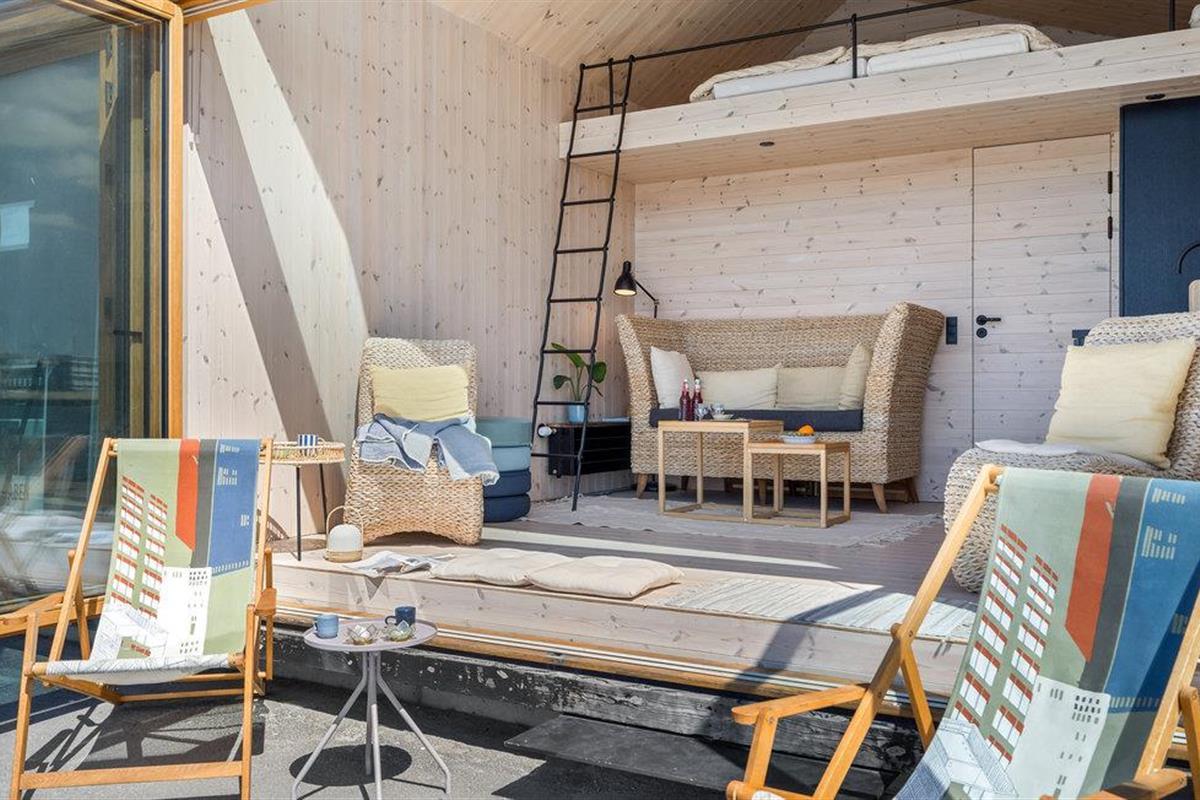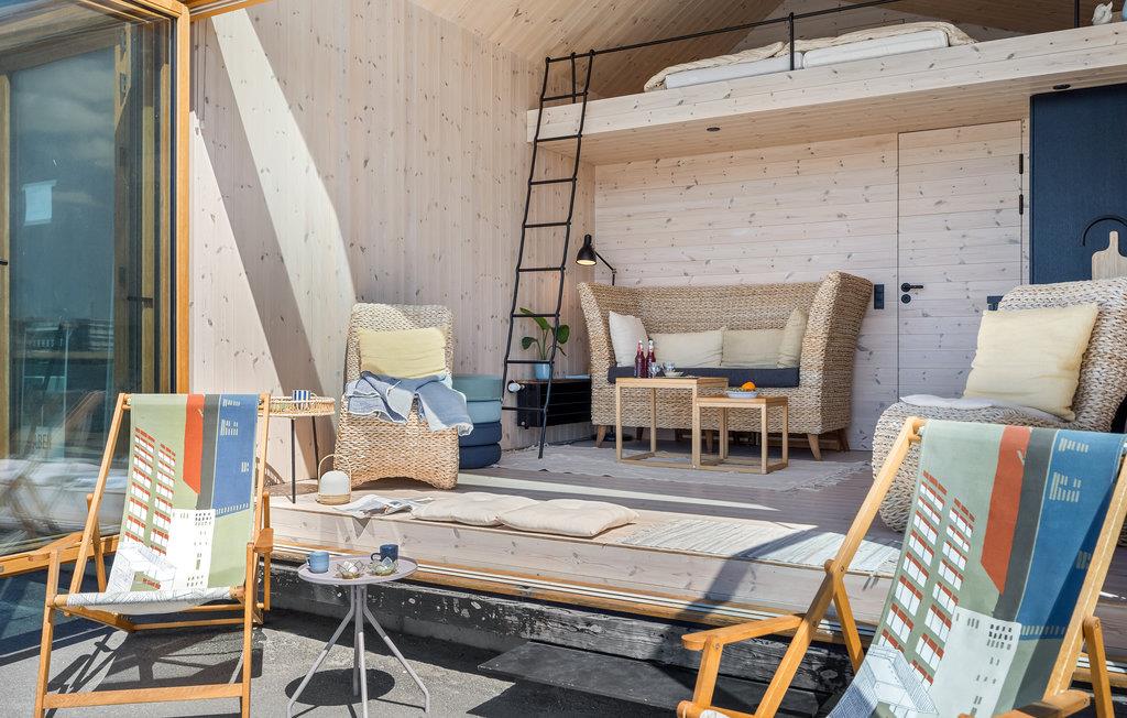 Breng je vakantie door op een toplocatie aan het water in deze compacte en comfortabele flat. De moderne flat is uitgerust met alles wat je nodig hebt om je thuis te voelen. Geniet van het uitzicht vanuit de woonkamer en de slaapzolder door het panoramische raam. Als de zon schijnt, kun je de raamwand openen en buiten op de ligstoel zitten met je ochtendkoffie.