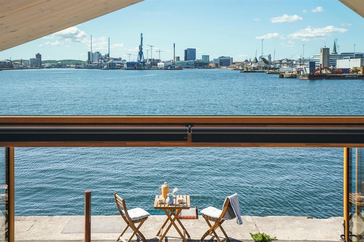 Met een prachtig panoramisch uitzicht op het water heet deze moderne studio in Aarhus Ø je welkom.