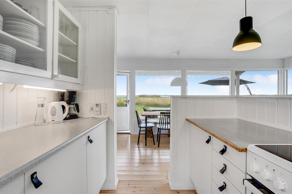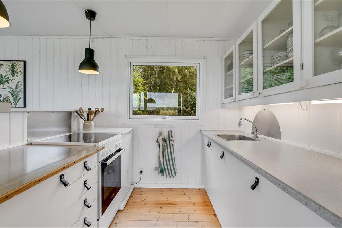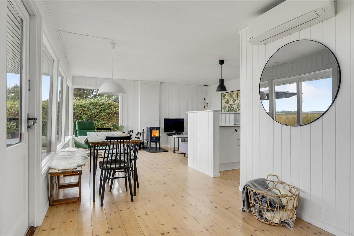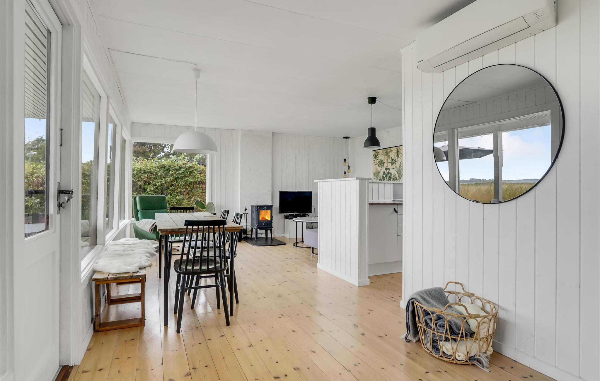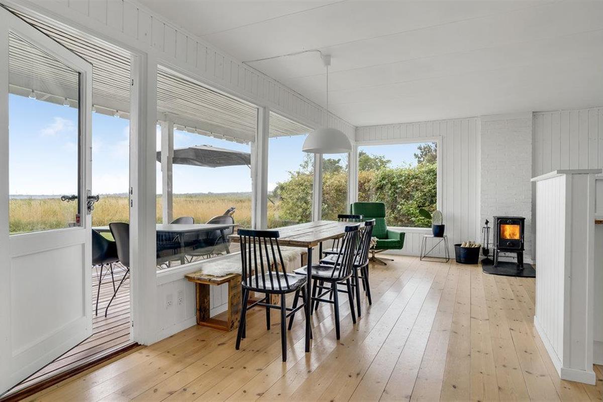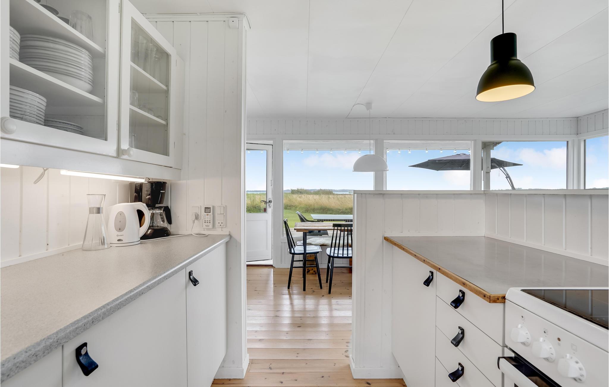 Het huisje ligt in de eerste rij van Abildøre, met een uniek uitzicht op het Atterup Fjord. De woonkamer/keuken heeft een eethoek en een gezellige houtkachel, en het terras onder het dak ligt direct voor en is toegankelijk vanuit de woonkamer. Naast de twee slaapkamers zijn er nog twee bedden in het bijgebouw. De woning is omheind. Rondom het Atterup Fjord is de natuur rustig en mooi, u kunt er wandelen en vissen. Verschillende golfbanen en zandstranden zijn in de buurt. U kunt ook de galerijen van heel Odsherred ontdekken, of de steden Holbæk, Nykøbing Sjællland en Rørvig. Goede winkels en mooie havens wachten op u. Heel Odsherred heeft een prachtig, deels heuvelachtig landschap. Al in de steentijd hebben zich hier mensen gevestigd, getuige verschillende grafheuvels. Overal zie je ook sporen van de ijstijd met machtige morenen en grillige blokken. Voor de kinderen zijn Sommerland Sjælland, een pretpark met zwembad, en het Odsherred Brandmuseum met brandweerwagens een aanrader.