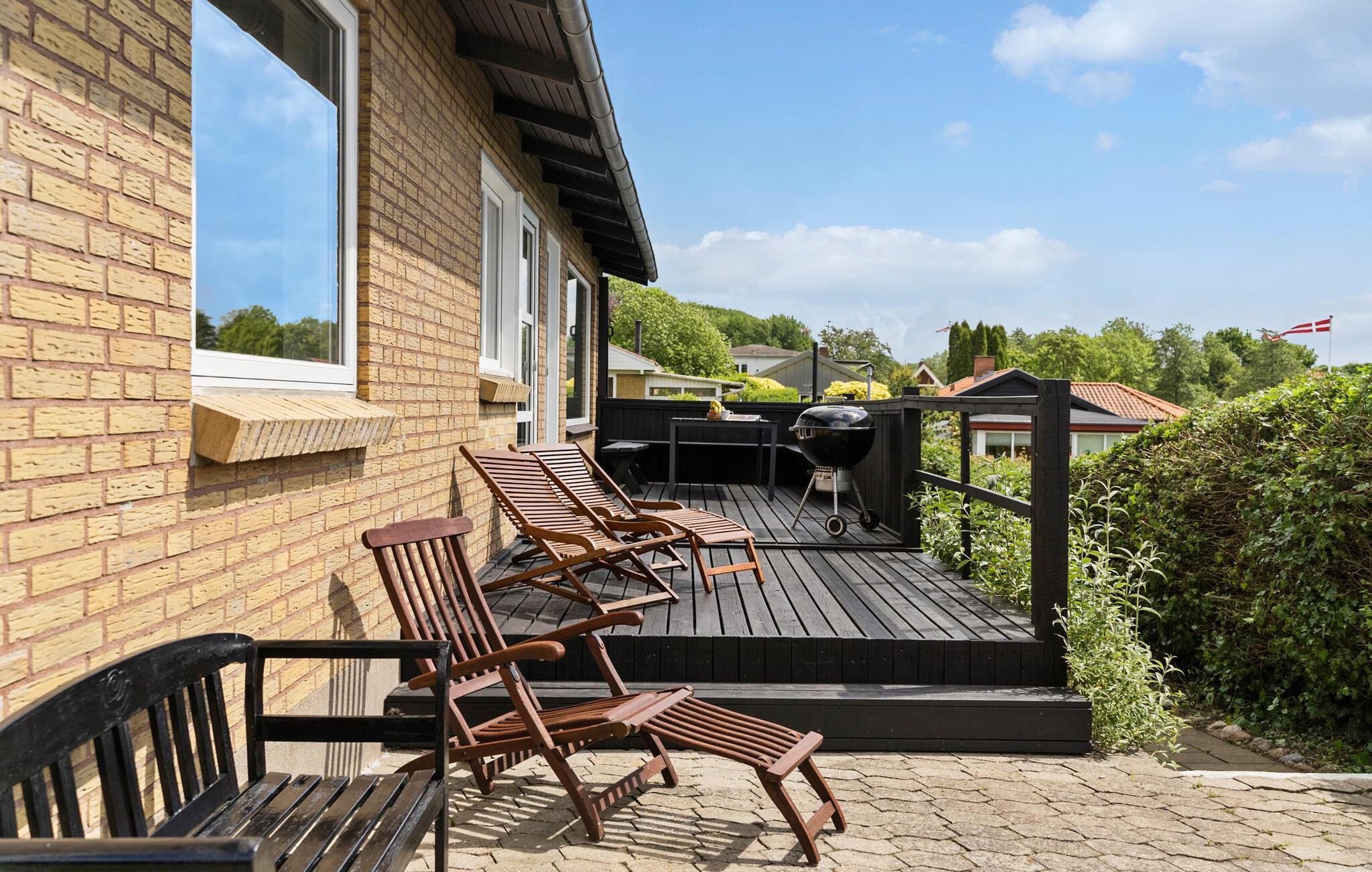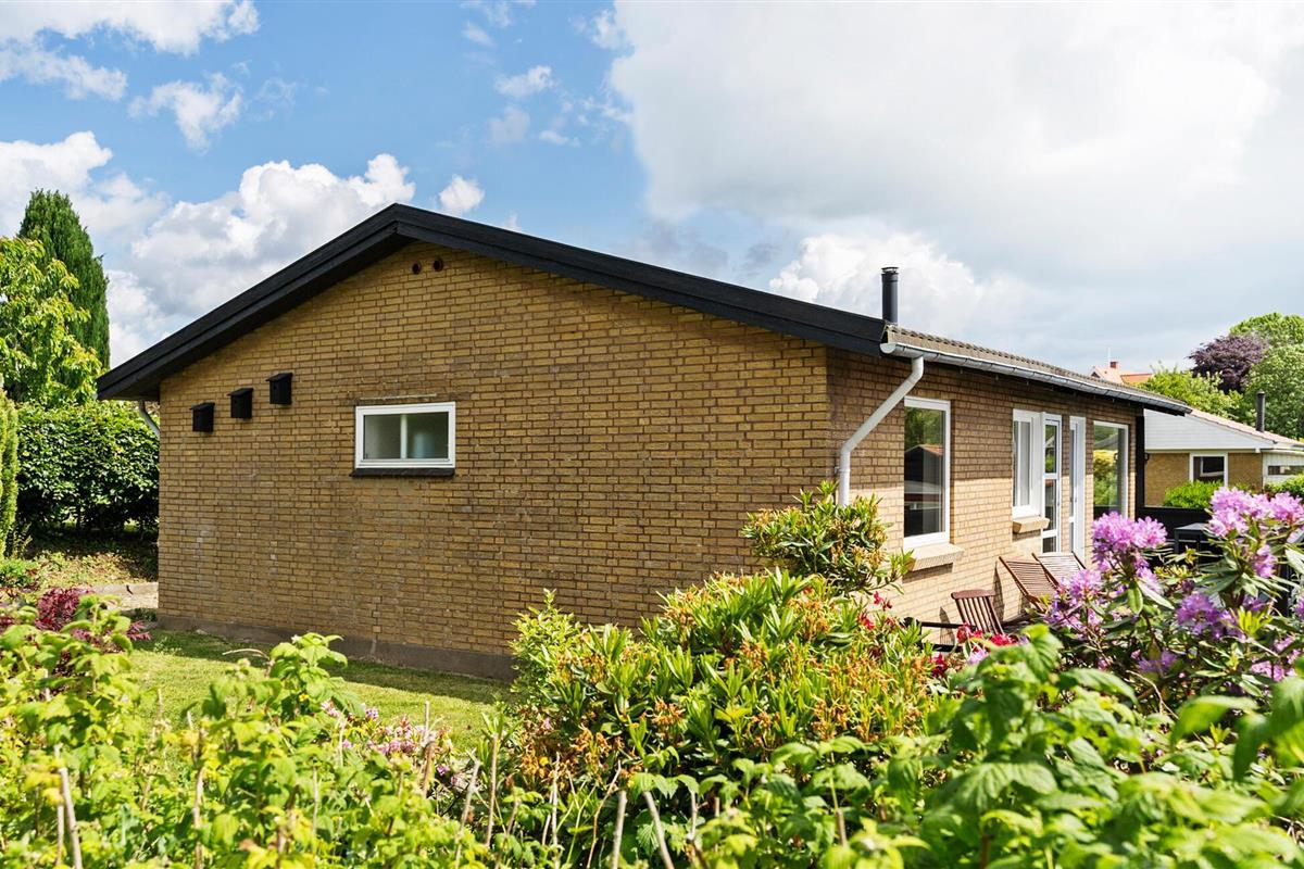 Charmant vakantiehuis aan Adsbøl Strand met zeezicht en tuin, ideaal voor ontspanning en watersport.