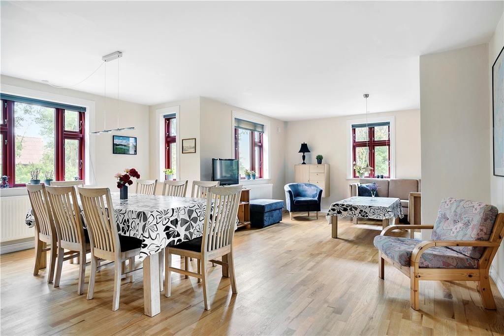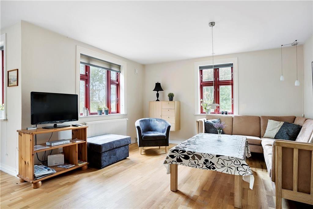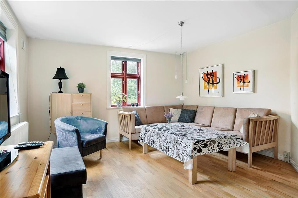 Das rote Steinhaus ruht bereits seit dem Jahr 1935 auf Agerø. Im Jahr 2009 wurde es renoviert und präsentiert sich seither als gutes Urlaubsdomizil für sechs Personen. Das Hausinnere umfasst eine Wohnfläche von 100 m². Ein Großteil der Fläche ist dem gemütlichen Wohnraum und der angrenzenden Küche gewidmet. Die gut ausgestattete Küche verfügt unter anderem über einen hoch eingebauten Backofen, einen Geschirrspüler und andere gute Küchengroßgeräte. Im Wohnraum sorgen ein Fernseher mit Parabolempfang, eine Stereoanlage und WiFi für Unterhaltung und Abwechslung. Vom Eingangsbereich aus gelangen Sie in das Duschbadezimmer mit Fußbodenheizung. Am nördlichen Ende des Hauses stehen Ihnen zwei nebeneinanderliegende Schlafräume zur Verfügung.